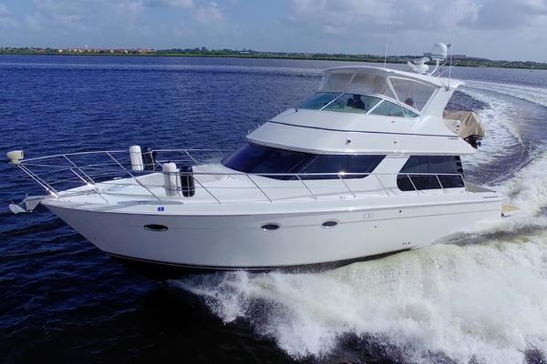 The Carver 46 Voyager combines superior function with luxury and space never before seen in a yacht this size. This Voyager focuses on the interior space for living, weekend cruising and entertaining while still providing the luxurious overnight accommodations one would expect from Carver - with one added bonus: this is now a three-stateroom yacht. As passengers walk onboard and step into the full-beam salon through the tinted glass sliding cockpit door, they immediately see and feel an open concept that one would expect to find in a custom home. Flexsteel UltraLeather L-shaped lounges are located to port and starboard and are surrounded by an elegant array of custom cherry wood cabinetry. Recessed lighting will make nighttime entertaining possible while enjoying the 360-degree water view. Granite flooring and countertops, smooth-top stove, coffee maker, convection microwave, and side-by-side refrigerator / freezer complete the impressive galley. The raised dinette seats four comfortably. With over 10 feet of headroom in this environment, guests have not only a spectacular water view, but a custom sapele pommele table with cherry tambour vertical under-cabinets will be a great conversation topic. Stepping down into the hallway that leads to the staterooms owners will find excellent space and cabinets for cruising needs. A VIP stateroom is to starboard and mid stateroom is to port. Both include designer fabrics and cherry wood cabinetry. A guest head with separate shower provides superior luxuries. The forward master stateroom boasts a wide walk-around island bed with innerspring mattress. Plenty of hanging lockers and cabinets housed in cherry wood allow for clothing storage and owners can sleep in late or retire early to view a favorite movie on the flat-screen TV with DVD player. The master head and separate shower provide all the comforts of home.