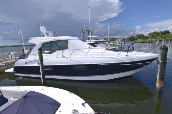Helm has a double helm seat, with flip up bolster, and well positioned instrumentation. Electronic shift and throttle controls with the manavoverabily of IPS pod drives with joystick control.