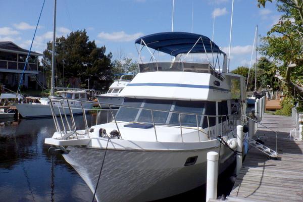 A Very Popular Sundeck Motor yacht with Reliable Twin 135hp Ford Lehman Diesels and 8kW Westerbeke Generator. Raymarine GPS/Chart/Autopilot, Morse Controls, Electric Windlass, Spacious Flybridge and Sundeck, 2000w Heart Invertor/Charger, Folding Radar Arch, Two Stateroom, Two Head Layout.
