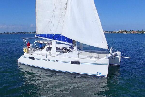 This gorgeous 2001 sought after Owner‘s version Catana, Not only sails fast but She satisfies needs for livable space. Galley includes a100 cc and a 200 cc fridge or freezers, ICE MAKER (party pleaser), full dbl sink which includes a seawater spigot operated by a foot pump and a water maker spigot, 3 burner stove and oven. Several small appliances are included. If wanted, Star Link satellite system can also be included. Owner’s starboard Hull boasts a spacious king size aft birth with lots of storage up the passageway and hookup for washer/dryer. She has a forward Head, with a large separate shower, that creates spaciousness for her owners.The port hull aft cabin is versatile - 2 twins which can convert to a queen and a fold down bunk bed, with adequate personal item space - under bunks storage includes a Dehumidifier. Moving forward is the port Head with shower. Lots of storage moving forward thru passageway suppling owners with large pantry, extra kitchen and/or tool space. The forward cabin, with plenty of storage, has a large escape hatch, that promotes wonderful breezes when open. Lots of spare parts under the bed including a starter, alternator, raw water and fresh water pumps for the engines.This boat has had multiple upgrades and lots of maintenance.