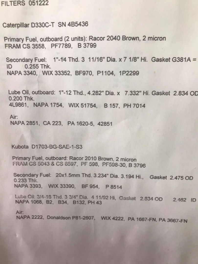 - 22KW Phazer/Kubota generator (recently rebuilt)