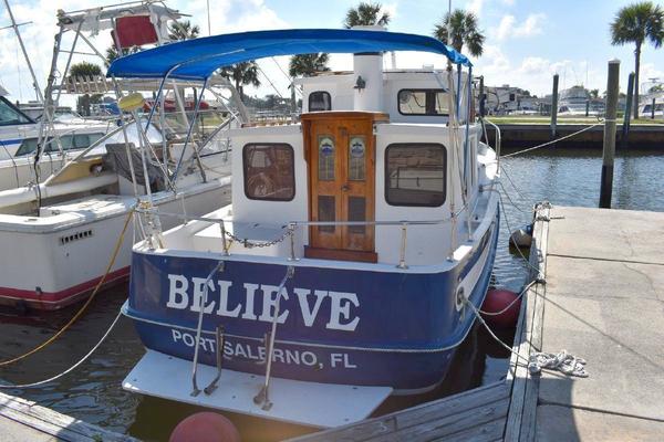Believe is a robustly built trawler style tug with attention to sea kindness as well as crew comfort. A feature of the Nordic 26 is the 360-degree view from the pilot house. The Yanmar 4JH3-HTE has been factory rebuilt with less than 100 hours on it. The Yanmar 4 cylinder is very efficient, providing for a longer travel radius, making Believe a great boat for Keys trips. Believe also has a new rebuilt 3.5KW diesel generator which can power all item on board including the reverse cycle air condition and heating. This boat offers solar power for battery charging, new bottom paint with zinc replacement, new refrigeration with freezer, Garmin 4212 Radar/GPS and satellite TV.