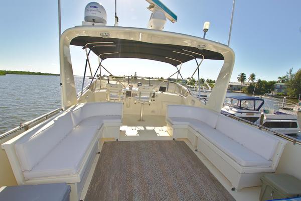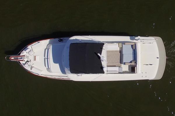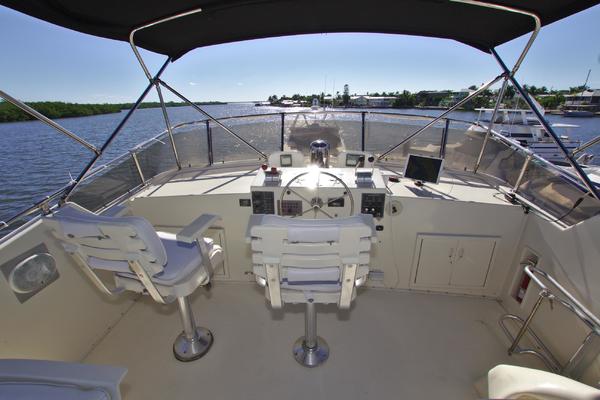 The interior of the boat has been upgraded and updated in many aspects of the boat. Very spacious Master Stateroom with walk in closet, and private large head with bathtub shower. The VIP Stateroom has been custom rebuilt to a Queen berth with large Hanging Locker. Head - companionway leads to Galley and on forward side of Galley is the private Guest Cabin with Head. Main salon is very spacious with custom furnishings and lighting and a walkthrough door to the hardtop aft deck which has been extended. The flybridge features new bimini top with spacious seating and a custom built sun lounge bed for 2 or more. She sleeps 6 with ensuite heads and showers.