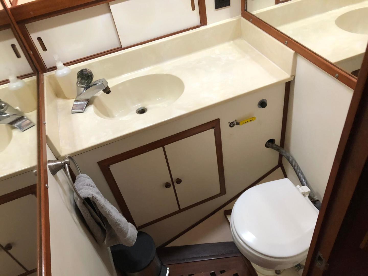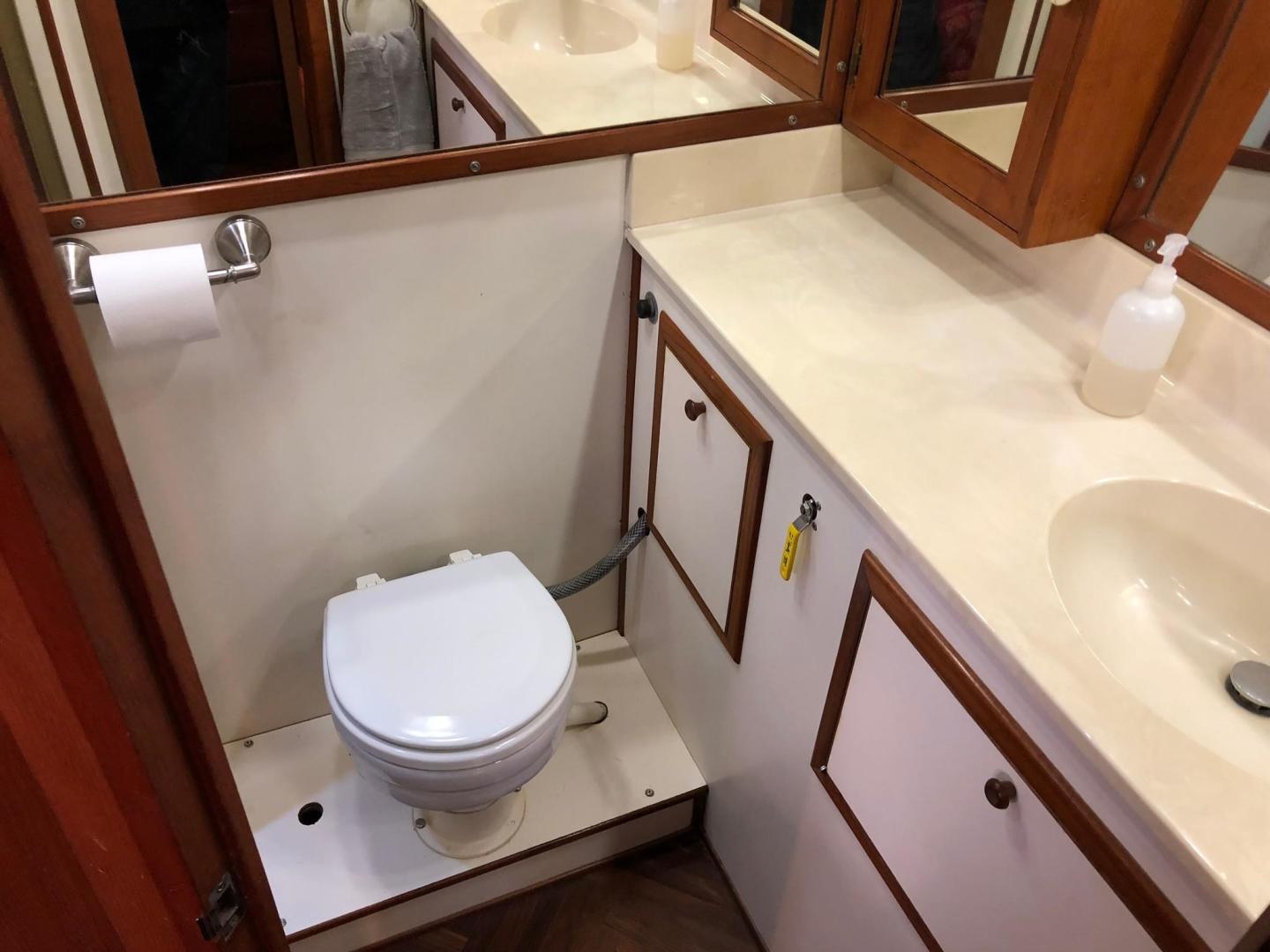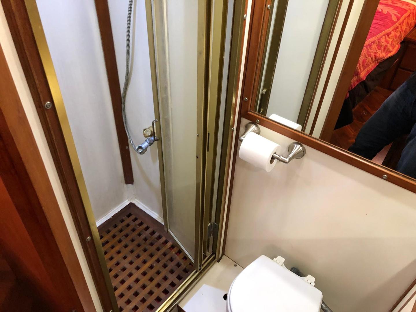 - Aft Stateroom Head with Freshwater Flush and Electric Macerator and Separate Shower Stall