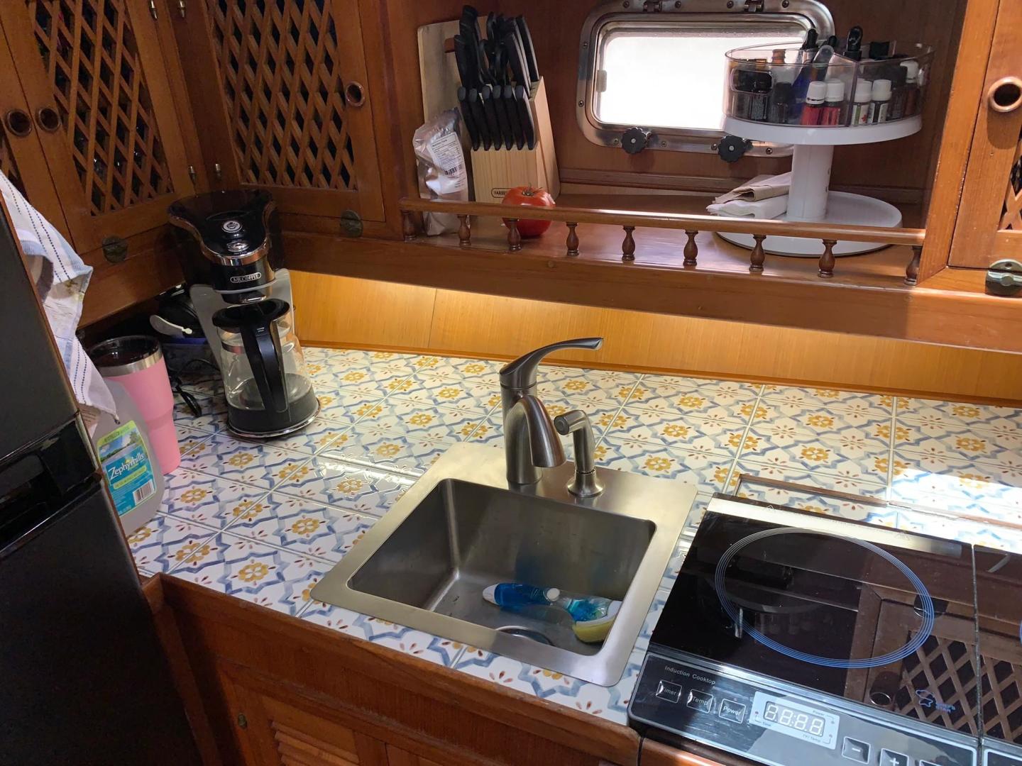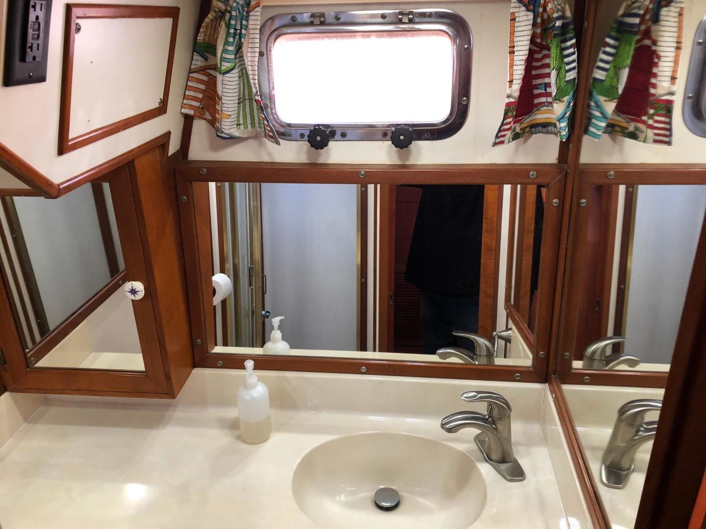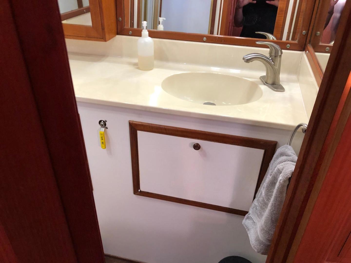 - Aft Stateroom Head with Freshwater Flush and Electric Macerator and Separate Shower Stall