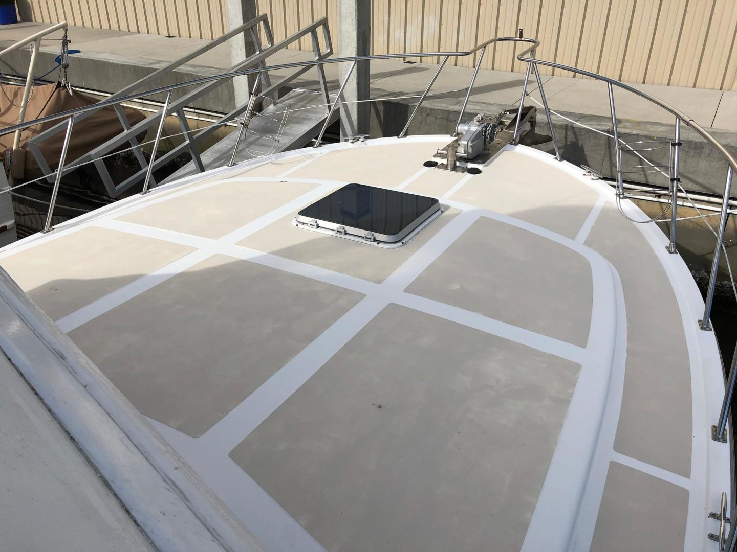 - Two level deck with raised foredeck with bridge and recessed cabin house superstructure