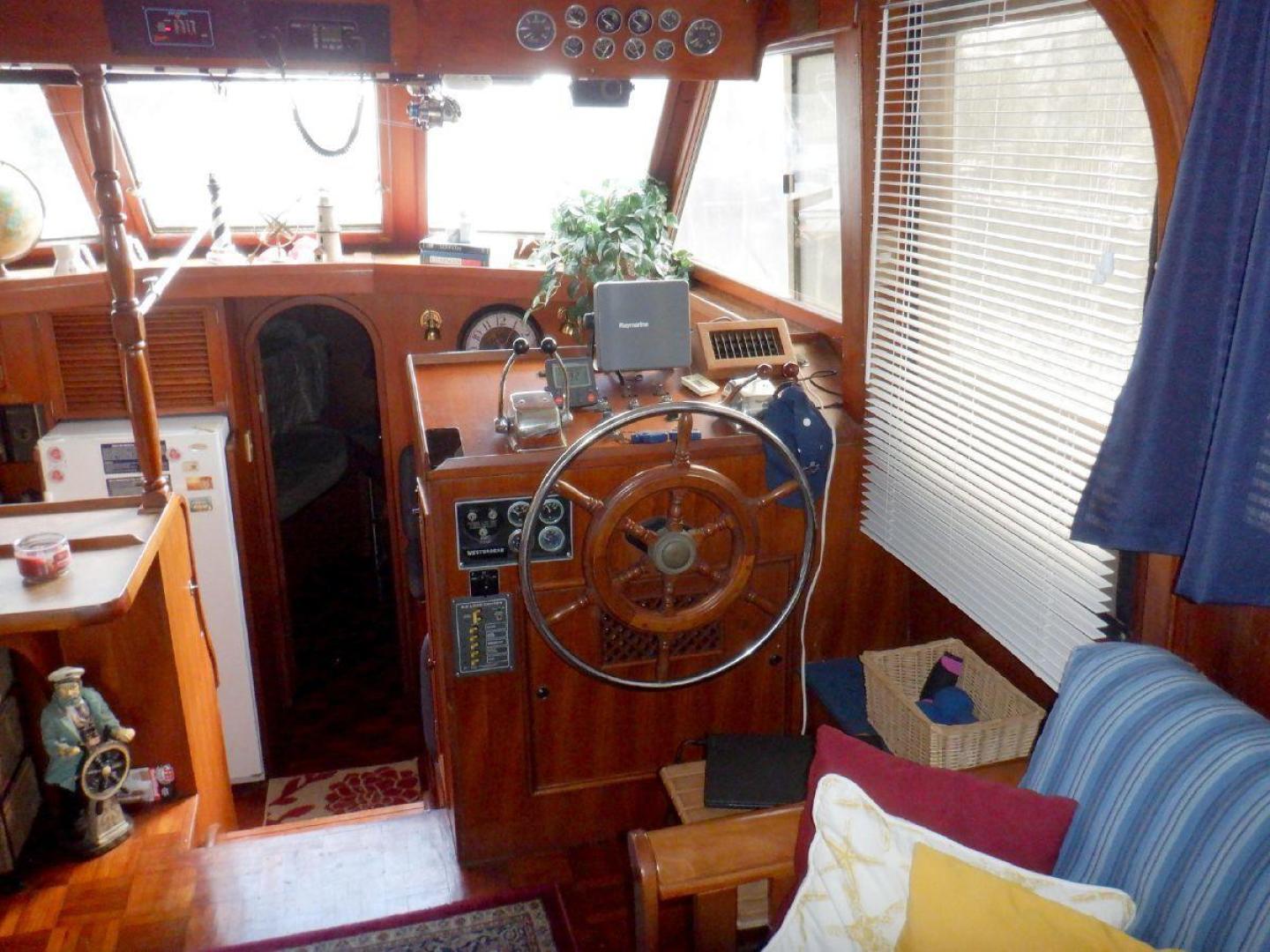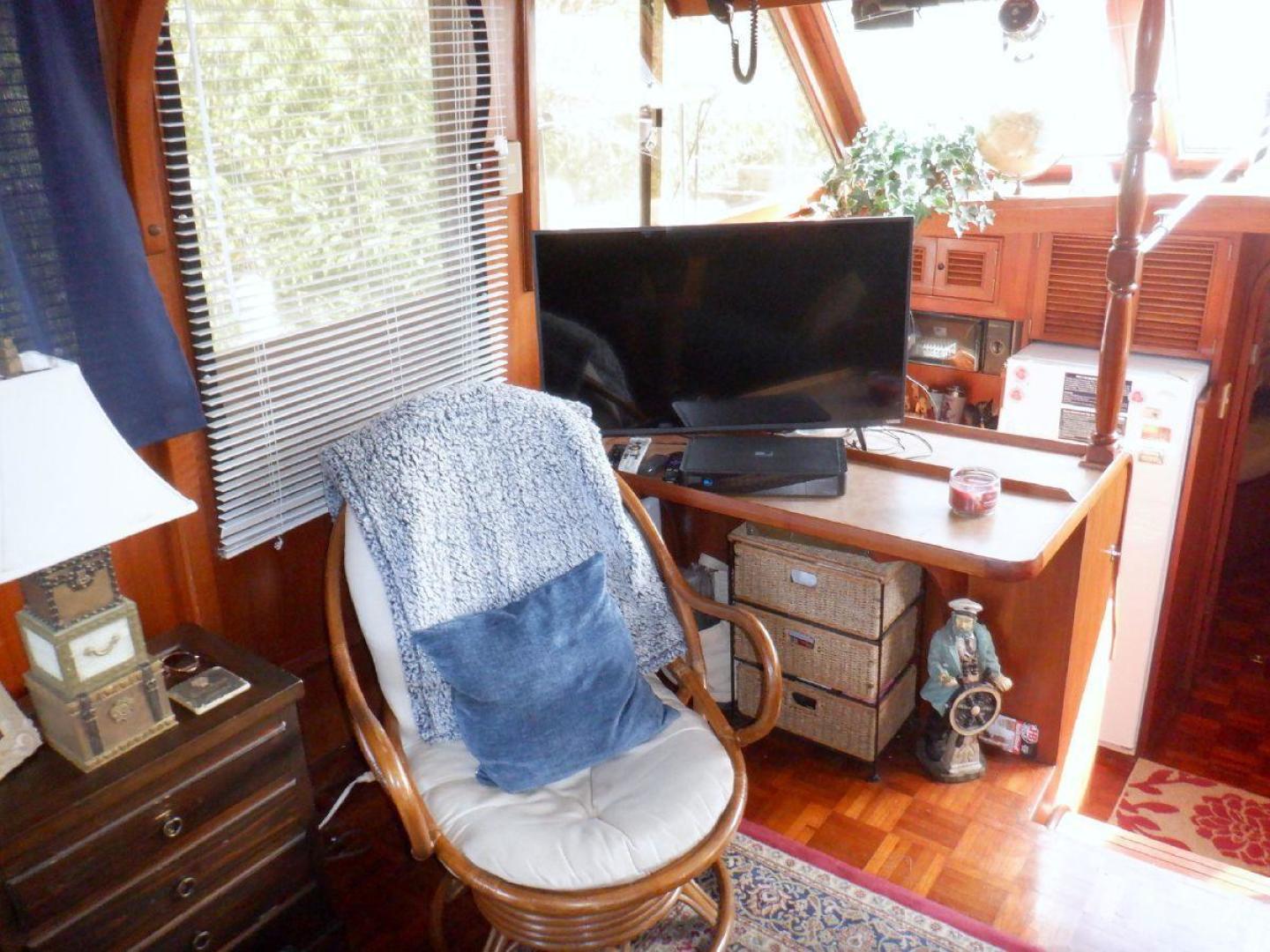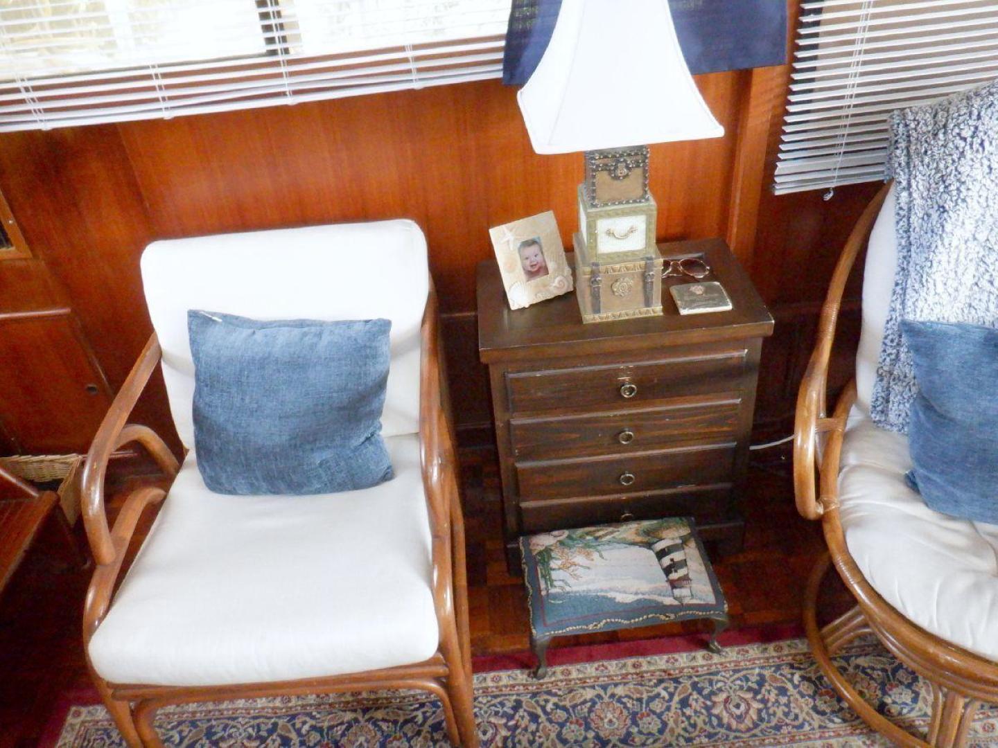 A Very Popular Sundeck Motor yacht with Reliable Twin 135hp Ford Lehman Diesels and 8kW Westerbeke Generator. Raymarine GPS/Chart/Autopilot, Morse Controls, Electric Windlass, Spacious Flybridge and Sundeck, 2000w Heart Invertor/Charger, Folding Radar Arch, Two Stateroom, Two Head Layout, Stored in Freshwater Most of the Year, Perfect Vessel to Start the Great Loop Adventure.