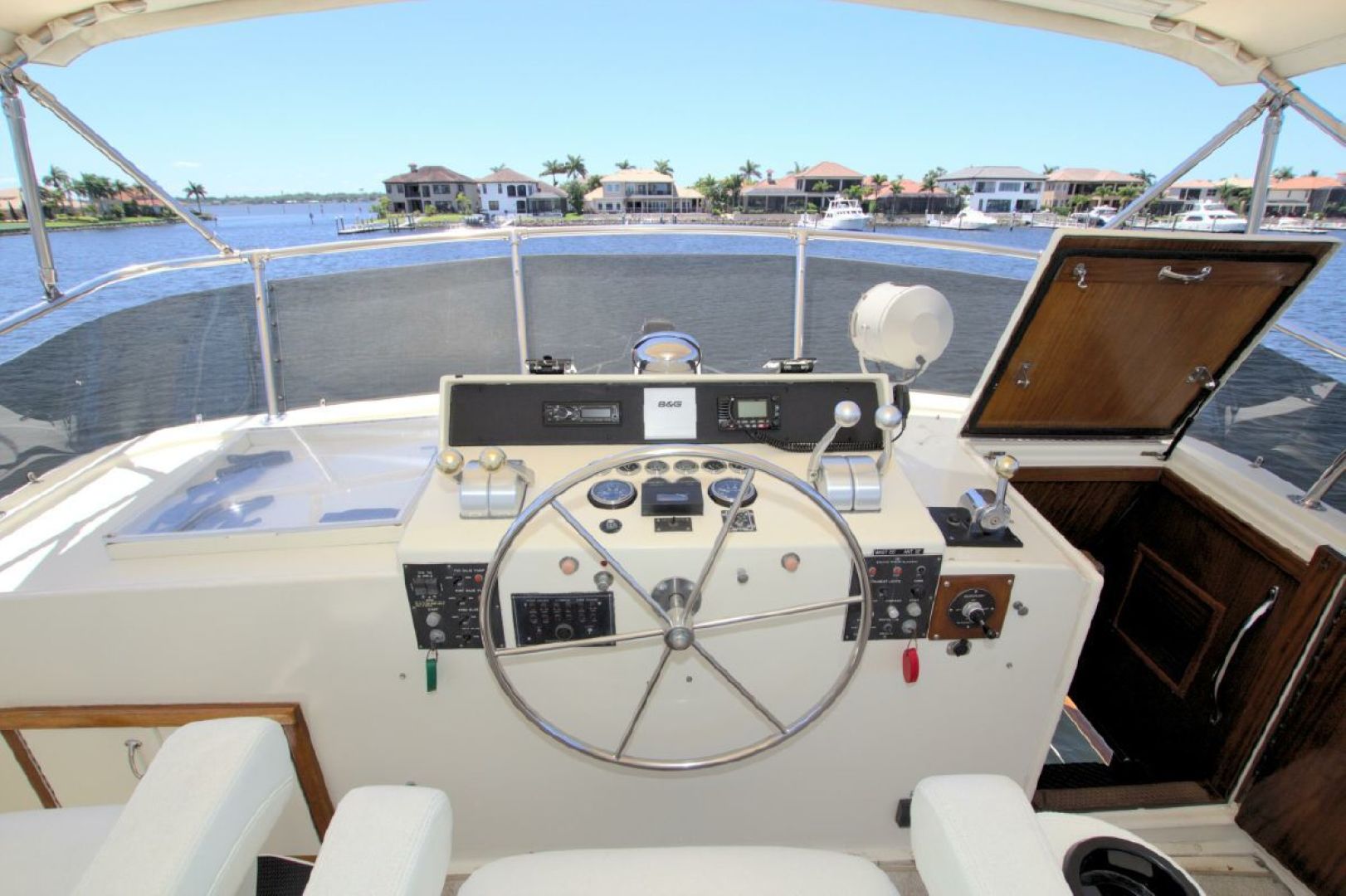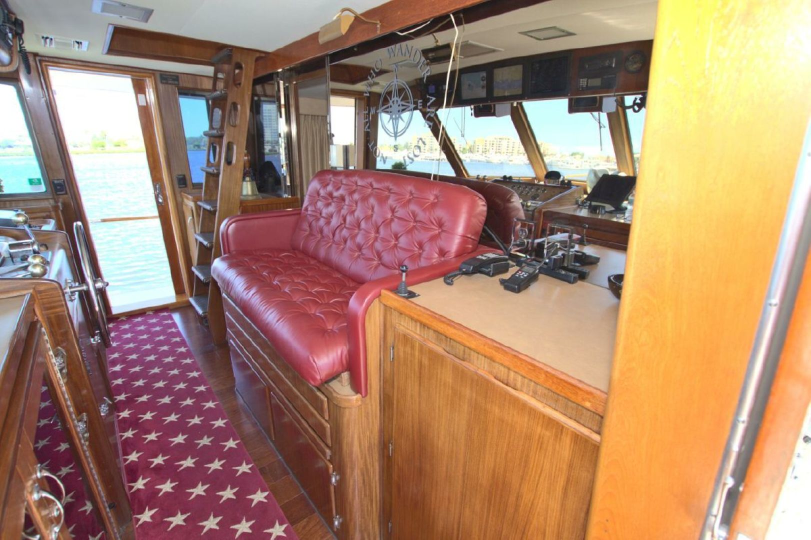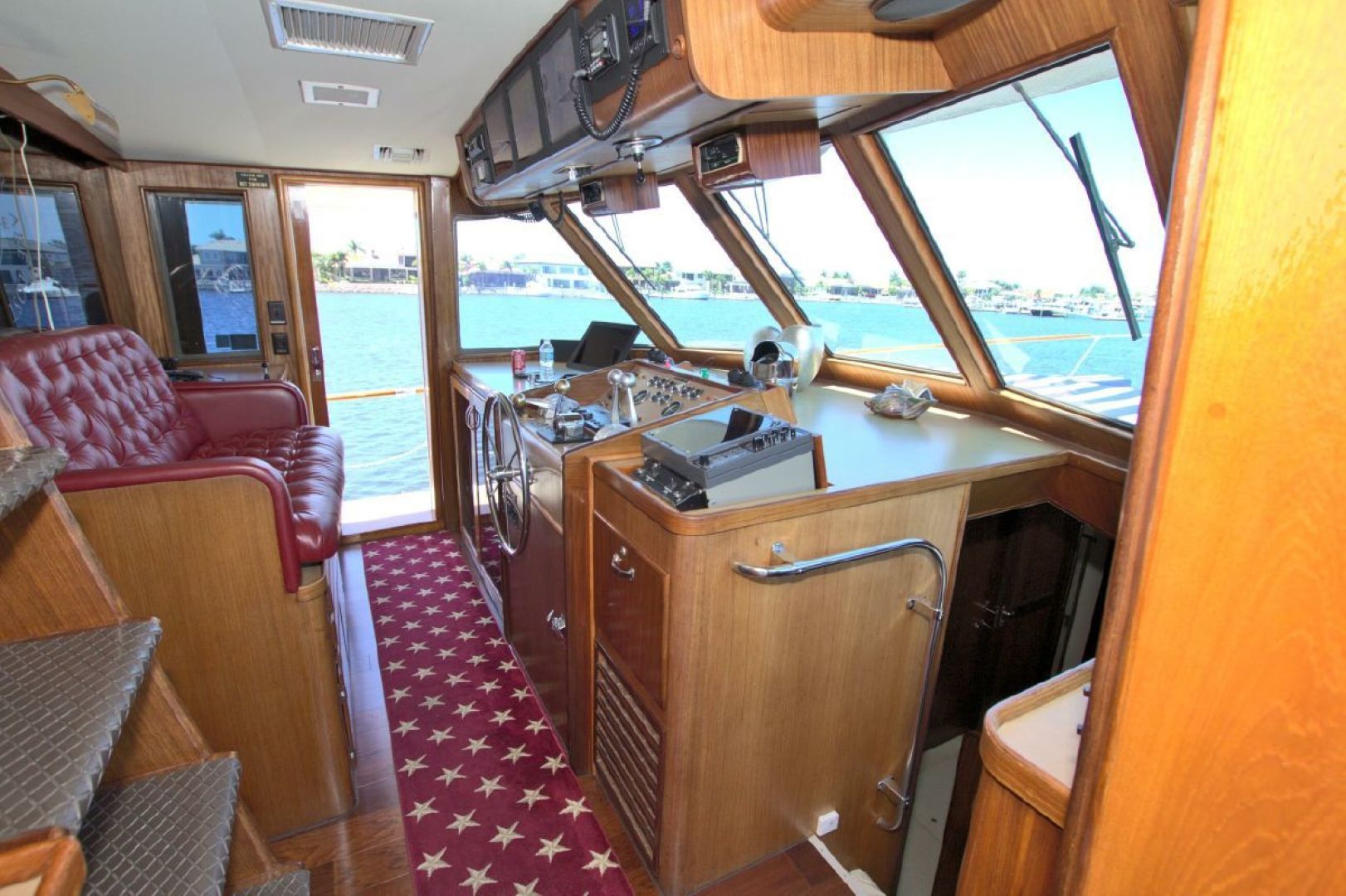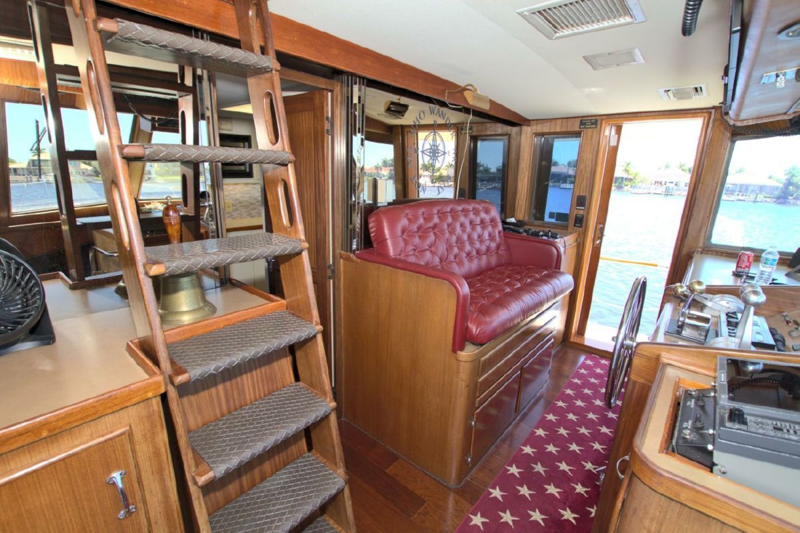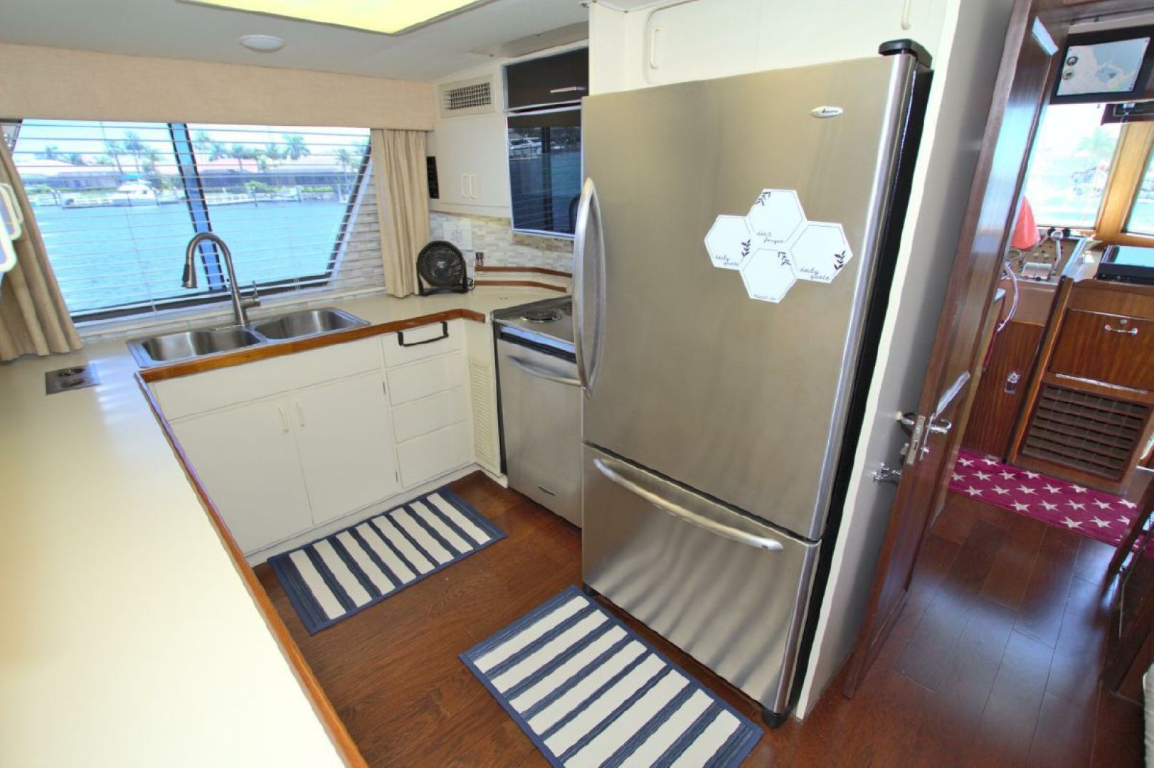 Aft of the VIP cabin are the twin engine rooms housing the spotless Detroit Diesel 12V-71 engines that produce 650HP each. Located outboard at the front of each engine room you will find a thick, plexiglass cover over each of the stabilizer actuators and related sensors. The starboard side engine room houses the hot water tank, ships tool box and common tools mounted on a magnetic bulk head. These rooms are illuminated by both AC and DC lighting systems. You will not find a more organized, cleaner engine room on any Hatteras of this vintage!!