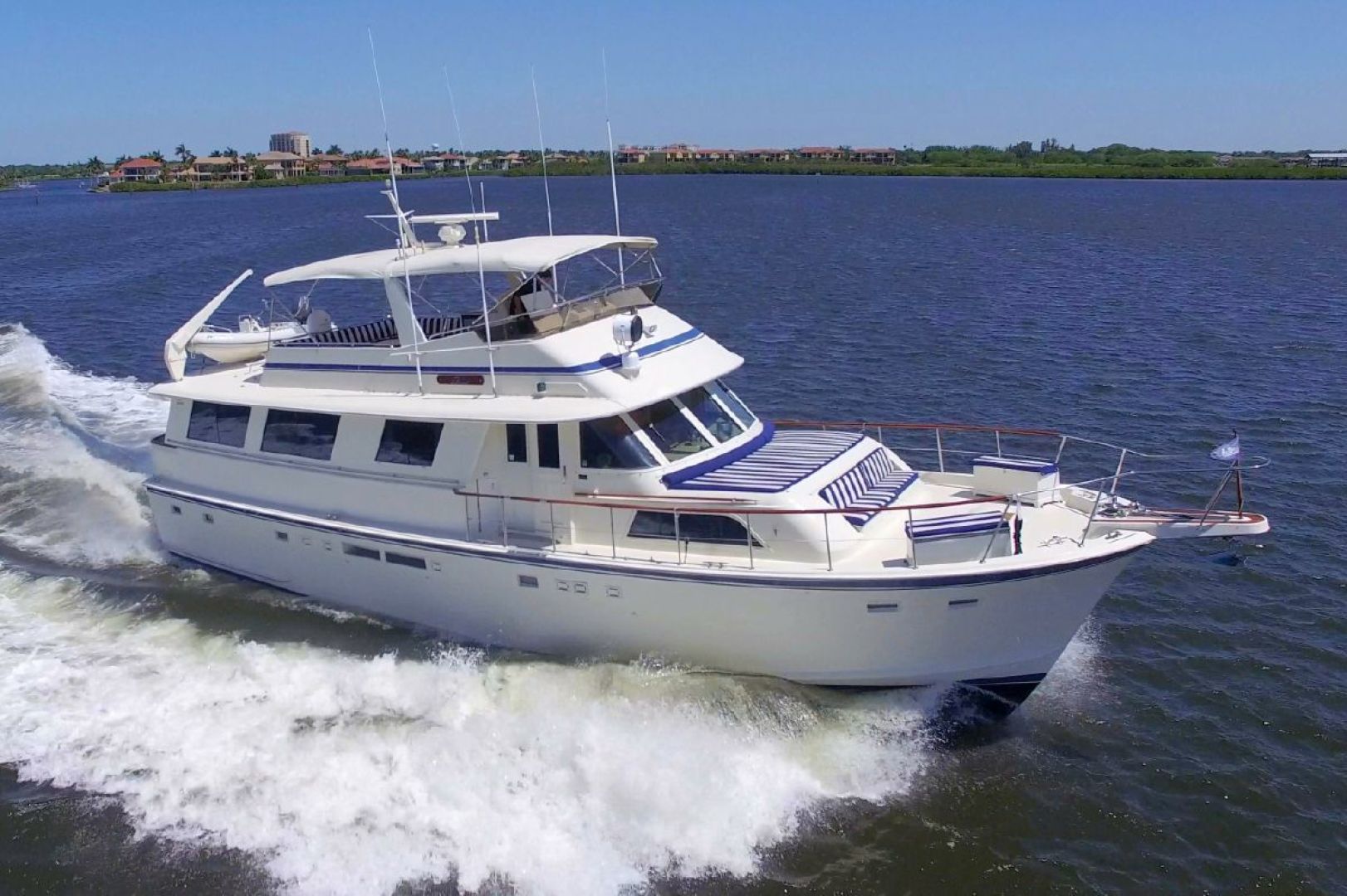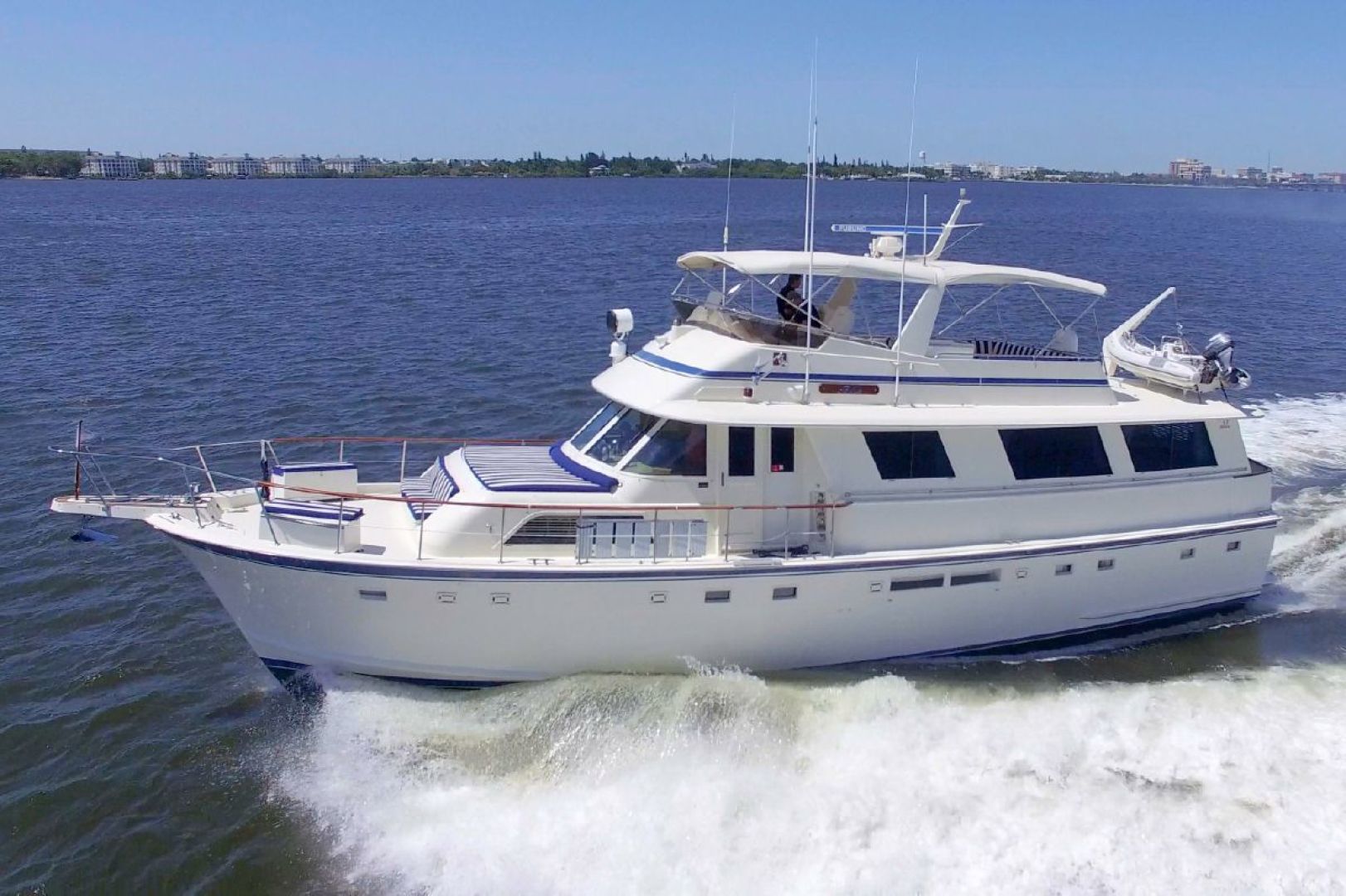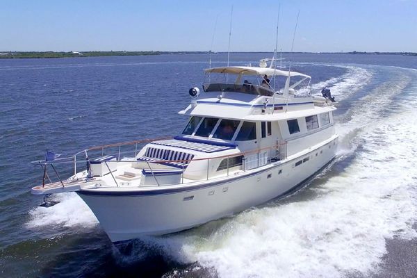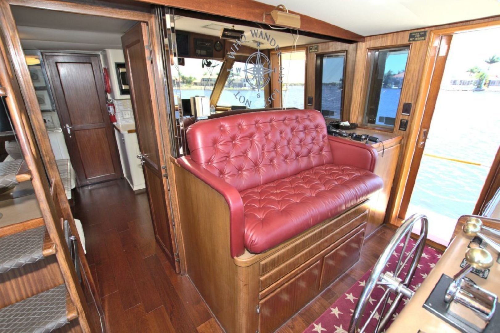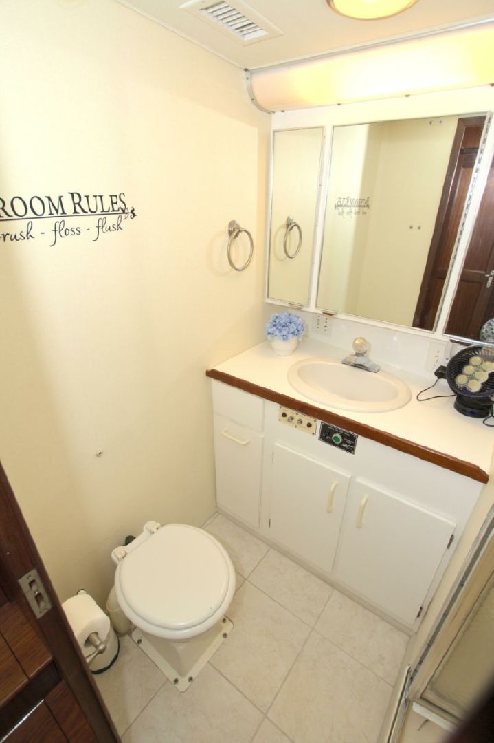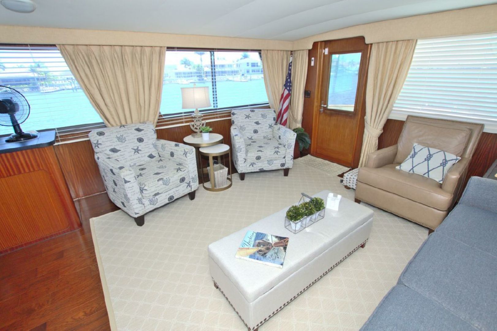 Aft of the VIP cabin are the twin engine rooms housing the spotless Detroit Diesel 12V-71 engines that produce 650HP each. Located outboard at the front of each engine room you will find a thick, plexiglass cover over each of the stabilizer actuators and related sensors. The starboard side engine room houses the hot water tank, ships tool box and common tools mounted on a magnetic bulk head. These rooms are illuminated by both AC and DC lighting systems. You will not find a more organized, cleaner engine room on any Hatteras of this vintage!!