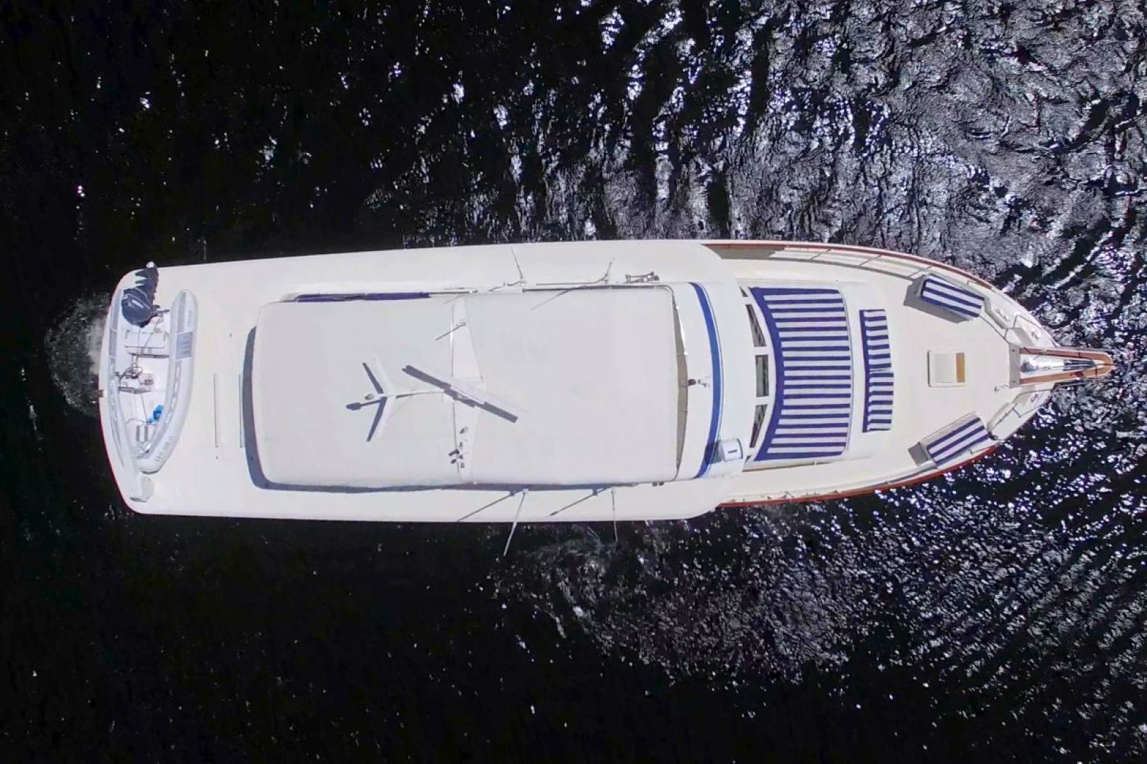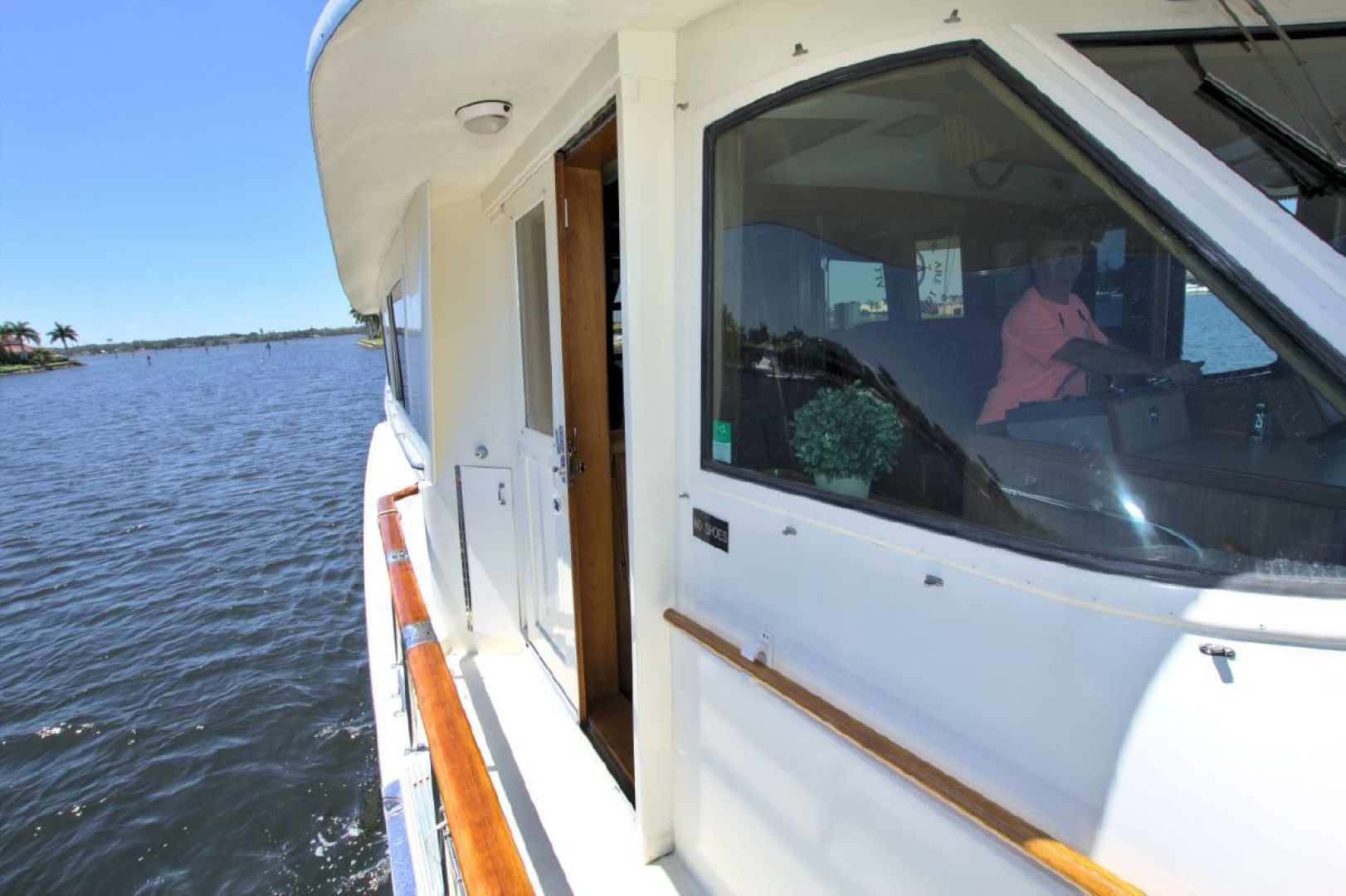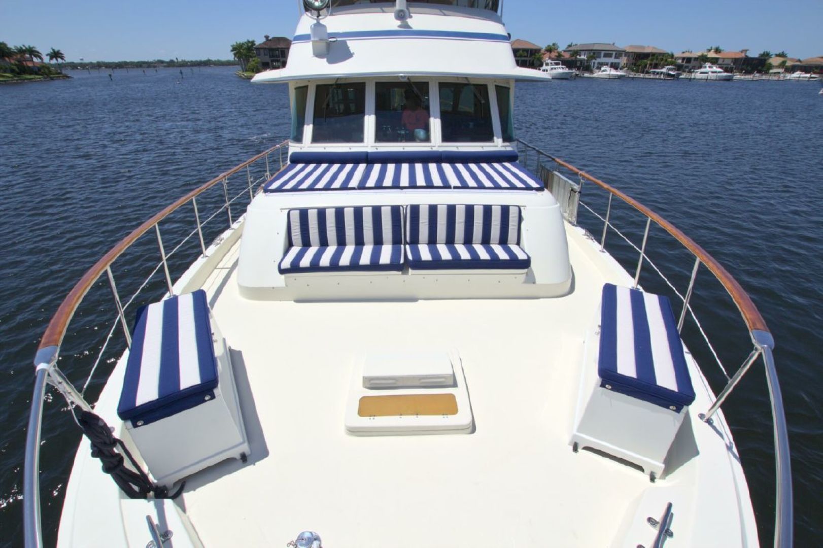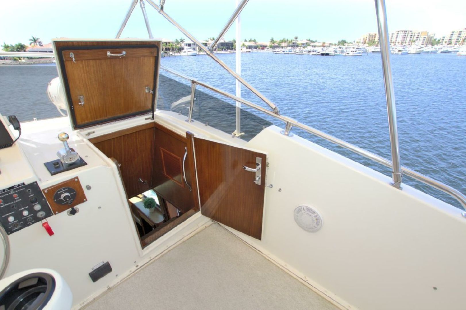 Finally aft of the salon, you will pass through another door taking you to the aft deck of the yacht which is protected from the elements by the fully extended fly bridge. There is ample room here for several nice chairs that you can then enjoy for morning coffee or sun downers as your day transitions into evening. This is also where you will handle your stern lines and gives direct access to the swim platform.