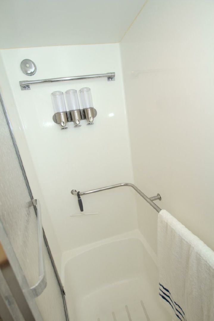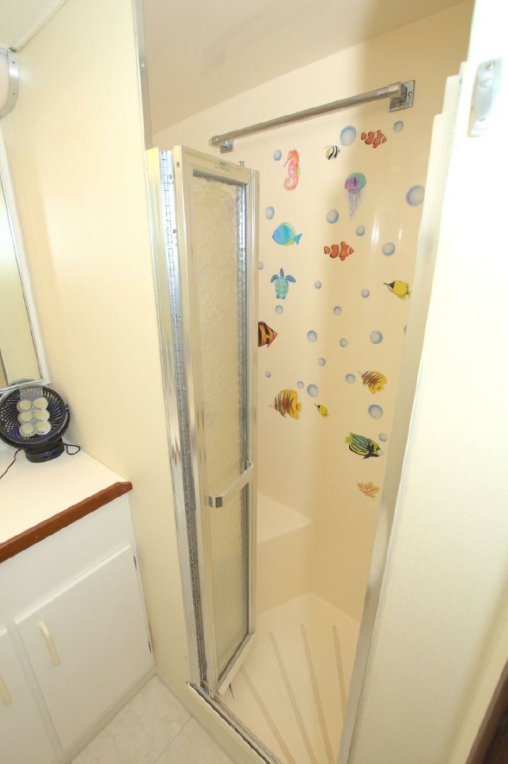 As you proceed forward you will find the last cabin also with double bunks and a private head. Moving aft from the landing level will take you first to the laundry center on the starboard side of the boat and then on to the VIP cabin on the port side of the boat. This cabin has a queen size bed and the head is located across the hall, this also serves as the day head for the boat.