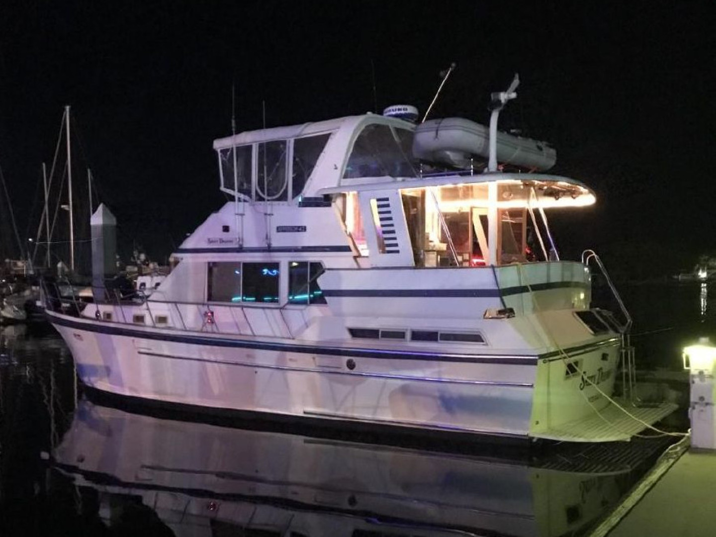 Includes dinghy and outboard motor.