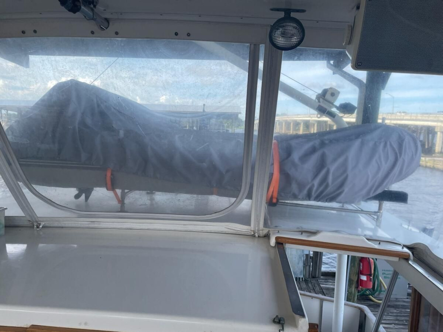 Dual station. Sliding side door to starboard of the lower helm allows easy access to the walkway.