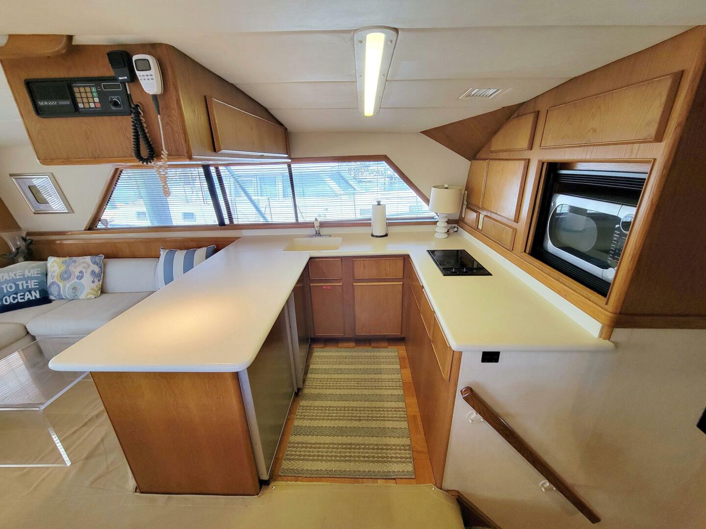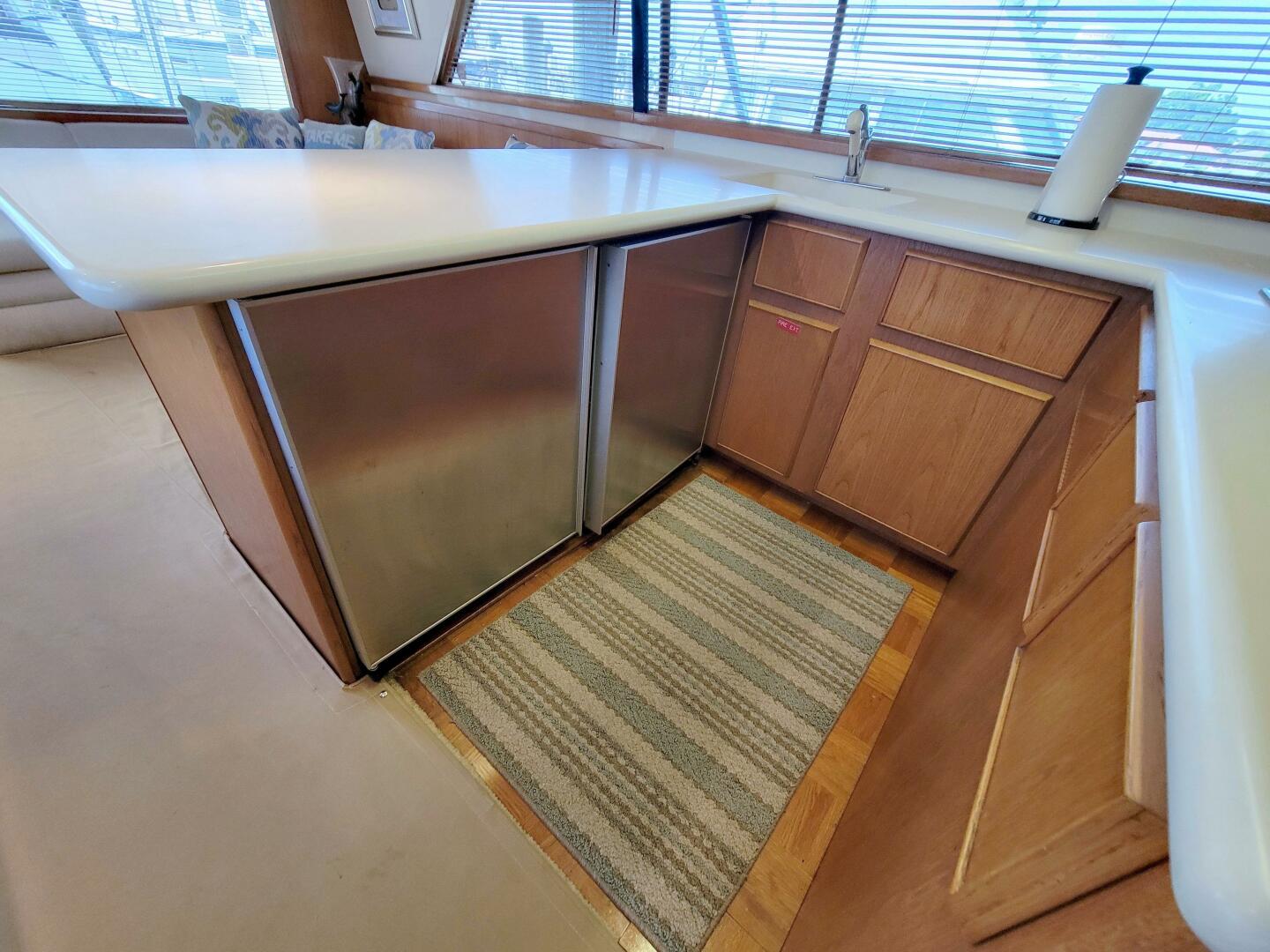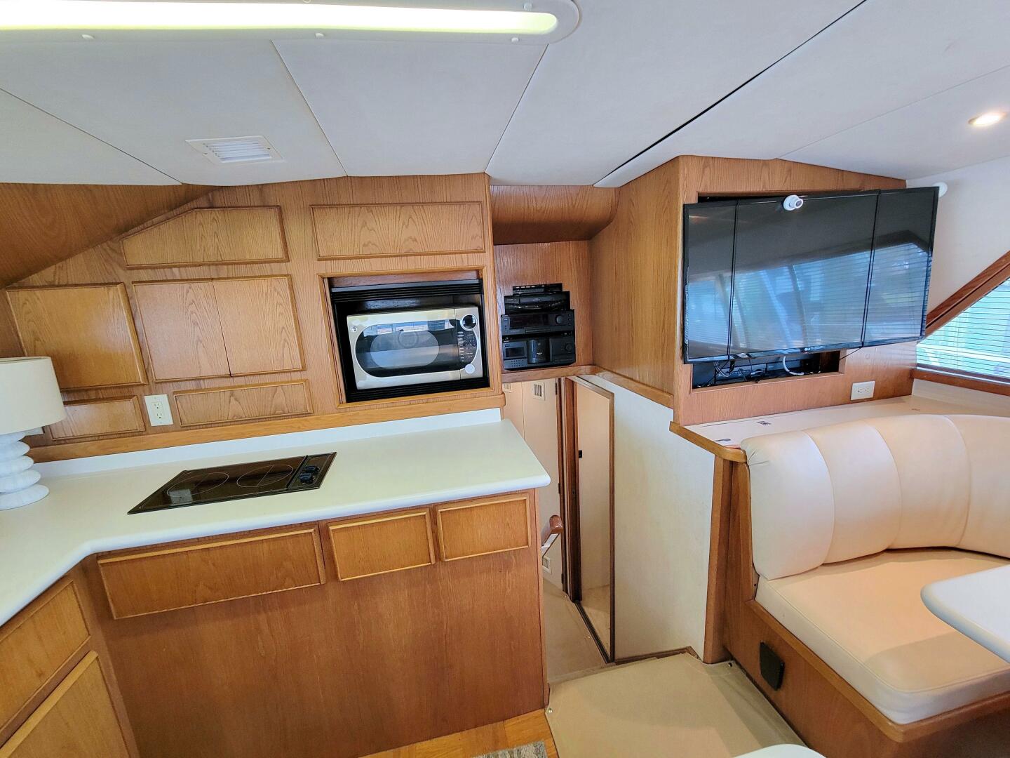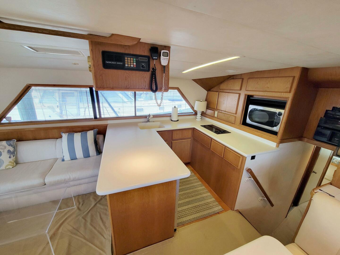 - Galley: Fully equipped with a U-shaped countertop, Ceran electric range, dual Sub-Zero fridge/freezers, and a GE microwave