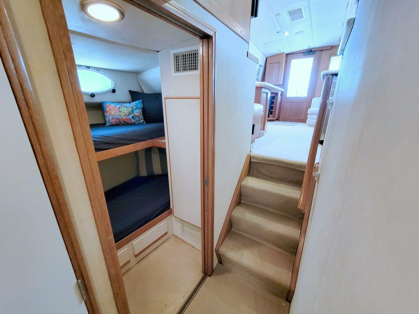 - Staterooms: Two guest rooms with queen berths and an additional stateroom with dual bunks, plus abundant storage and lighting throughout