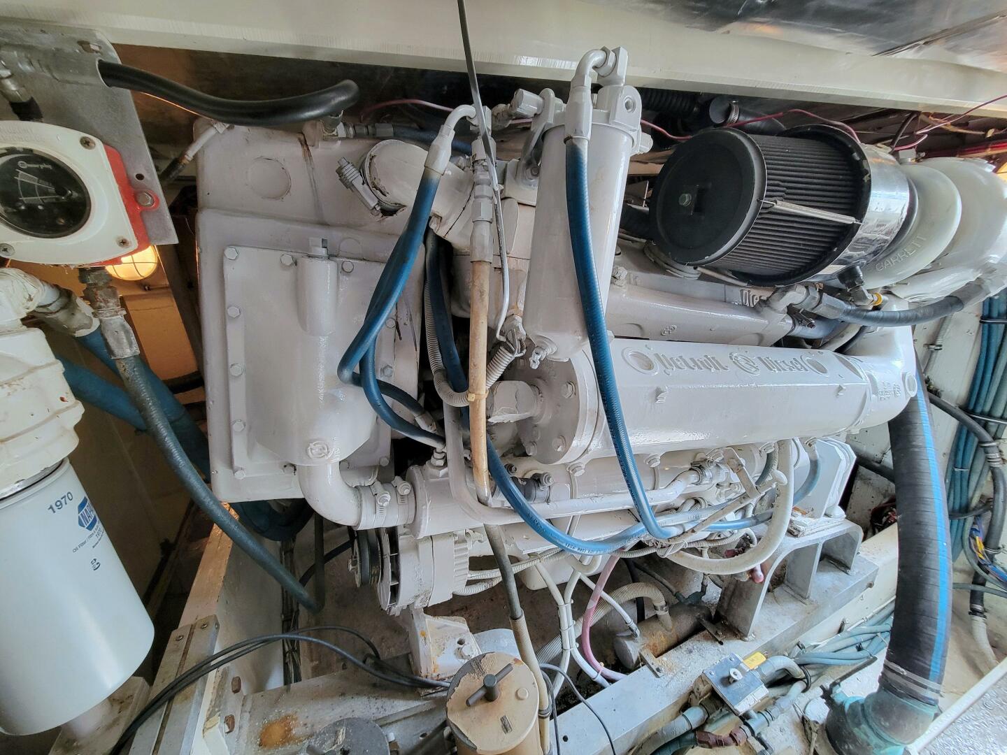 Whether you’re an avid fisherman or a cruising enthusiast, this Bertram 50 Convertible offers exceptional versatility with a spacious cockpit and luxurious interior. The boat is outfitted with a three-stateroom, galley-up layout, designed for both comfort and functionality. Updates include recent engine battery replacements (January 2024), high-pressure hoses, and turbos rebuilt on both engines for added peace of mind.