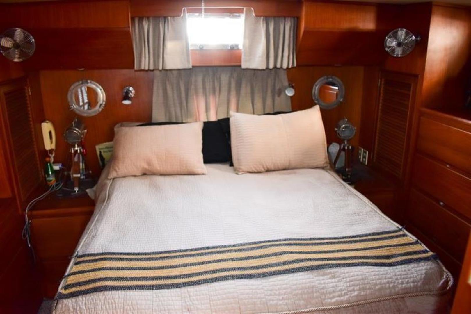 Master stateroom aft with Island queen berth and private head. Second head in guest stateroom.
