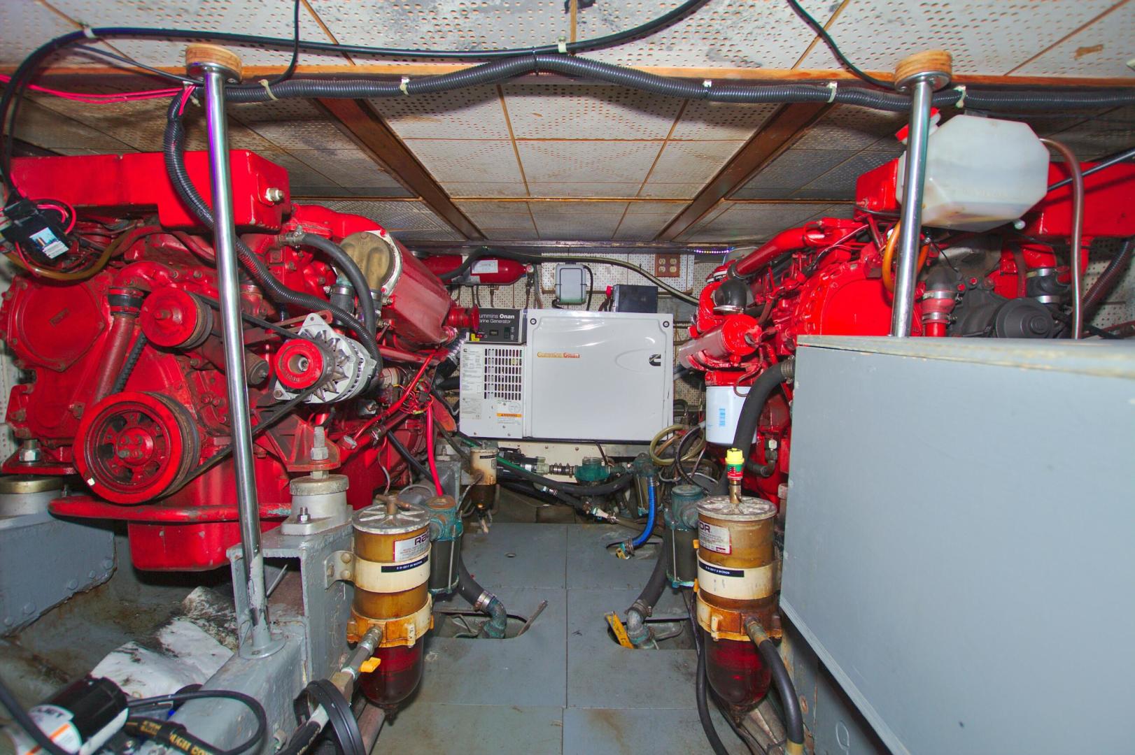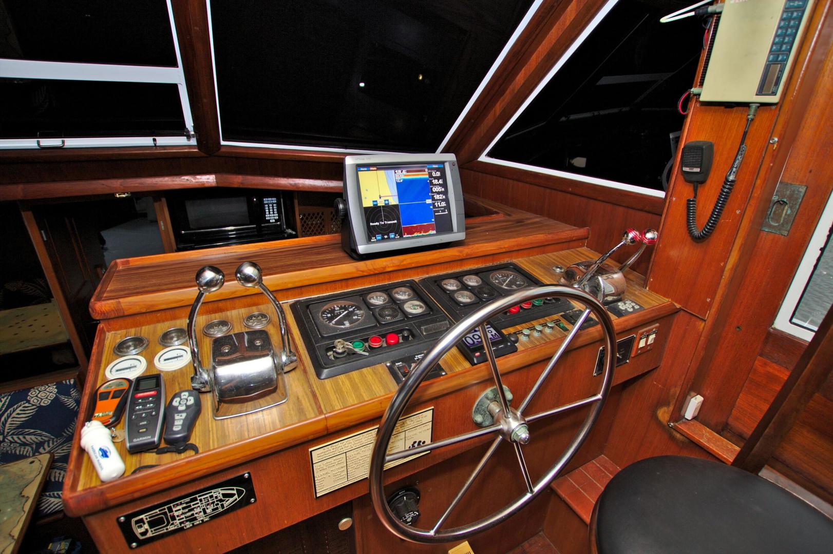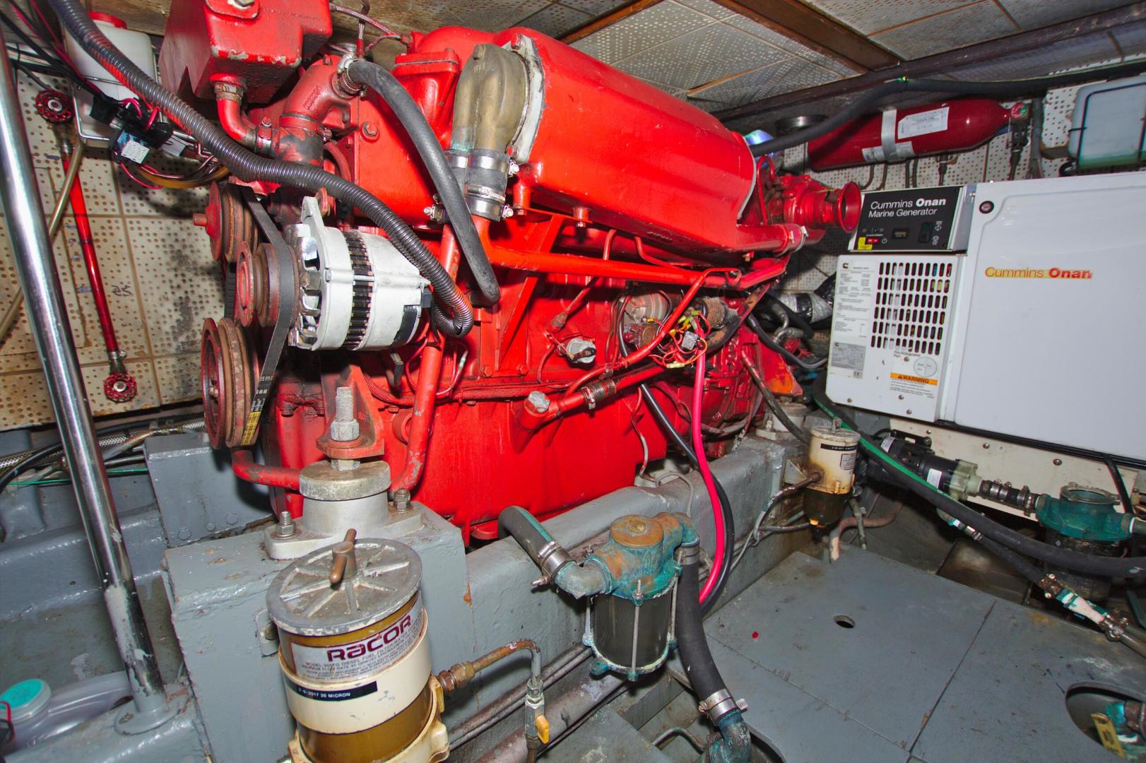 Only 1150 Hours on the Twin very reliable Ford Lehman 275hp Diesels, Complete Garmin Electronics Package, Updated 9kW Onan/Cummins Generator with Low Hours, Accommodations for 6, Lower Station, No Exterior Teak, Inverter with Gen Auto Start, Nice Vessel