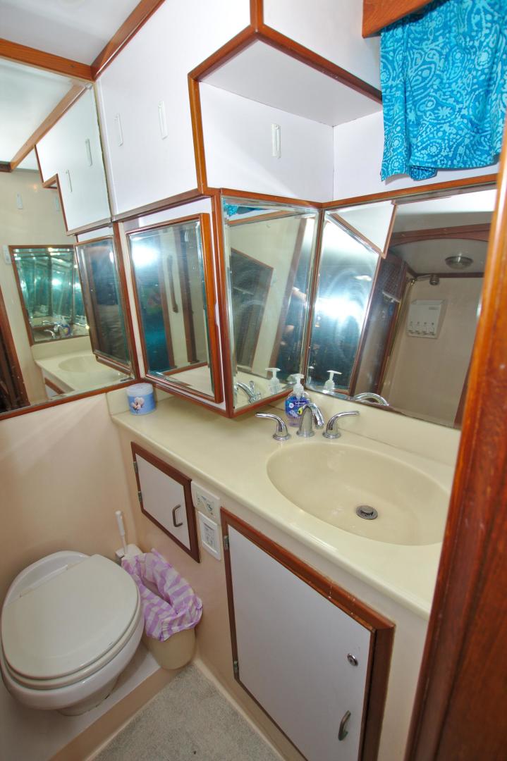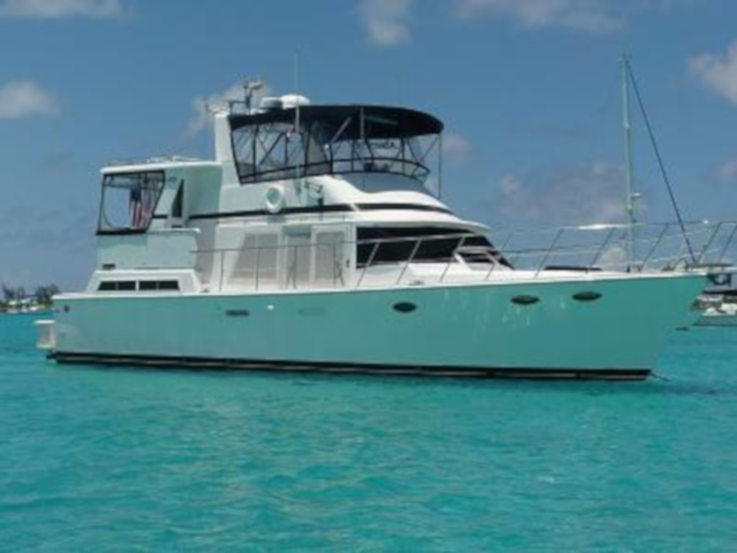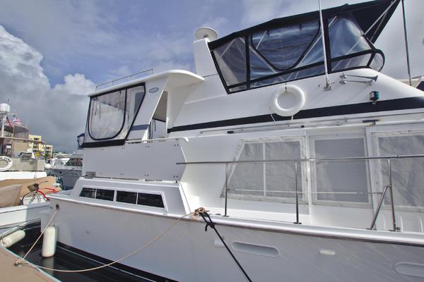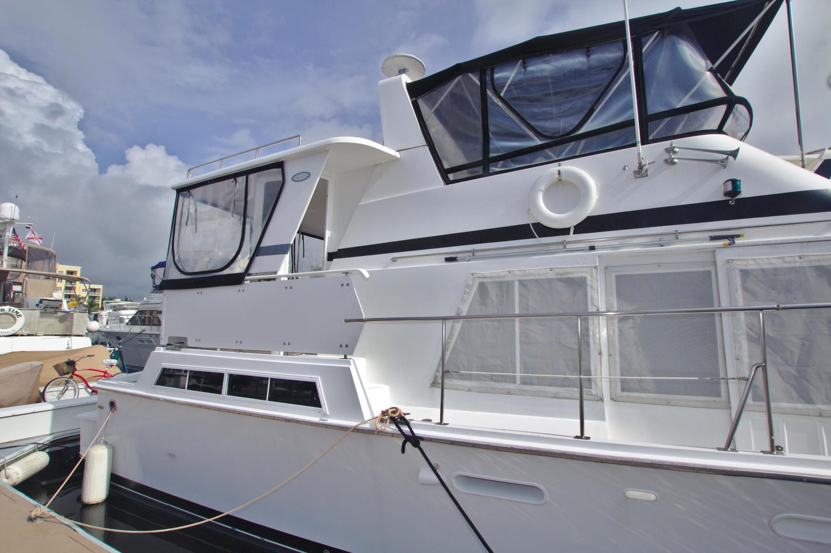 Only 1150 Hours on the Twin very reliable Ford Lehman 275hp Diesels, Complete Garmin Electronics Package, Updated 9kW Onan/Cummins Generator with Low Hours, Accommodations for 6, Lower Station, No Exterior Teak, Inverter with Gen Auto Start, Nice Vessel