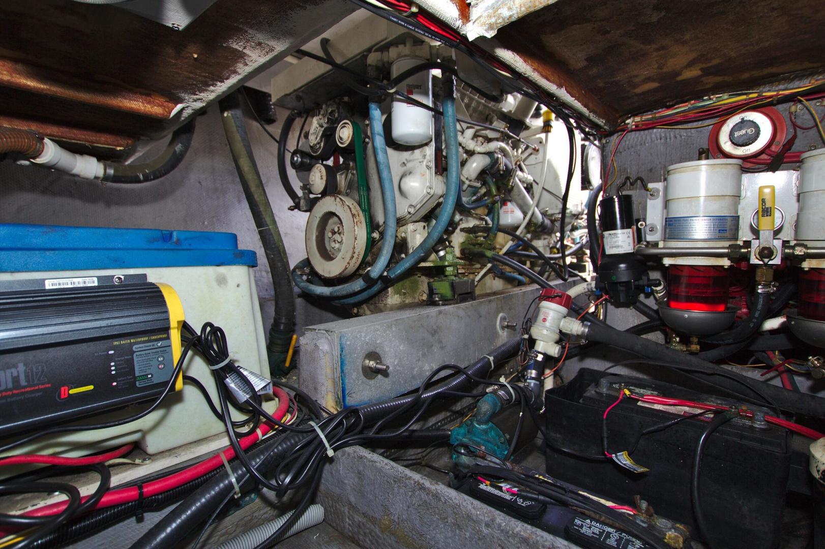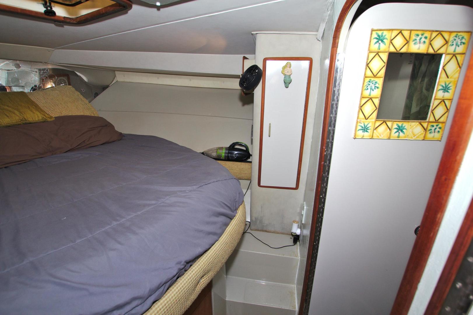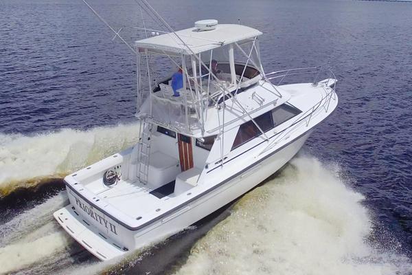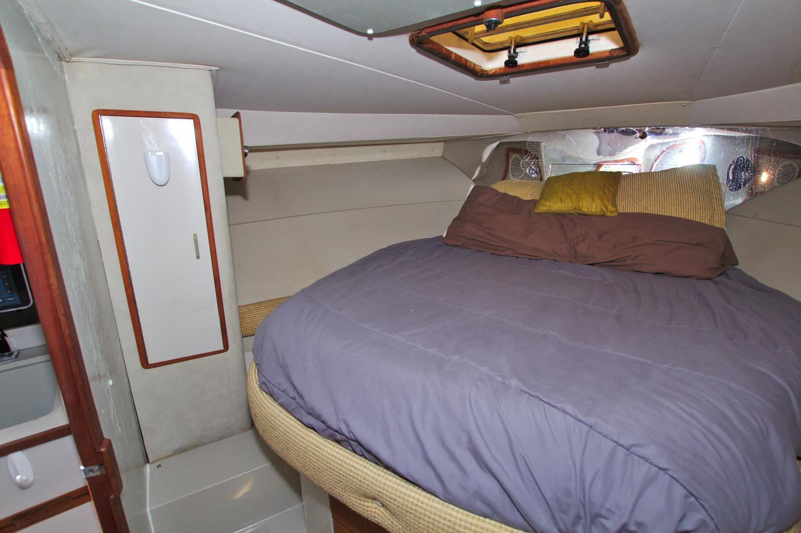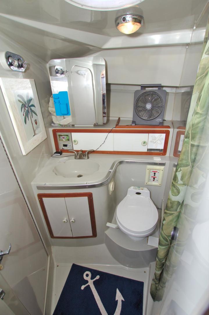Great Entry Level Convertible, Twin 6BT5.9 Cummins Diesels installed in 2004 with under 850hrs. 8kw Westerbeke Gen with only 410hrs. She can sleep 4 comfortable with the convertible dinette. Private Stateroom with island queen, full head with enclosed shower and Vacu-Flush Head. Large Flybridge with seating for 4, and exceptionally large cockpit for a 33ft boat. Also, engine access is surprising good with aft engine boxes and forward access in the salon. Do not miss the opportunity to own this classic convertible.