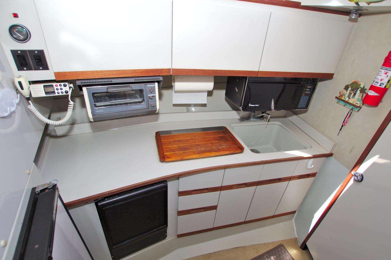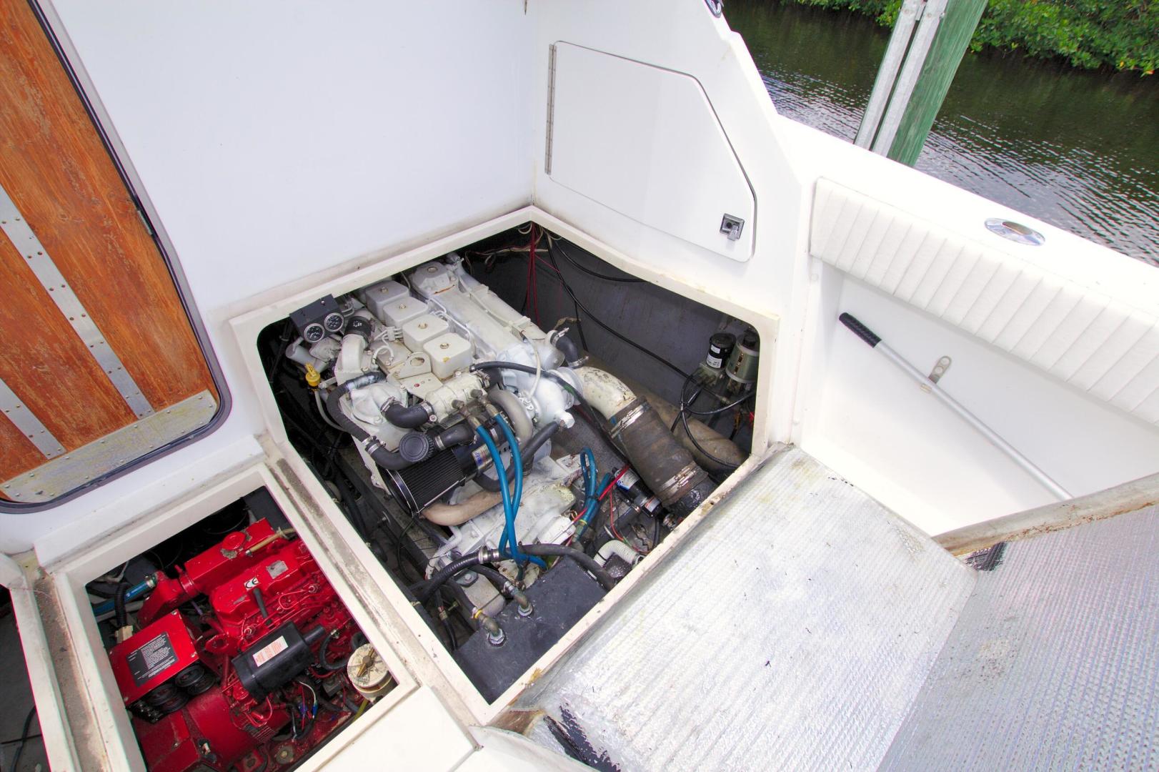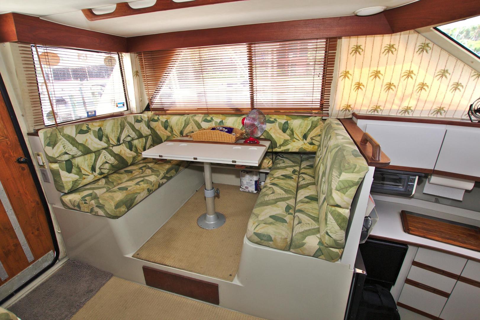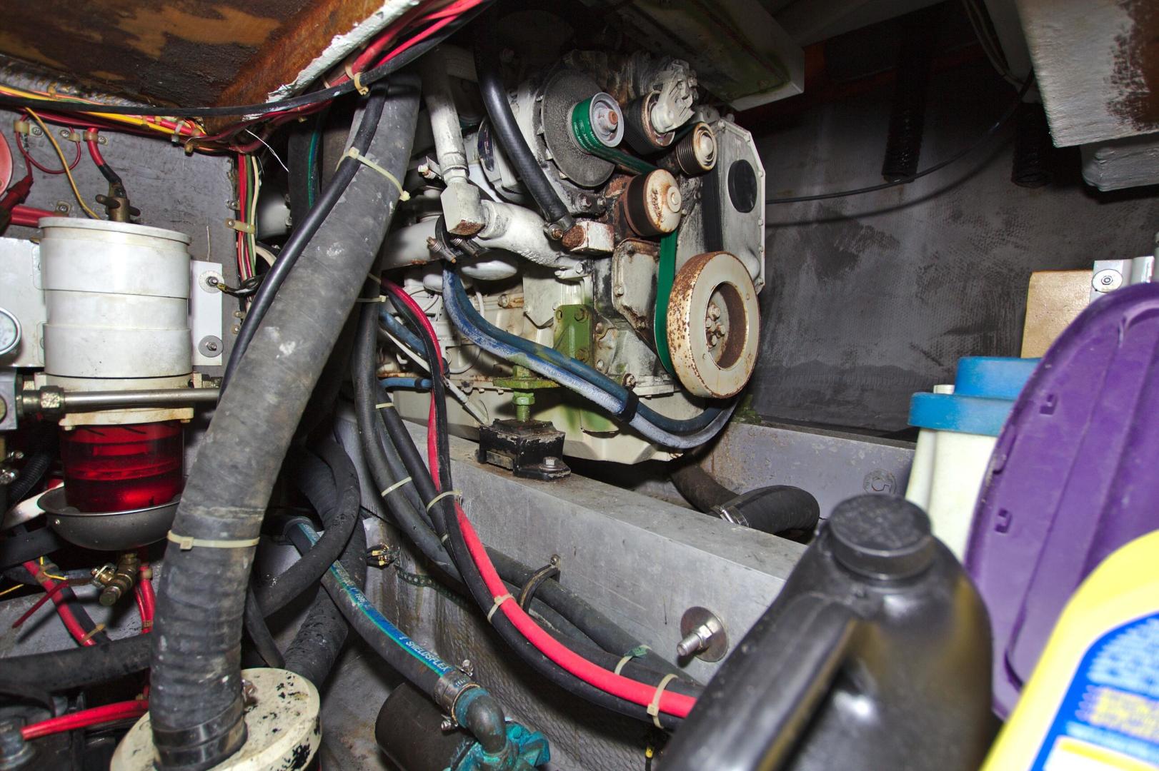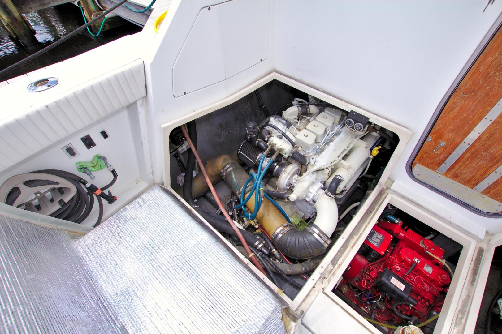 Great Entry Level Convertible, Twin 6BT5.9 Cummins Diesels installed in 2004 with under 850hrs. 8kw Westerbeke Gen with only 410hrs. She can sleep 4 comfortable with the convertible dinette. Private Stateroom with island queen, full head with enclosed shower and Vacu-Flush Head. Large Flybridge with seating for 4, and exceptionally large cockpit for a 33ft boat. Also, engine access is surprising good with aft engine boxes and forward access in the salon. Do not miss the opportunity to own this classic convertible.