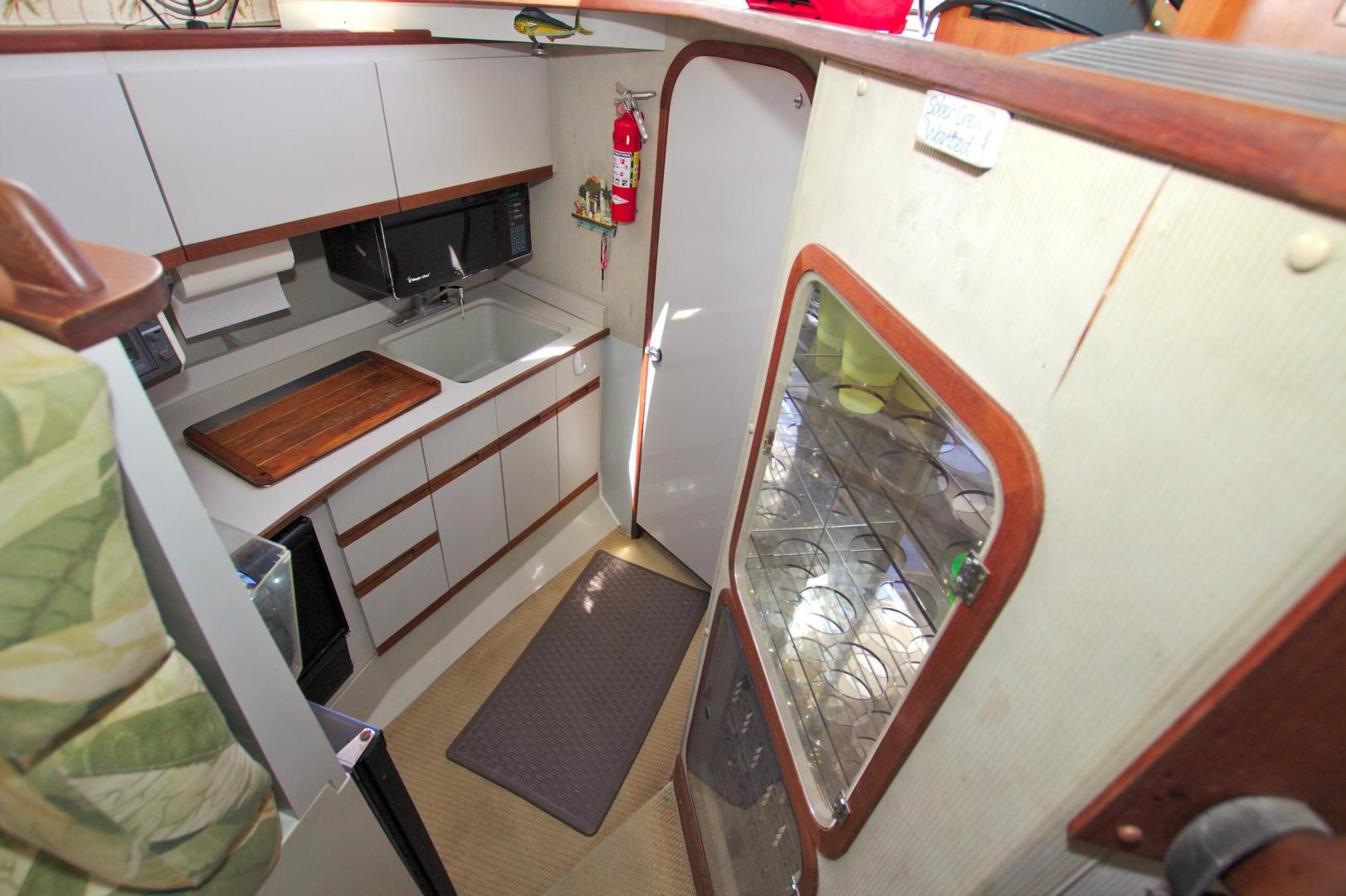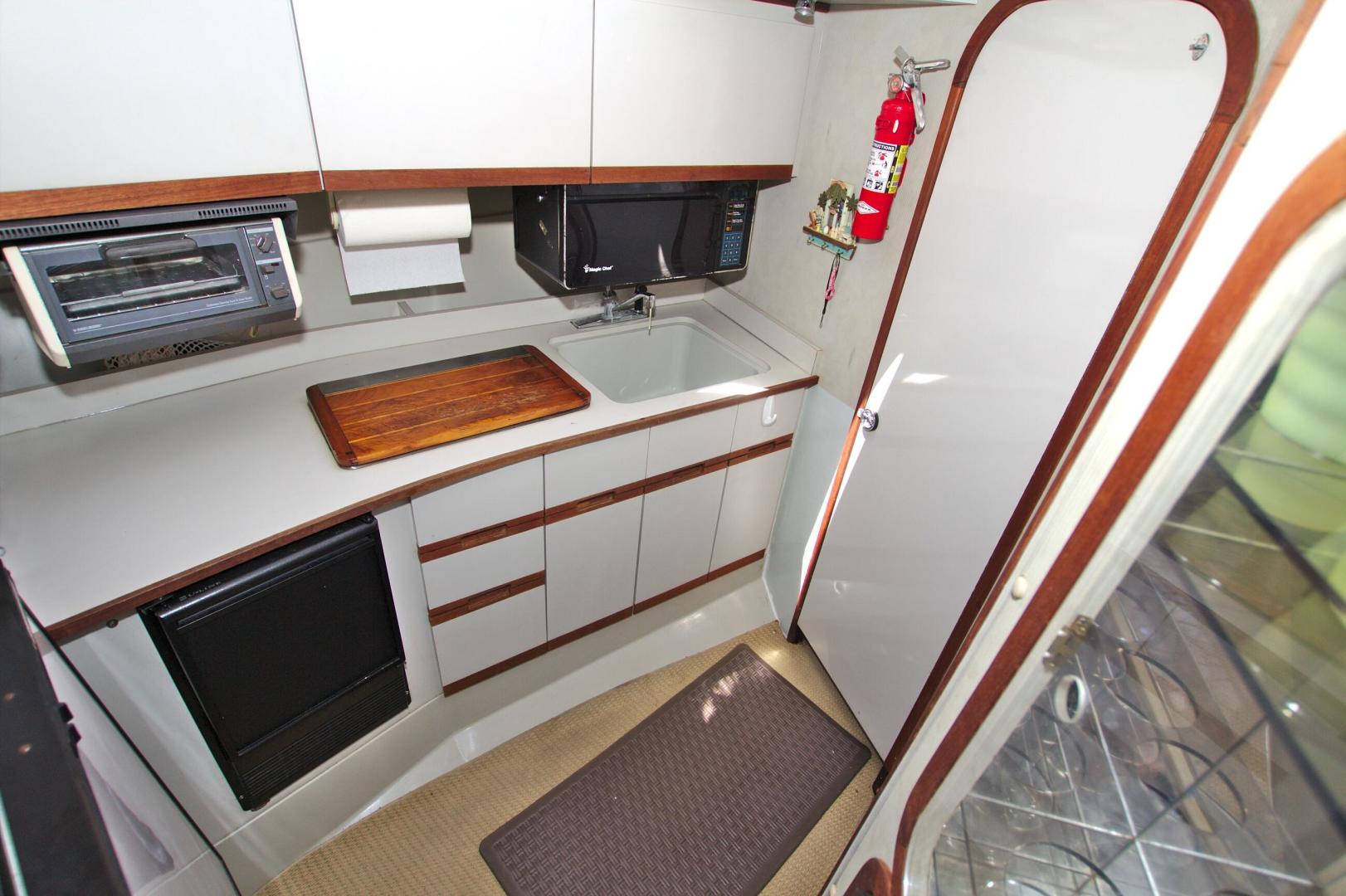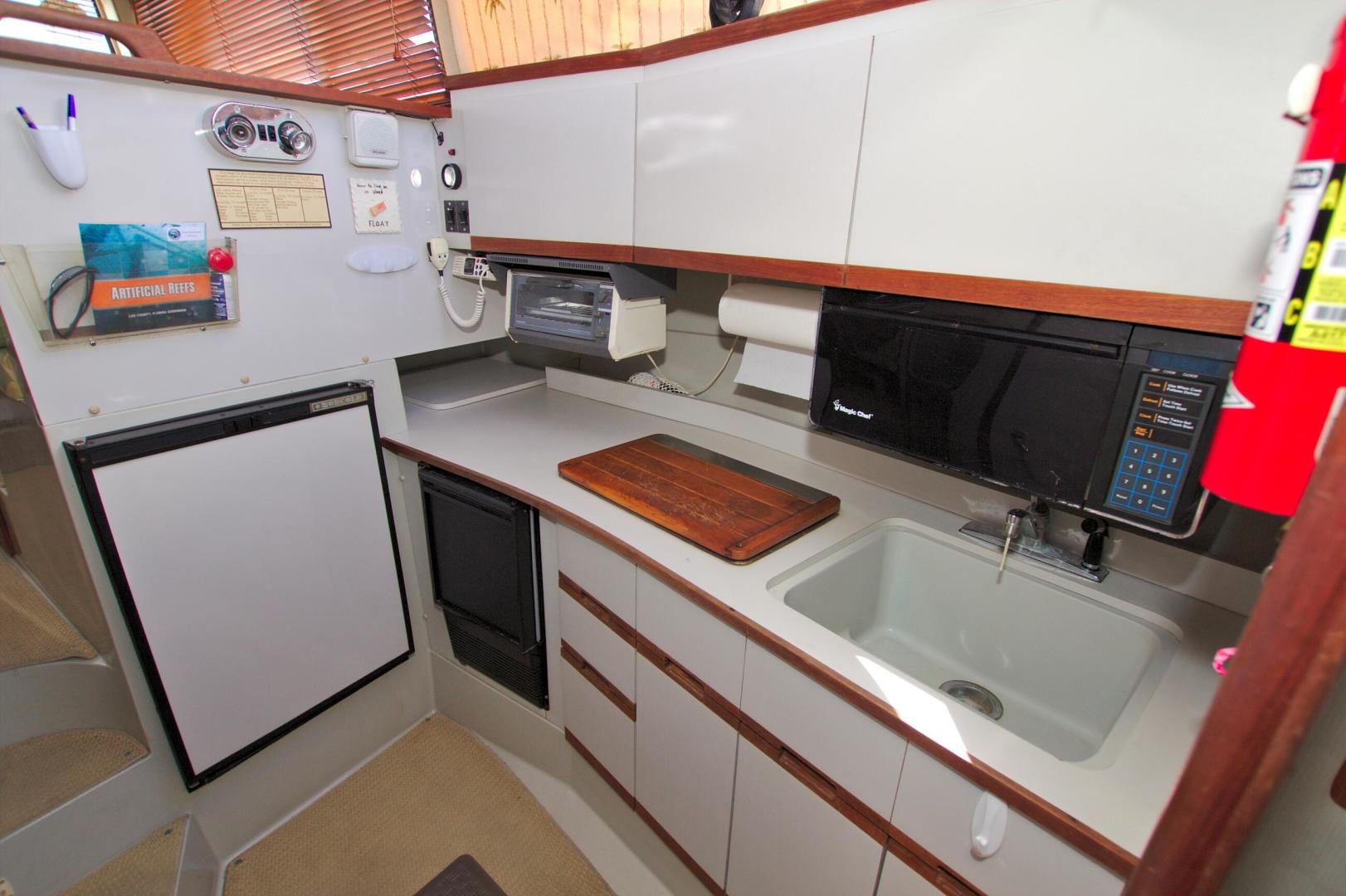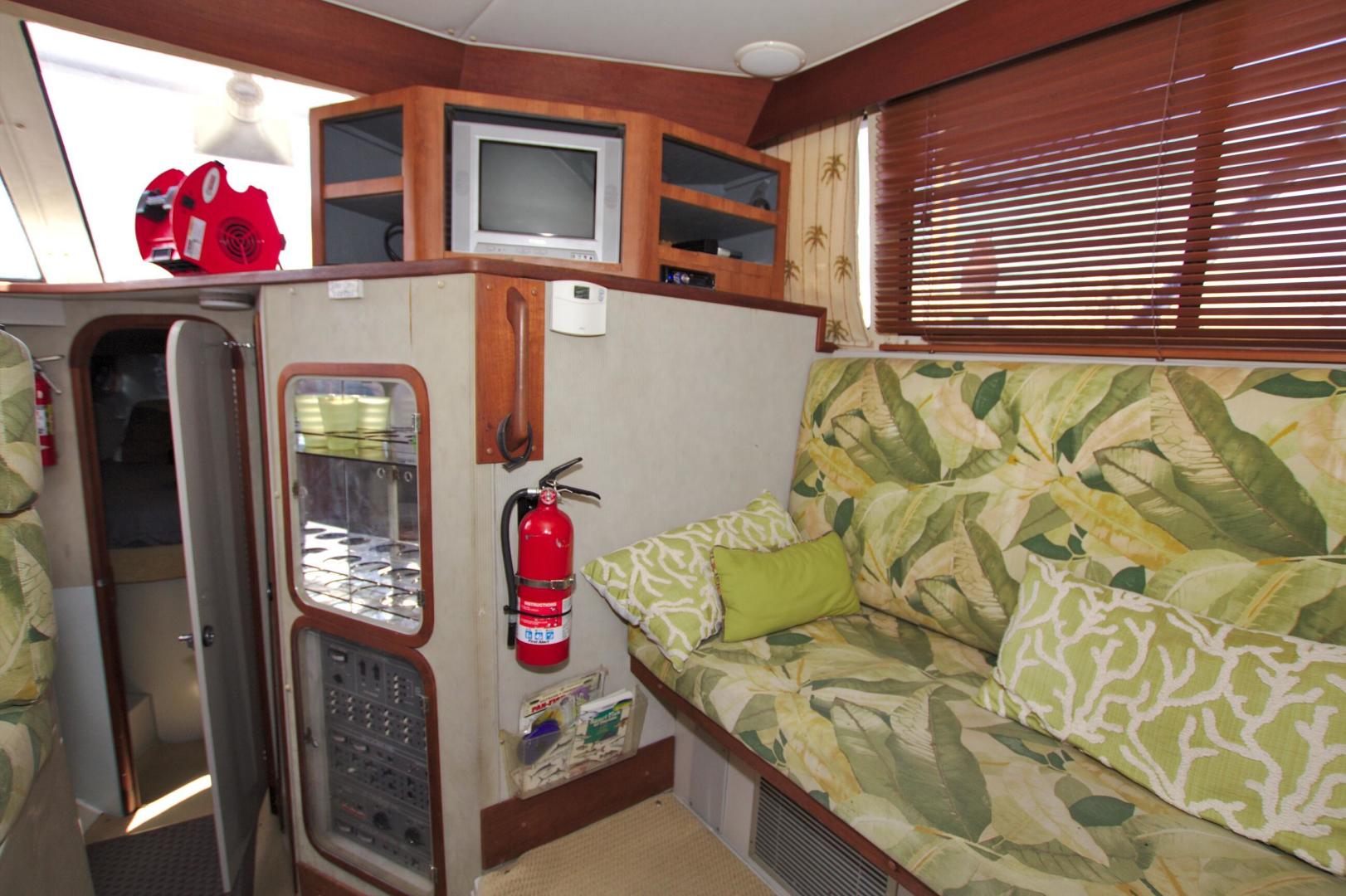 Great Entry Level Convertible, Twin 6BT5.9 Cummins Diesels installed in 2004 with under 850hrs. 8kw Westerbeke Gen with only 410hrs. She can sleep 4 comfortable with the convertible dinette. Private Stateroom with island queen, full head with enclosed shower and Vacu-Flush Head. Large Flybridge with seating for 4, and exceptionally large cockpit for a 33ft boat. Also, engine access is surprising good with aft engine boxes and forward access in the salon. Do not miss the opportunity to own this classic convertible.