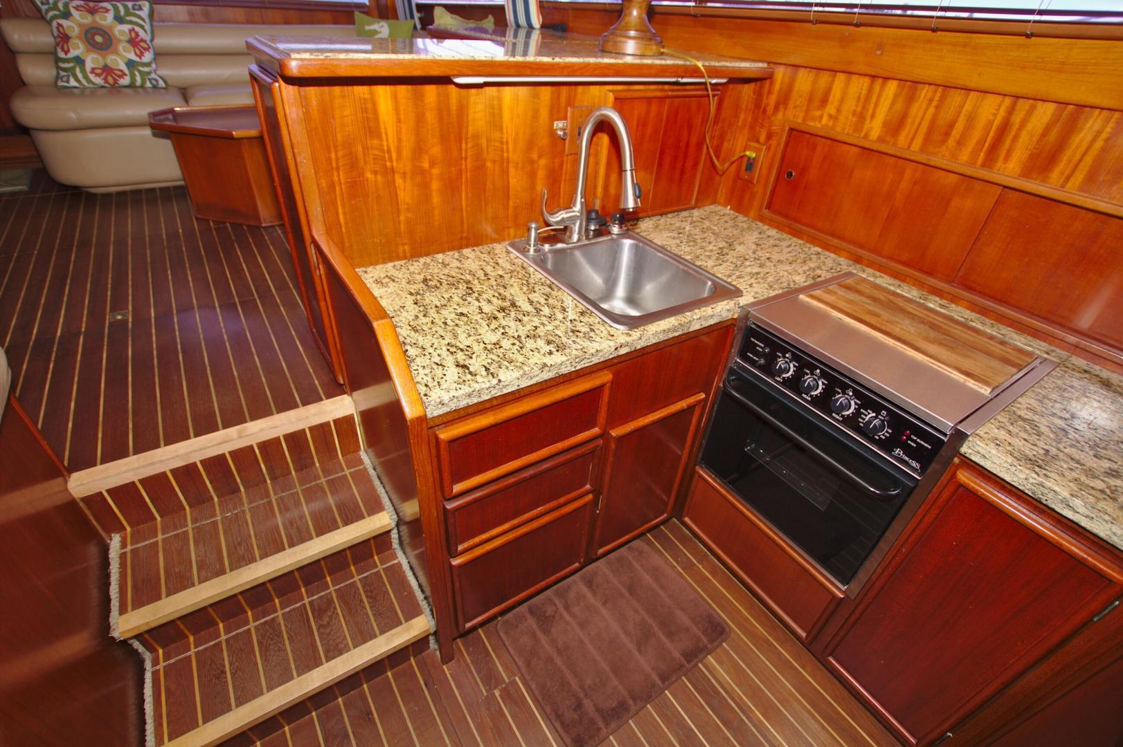 - Tackle & storage cabinet port side w/molded sink & water spray