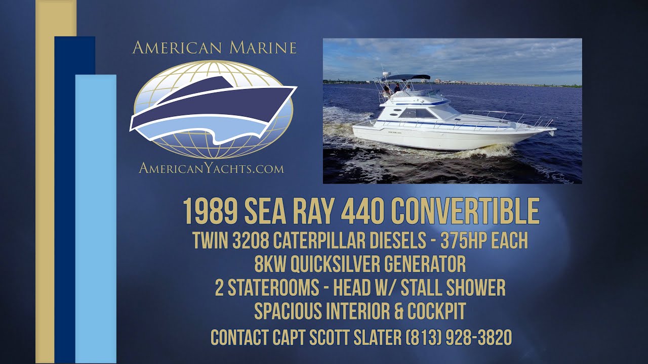 1989 Sea Ray 440Convertable, Twin Clean Cat 3208's and Generator, Just Waxed, Ready To Go Play In Air Conditioned Comfort? This Boat Will Do It All.