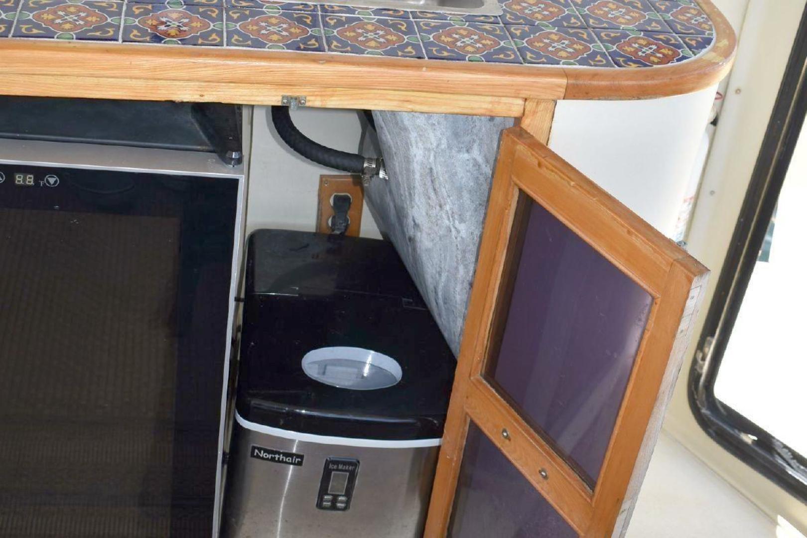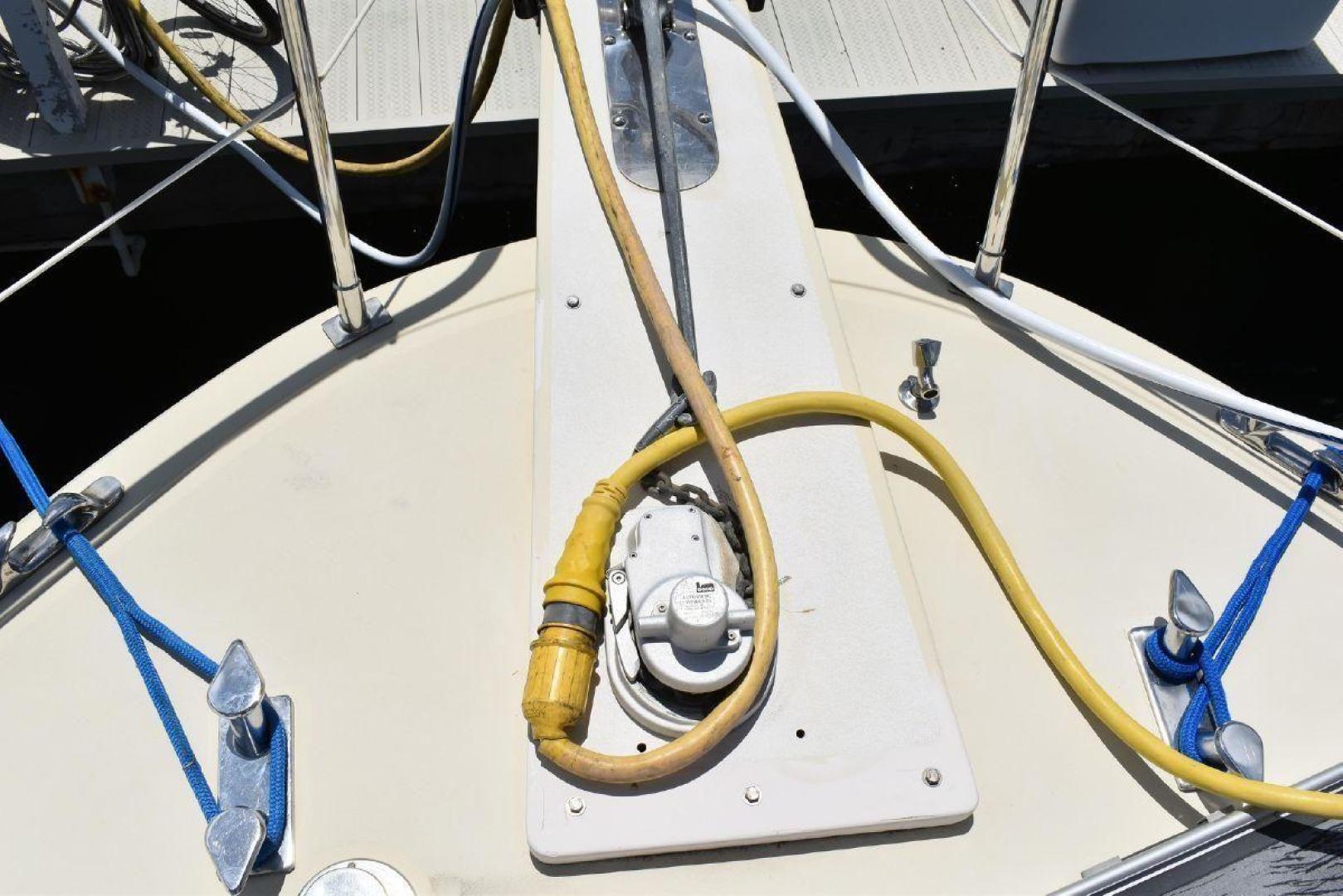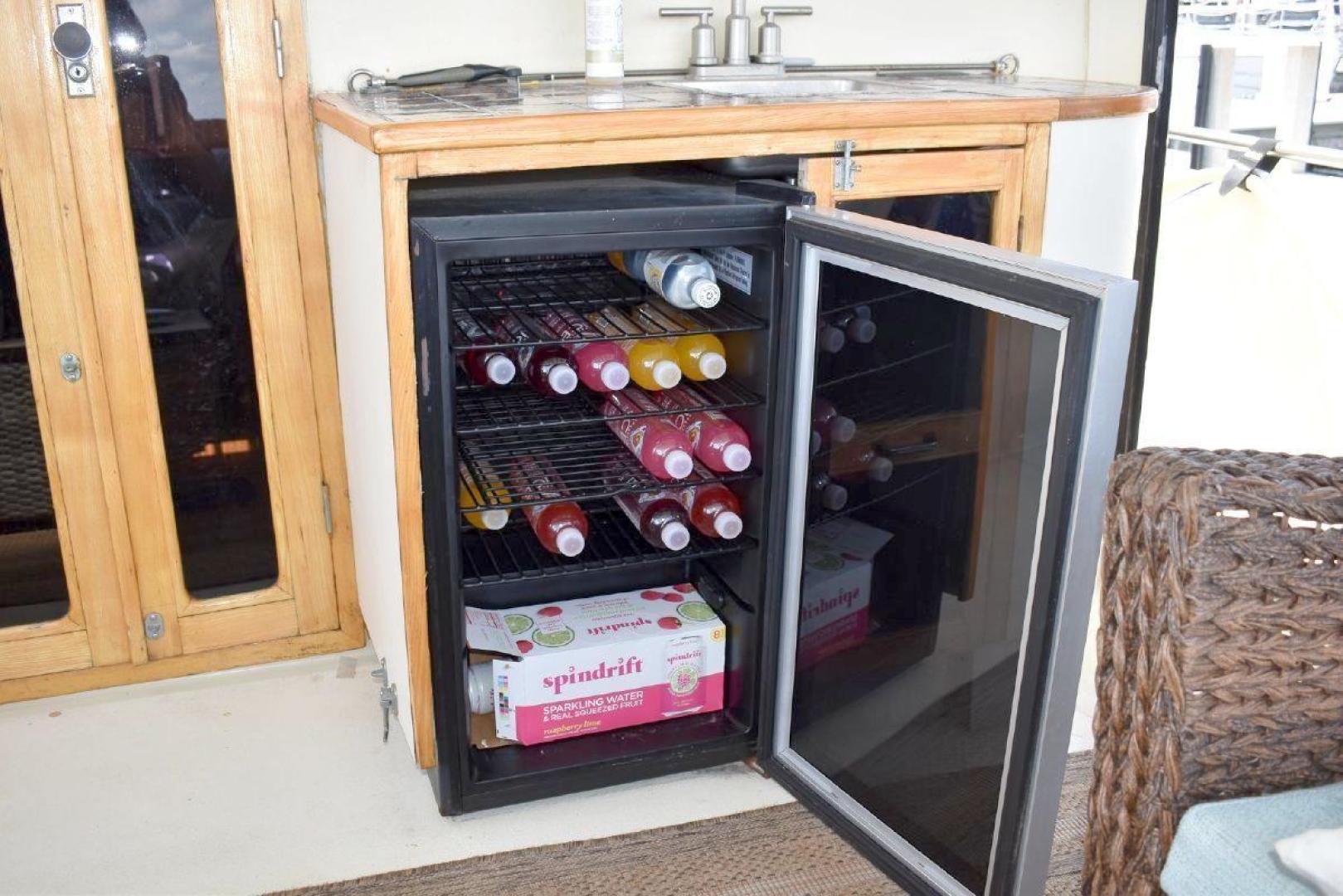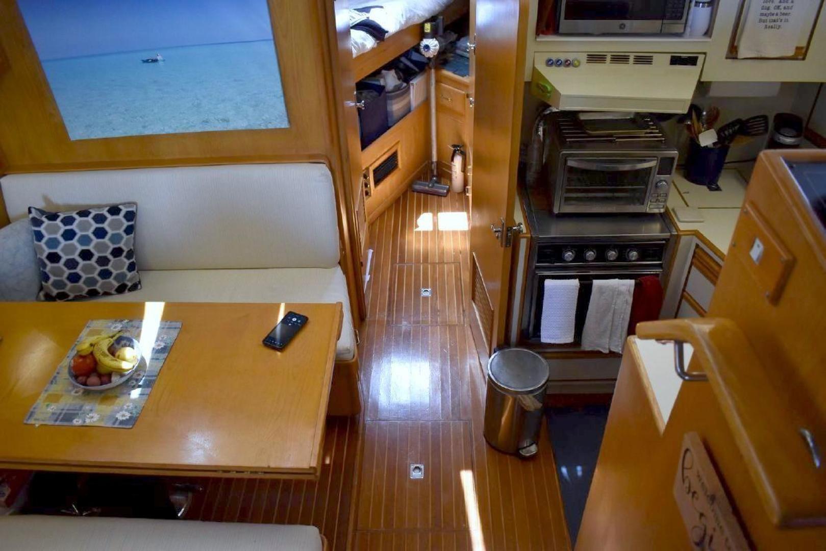 A large covered Aft deck with refrigeration, storage and access to the swim platform & dinghy. The interior is very roomy and will accommodate comfortably 6 passengers, two in the forward second stateroom with ensuite head. Two in the main salon with a pull-out sofa bed, and two in the well-appointed aft master stateroom. The galley is open with microwave, oven, cooktop, and the settee will seat six comfortably. All furniture, TV with soundbar make for a comfortable saloon. Apartment sized Washer & Dryer.