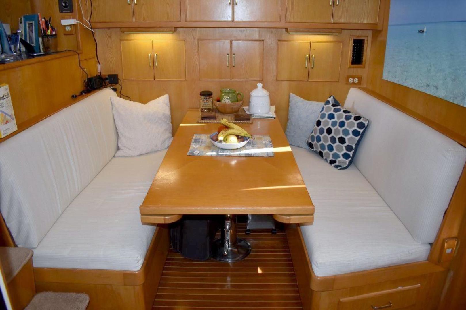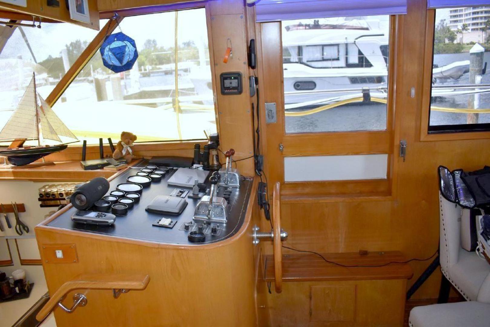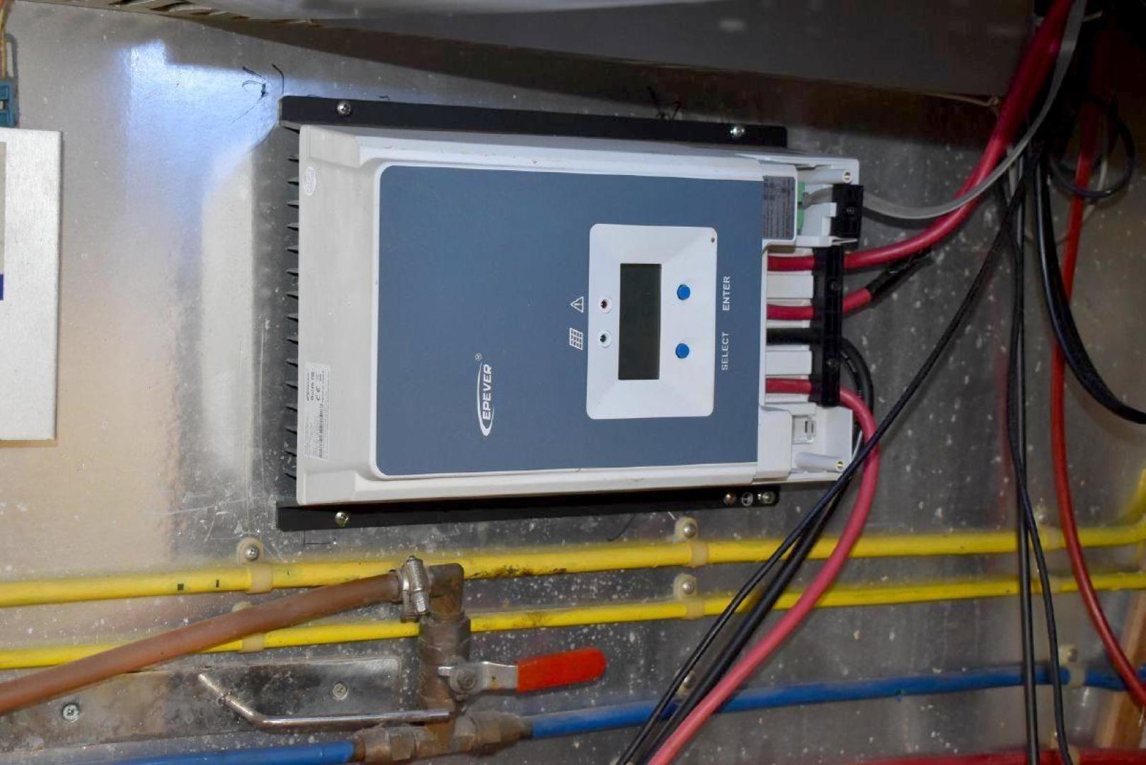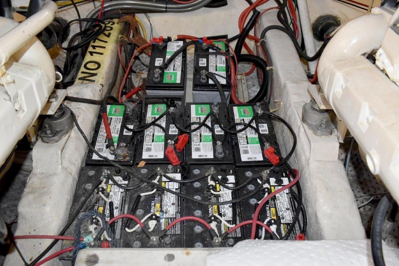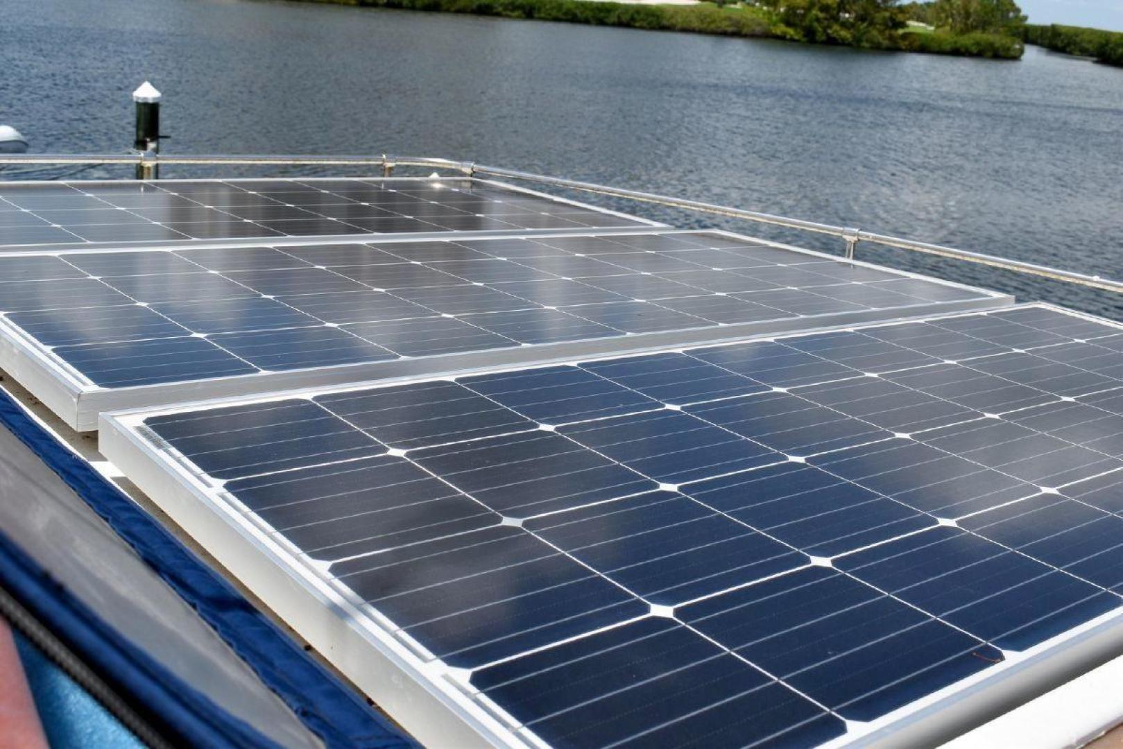 This Vista 43 is set up for cruising. True North offers reliable twin CAT 3208 with only 1560 and 1532 hrs. on the engines and a low 63 hrs. on a 6.5KW genset. True North offers a bow thruster for tight maneuvering, with a new battery. An updated large set of batteries (8 house and dedicated batteries for each engine and genset), 4 new large solar panels (190 watts each), keeps everything charged and a 3kw inverter will keep your refrigerator running for a long time at anchor. A feature of True North is working stabilizers to help with the rocking while making longer runs offshore. Electronics include updated Garmin X5 Color Chart plotter (AIS 2000) with Radar with 2 smaller Garmin Color plotter below, and new updated Autopilot.