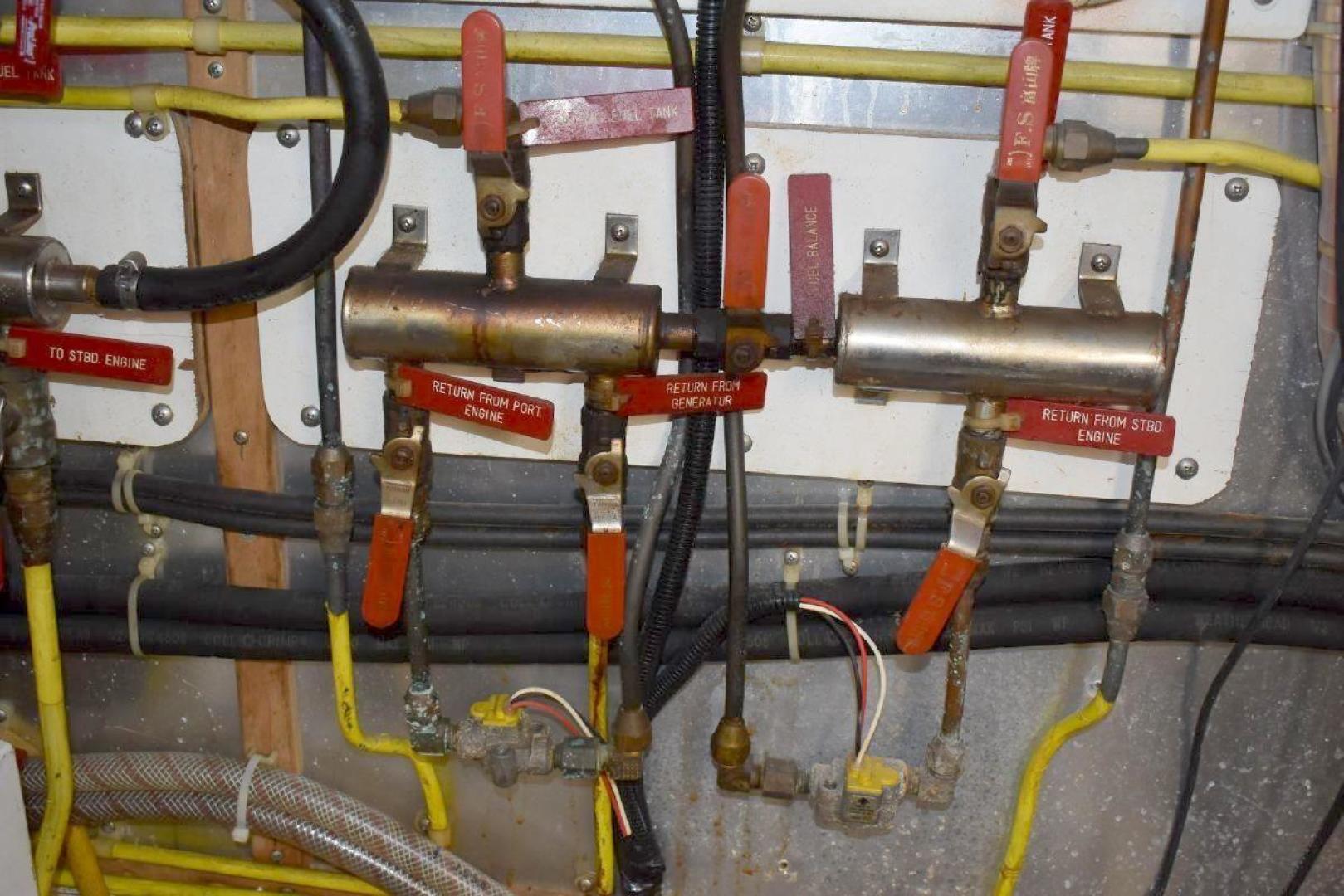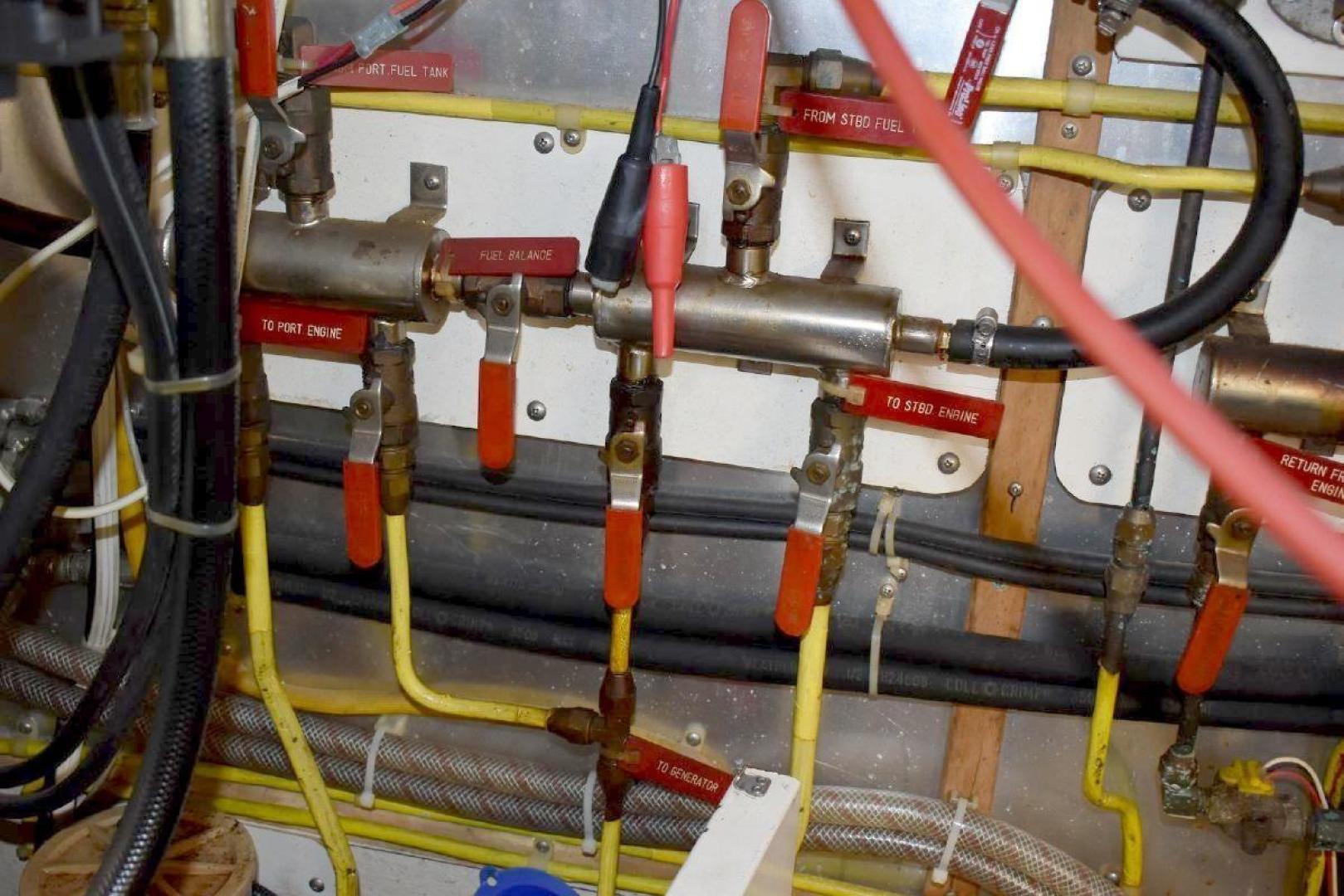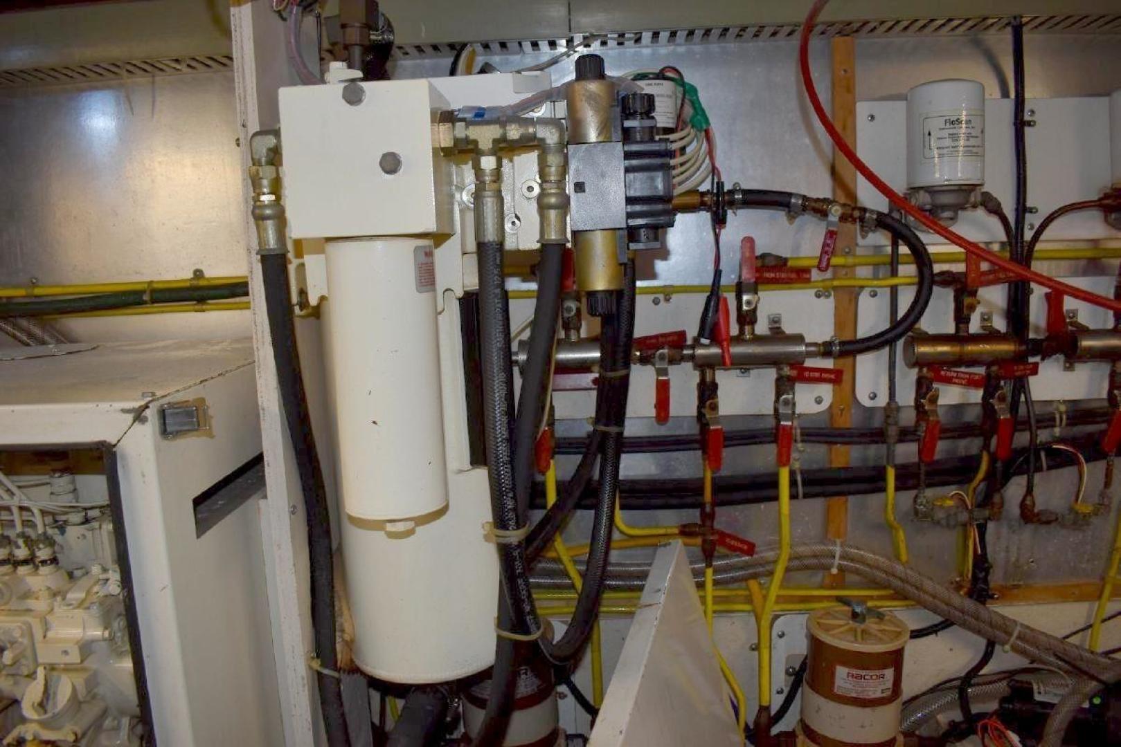 The engine room has easy access around both engines, includes oil changing system, fuel filter monitor, as well as air filter monitors.