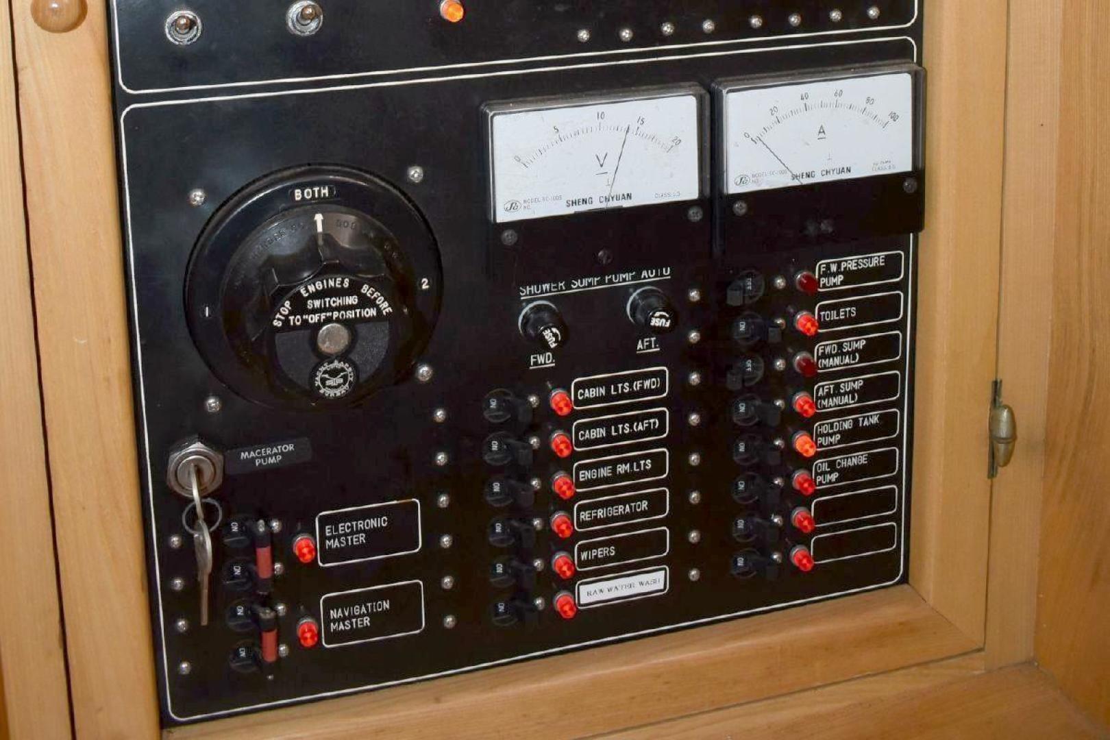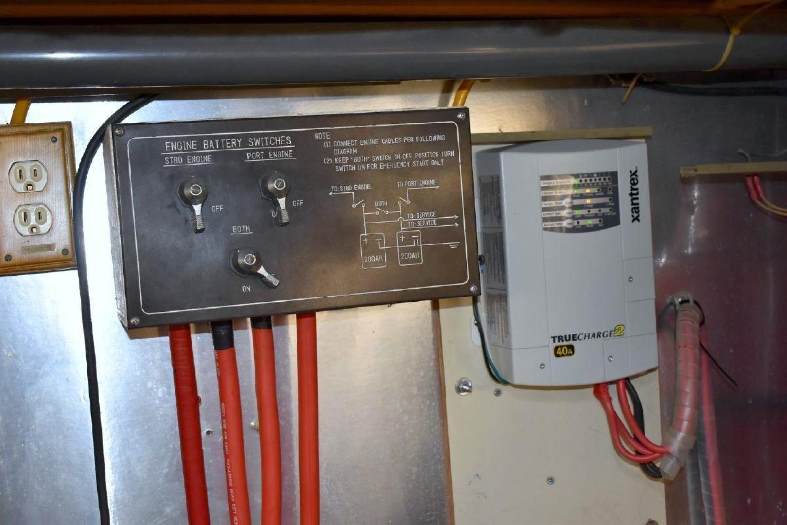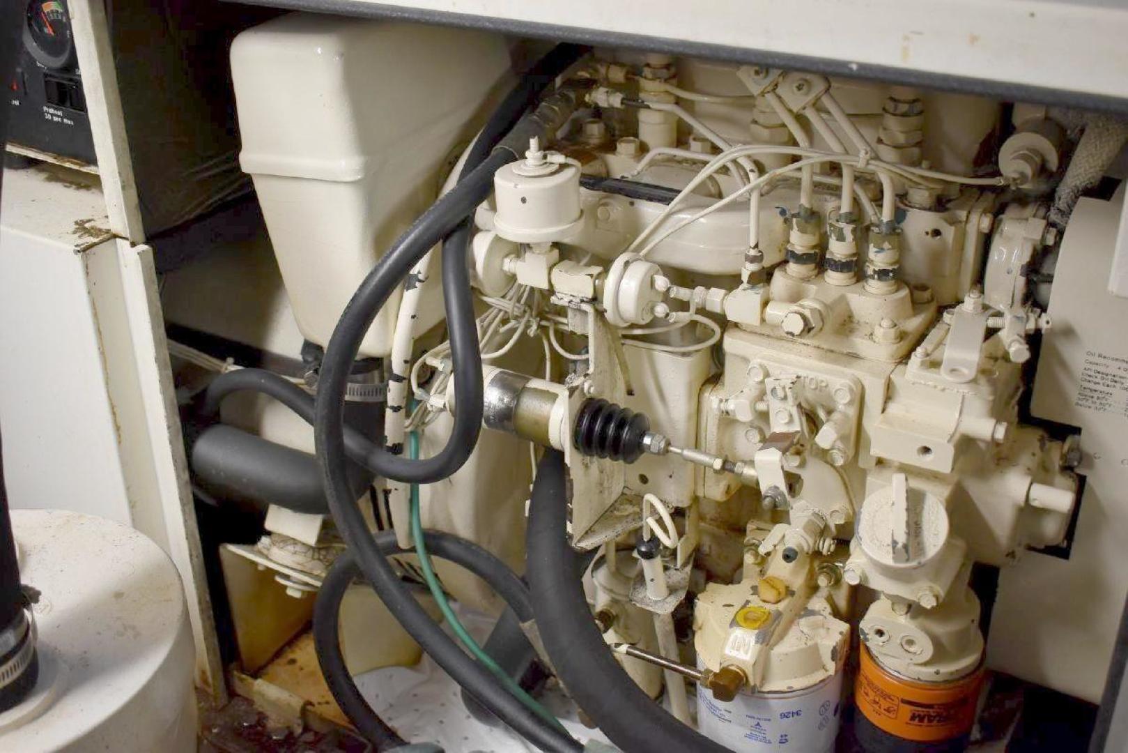 The engine room has easy access around both engines, includes oil changing system, fuel filter monitor, as well as air filter monitors.