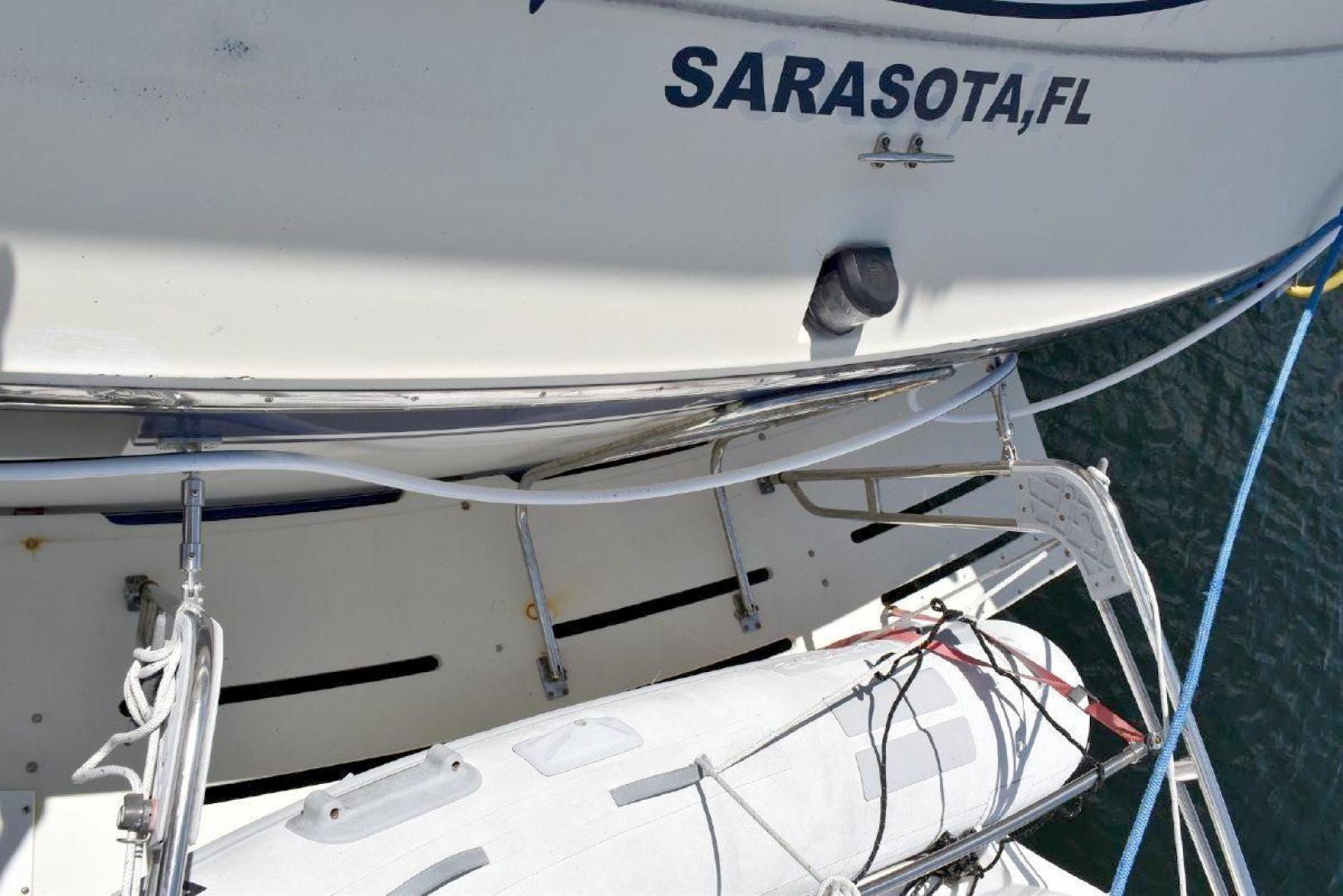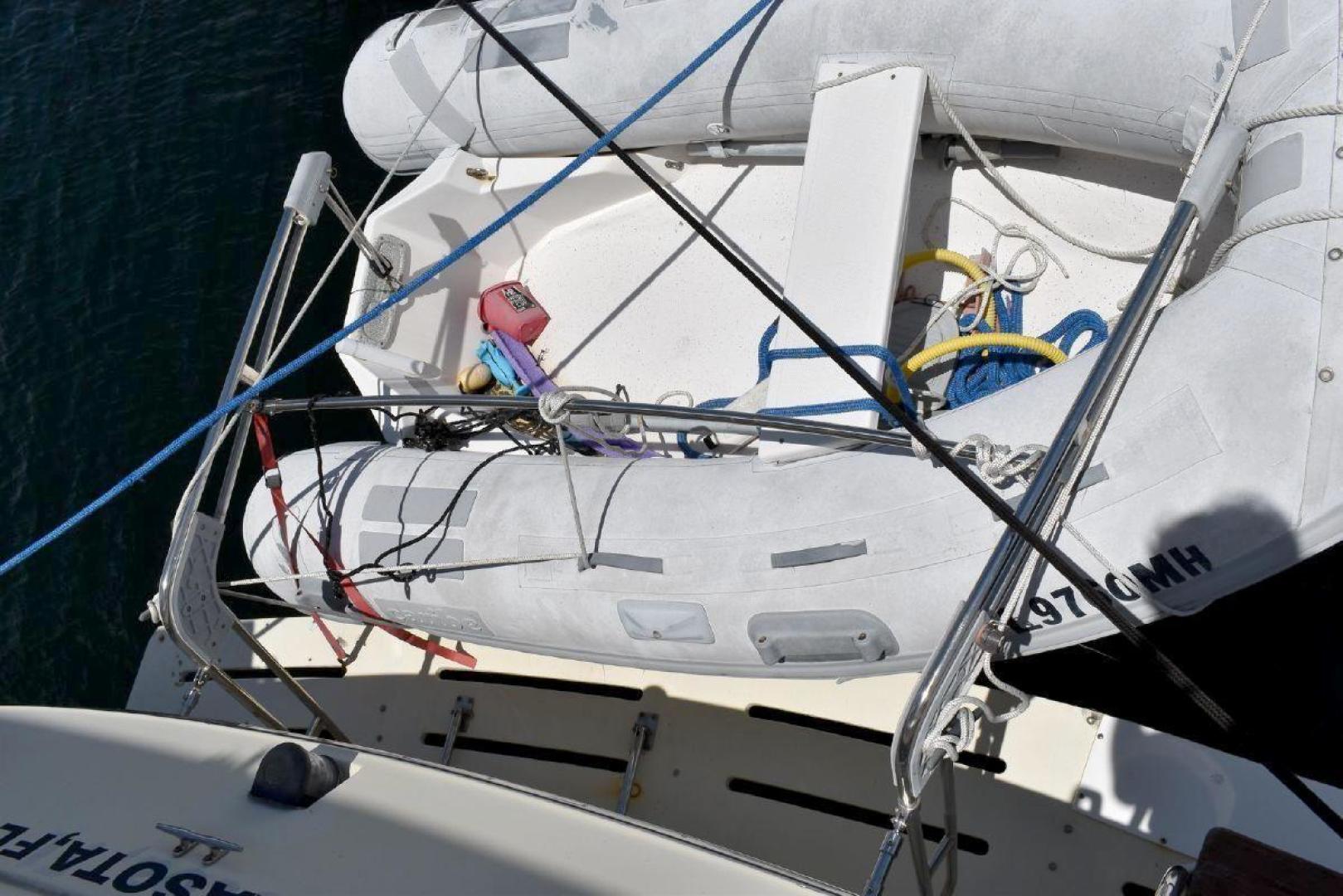 This boat comes with the dinghy davits, Caribe dinghy and Spirit 1.0 electric motor.