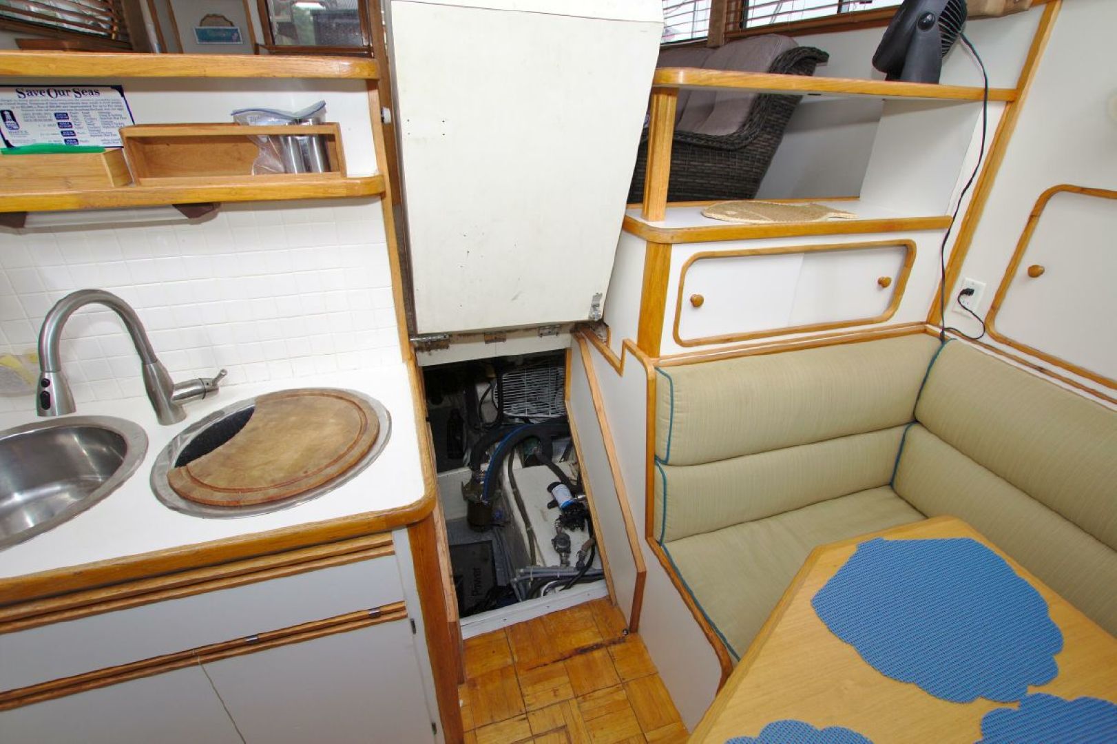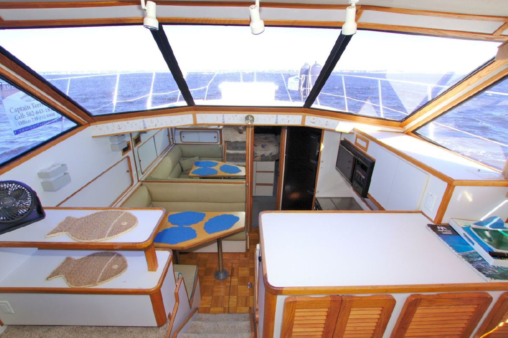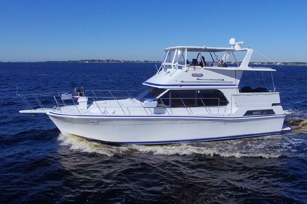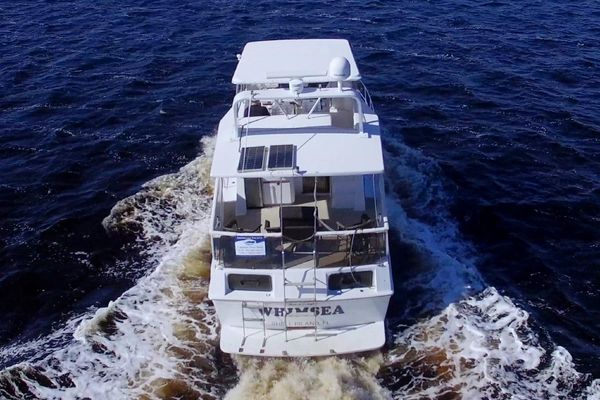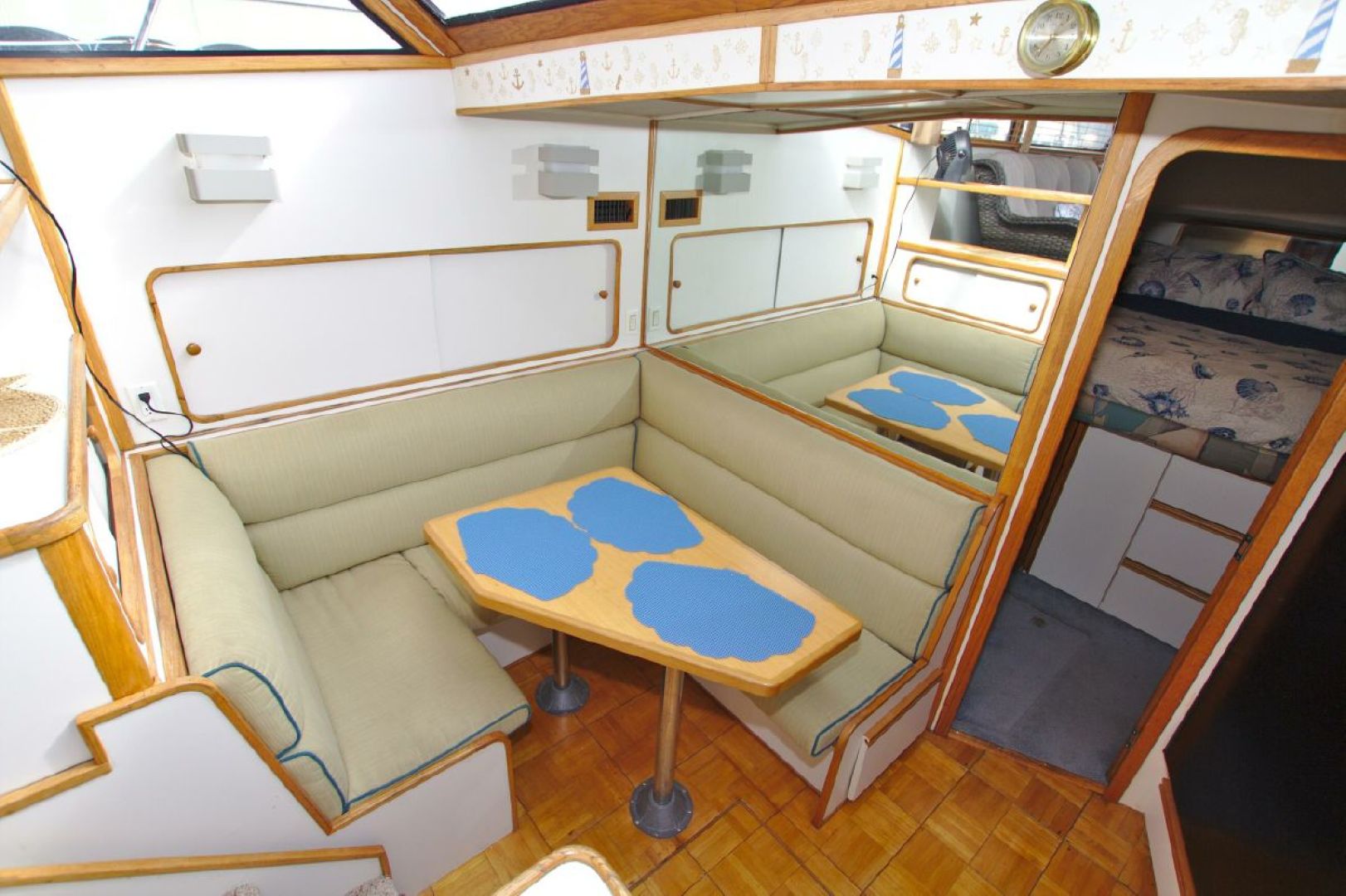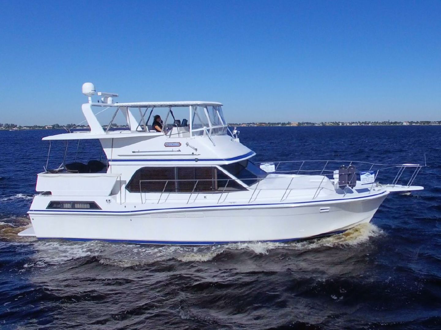 The Chris Craft 427 is a large, roomy vessel that's perfect for cruising or as a live-aboard. For those who like "home-like accommodations" the double stateroom arrangement is ideal with walk-around queen beds in each and en-suite heads. Separating the staterooms is a very comfortable main salon/galley area with a full-size fridge and dinette. Outside living is outstanding with the covered aft deck and spacious bridge deck. The 427 has a great reputation as a safe and stable platform with her modified V hull and twin diesel 3208 engines. "Whimsea" is in great shape and ready for her new owners.