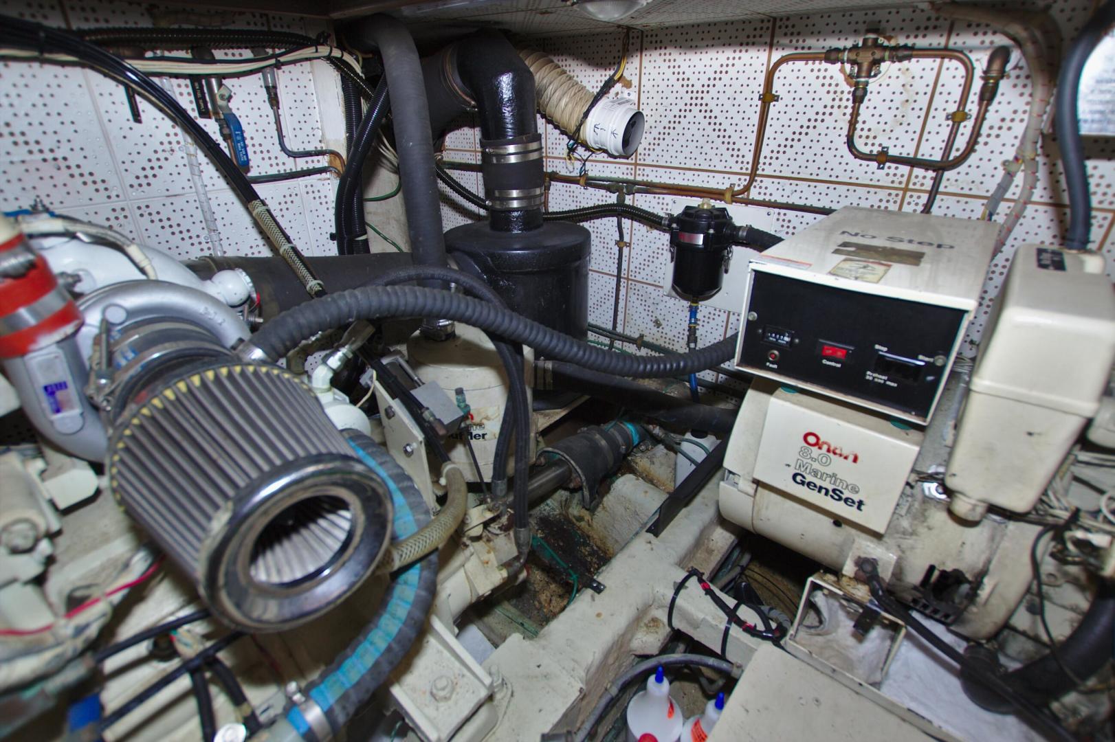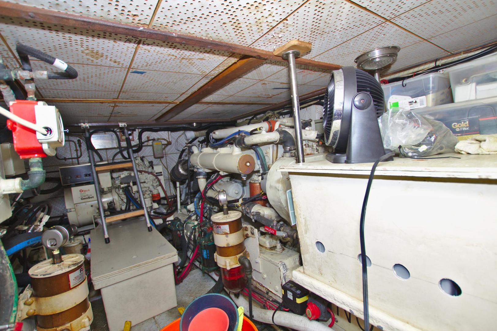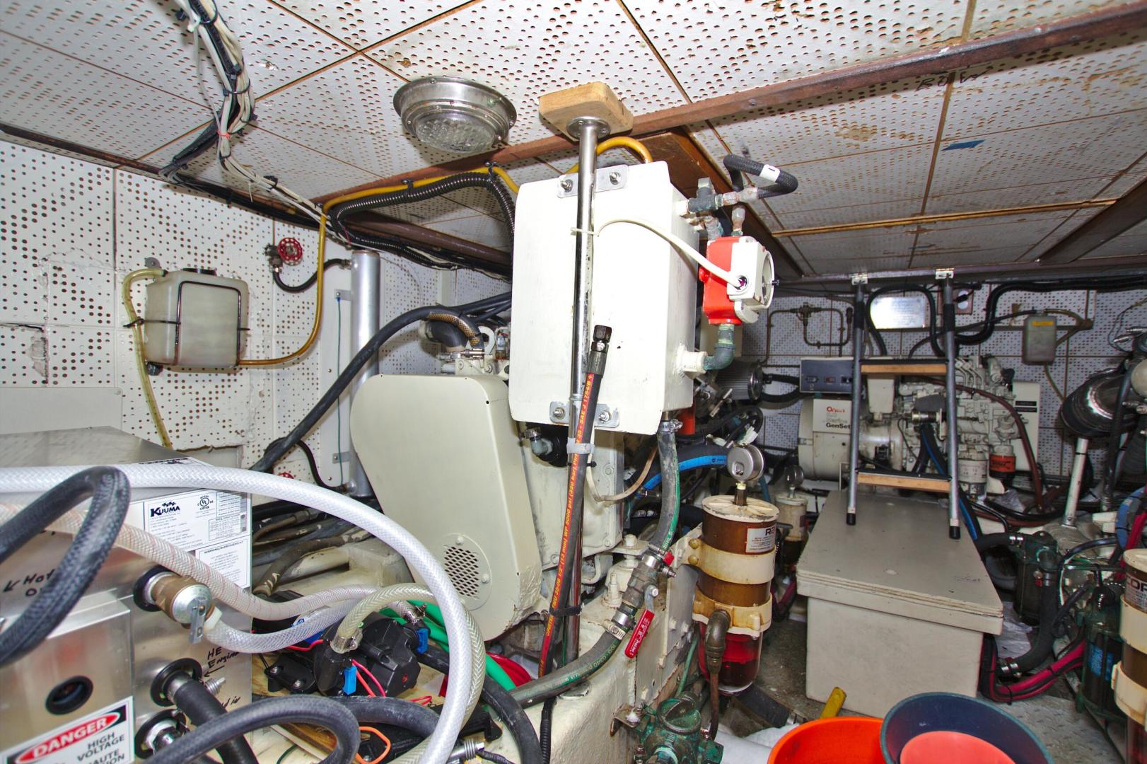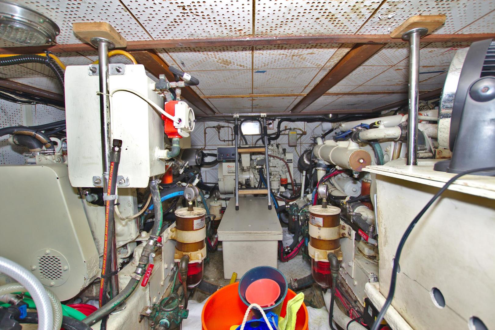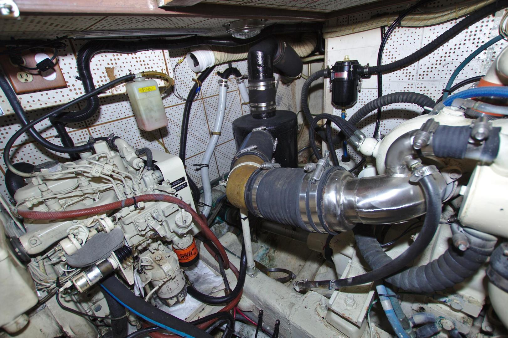 - Removed all existing cooling systems on both engines, installed larger raw water pumps, hoses,vheat exchangers, and new larger capacity stainless engine exhaust elbows (De Angelo) 2009