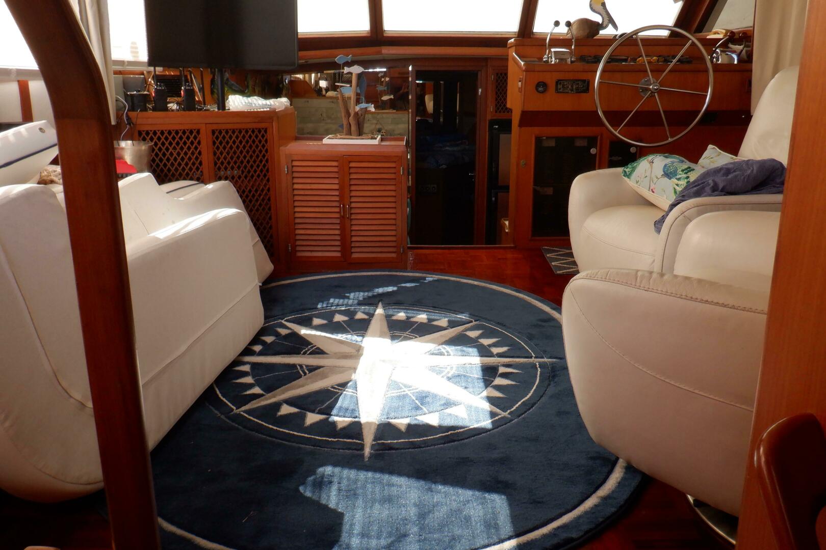 Her two-stateroom, two-head layout features a spacious salon, galley down, convertible dinette, and a full-beam aft master with ensuite and washer/dryer. Large windows, wide walkarounds, and a protected sundeck make her an outstanding liveaboard or long-distance cruiser.