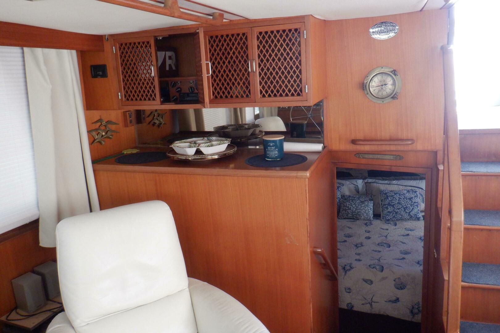 1990 Marine Trader 47 Tradewinds Cockpit Motor Yacht is a proven, comfortable cruiser ideal for the Great Loop and extended cruising. Powered by twin 375hp Caterpillar diesels with under 2,045 hours and an 8kW Onan generator, she offers reliable performance, excellent range, and easy handling with upper & lower helms and bow thruster.