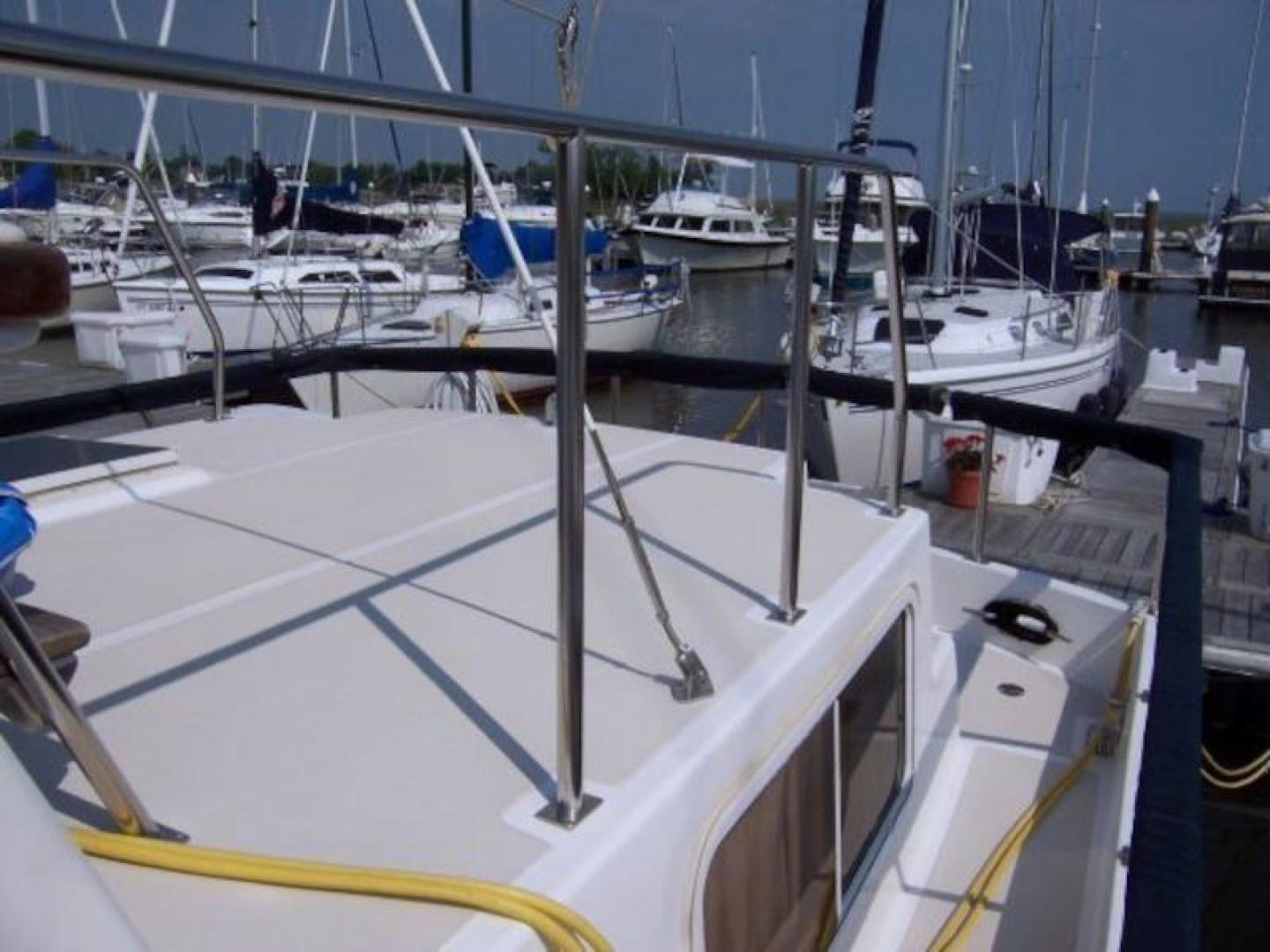 - Raised Aft Deck with Stainless Steel Rails, Port and Starboard