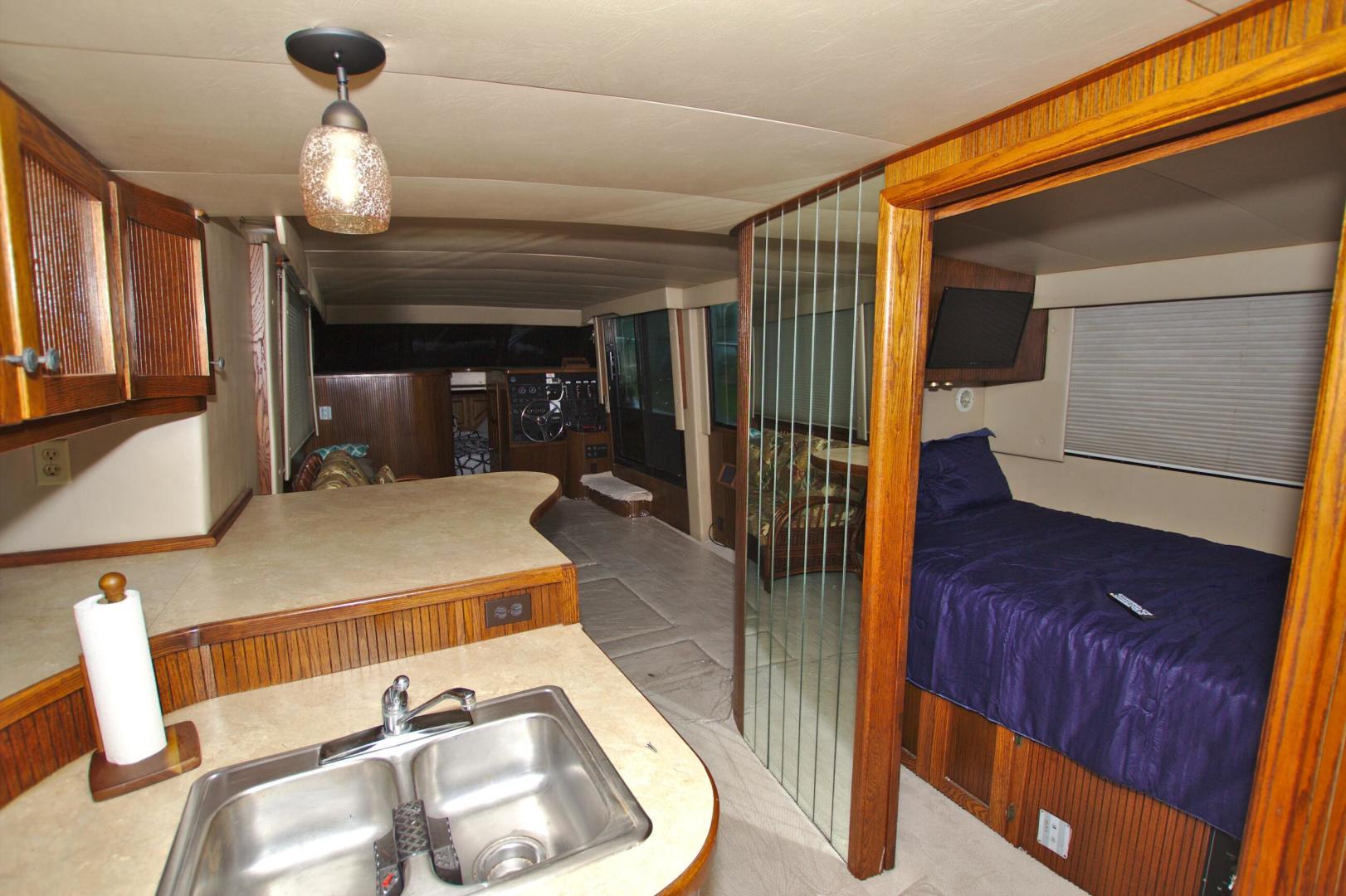 One of the most spacious house boats on the market with the added benefit of a fiberglass hull. Designed for island cruising in shallow coastal water with a 2' draft you can go anywhere the flats boats roam. Powered by Twin 454XL Freshwater Cooled Crusader Engines, Updated Interior with New Carpet, Westerbeke generator, Expansive Galley aft, Two Stateroom, Two Head layout with enclosed showers. You cannot find a better floating home on the water. Change you view daily, weekly, or monthly, you get to choose the scenery.