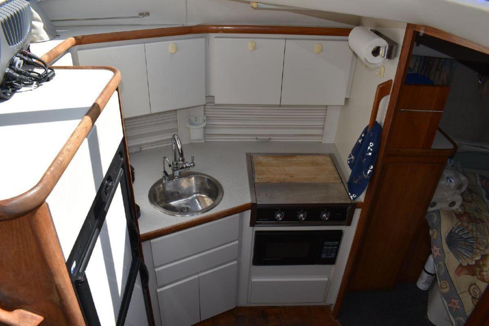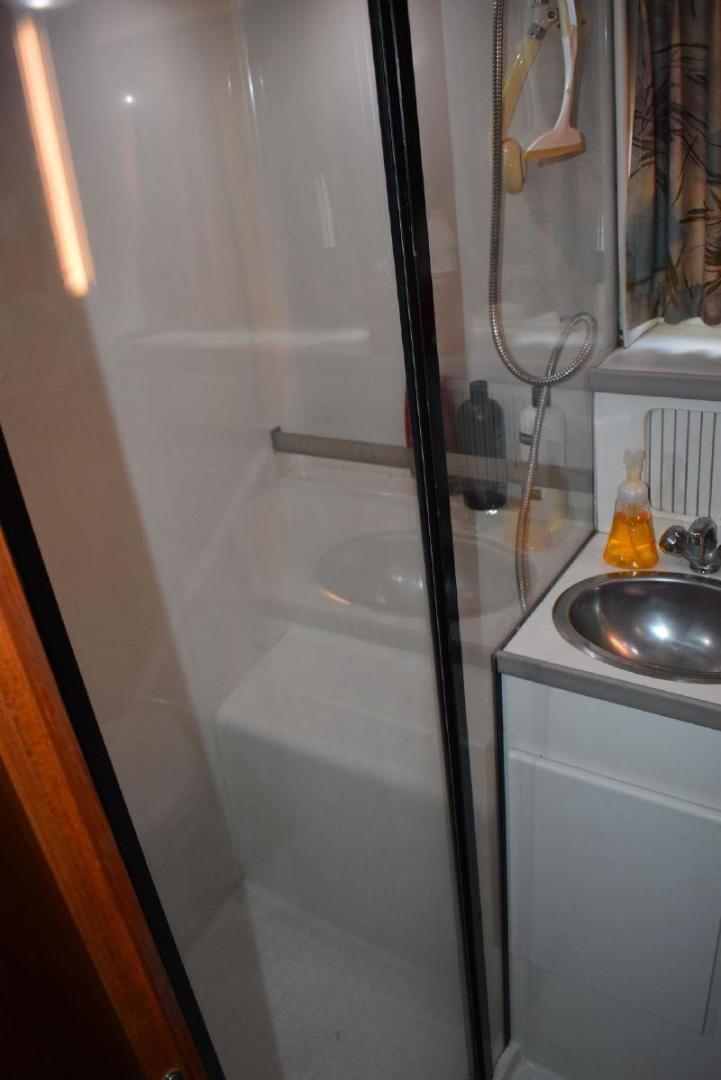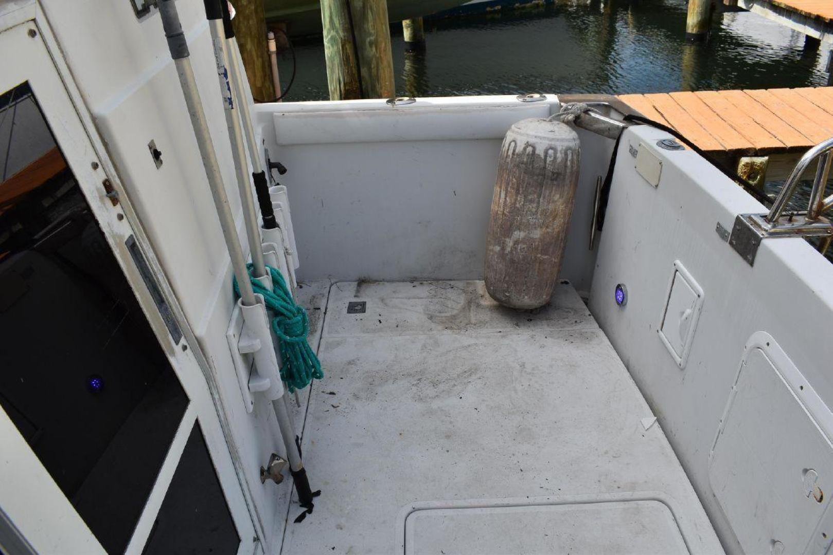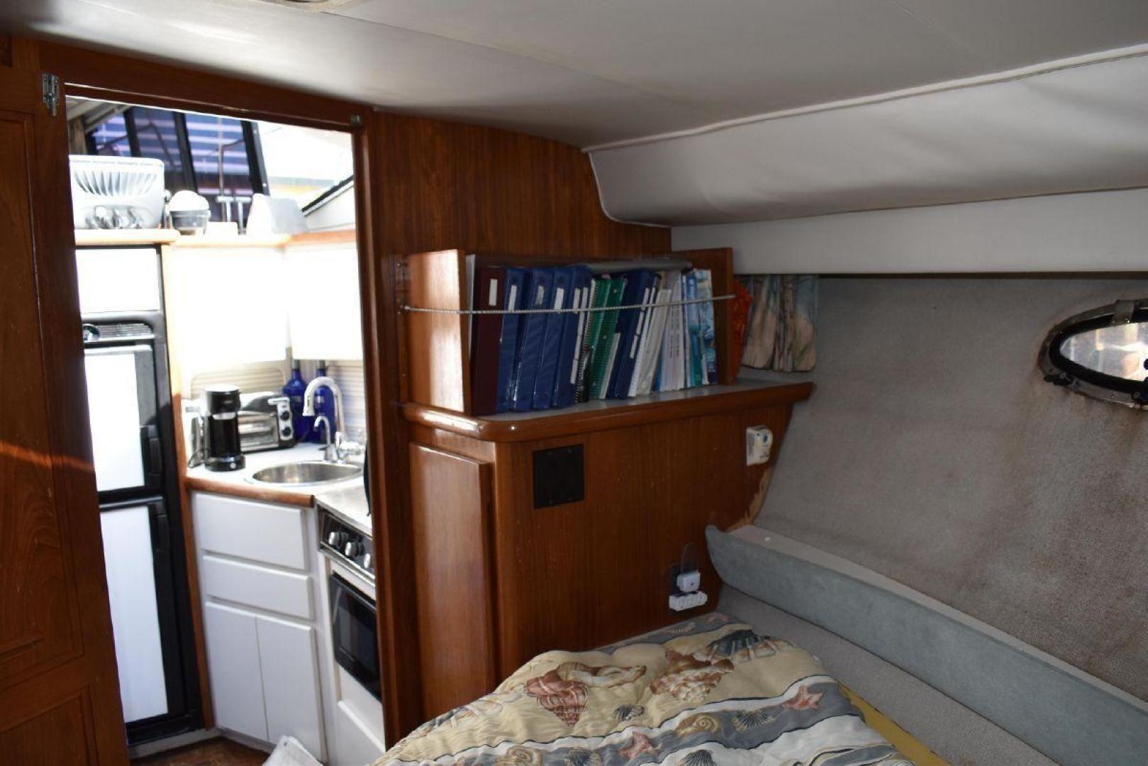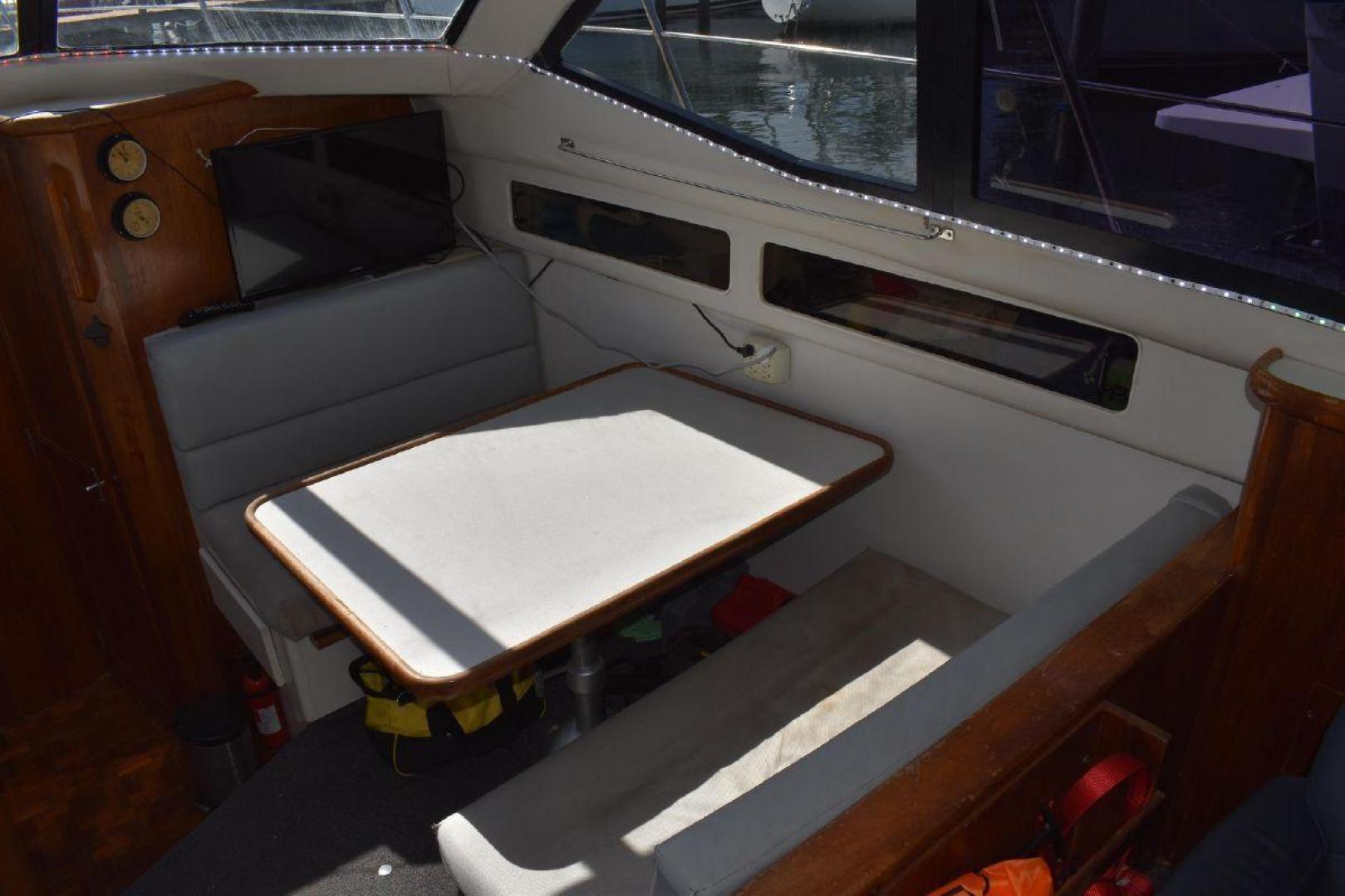 The aft cabin has its own access to the cockpit, which gives some privacy. If you have guest on board, they can make use of the forward Vee Berth with its own complete head. The galley is large for a boat this size with quick access to the Settee. The covered aft deck is plenty of room for several people to sit and enjoy the shade. The flybridge offers excellent visibility all around the boat, which helps with docking. Spirit is equipped with dinghy davits off the swim platform.