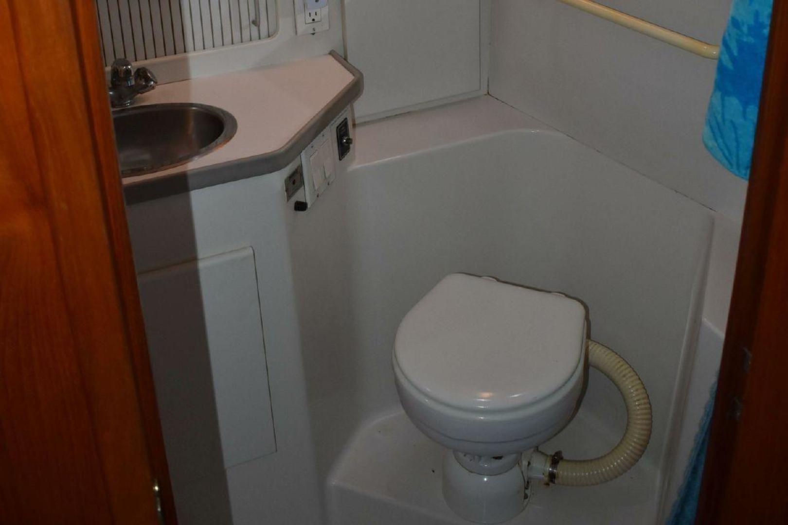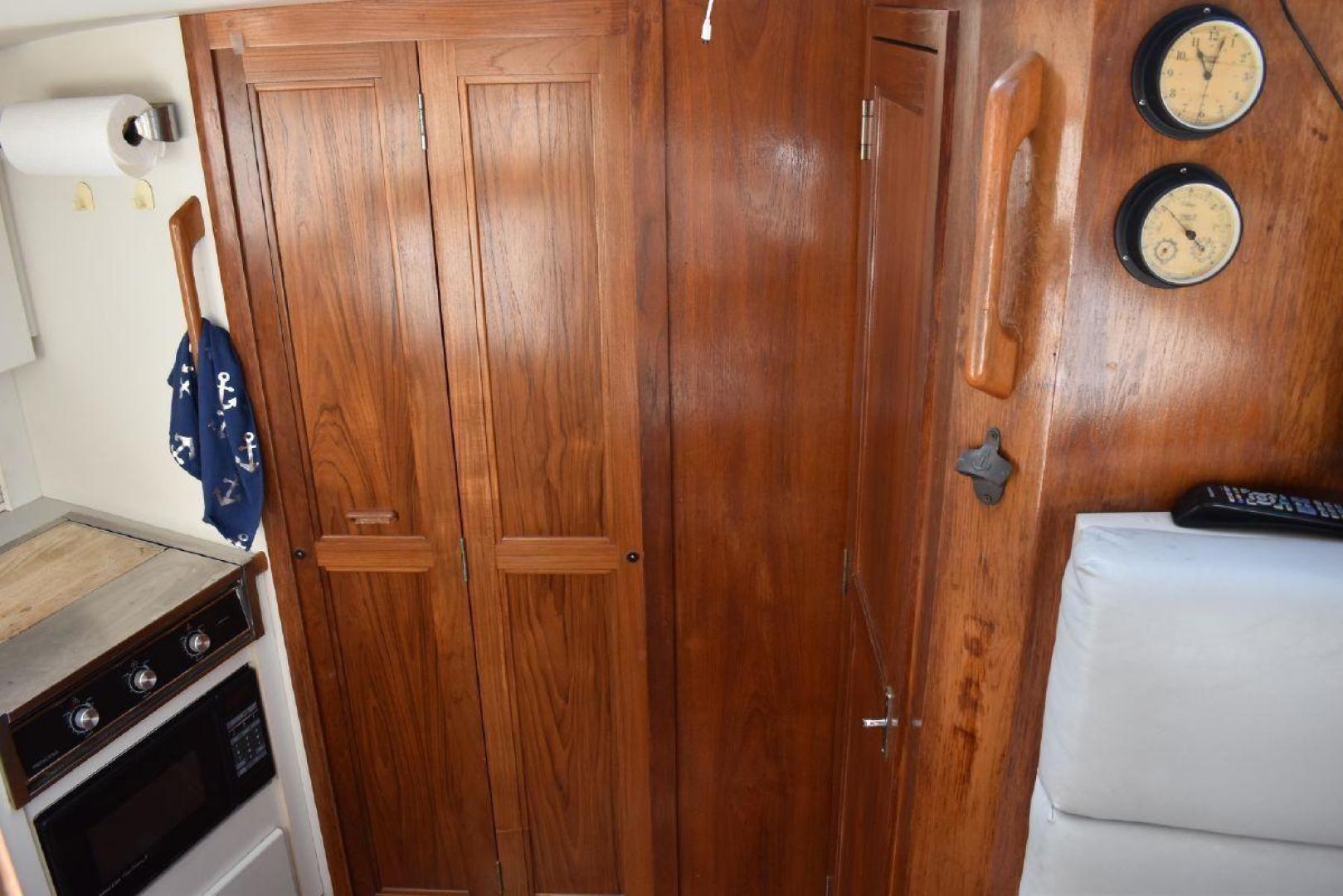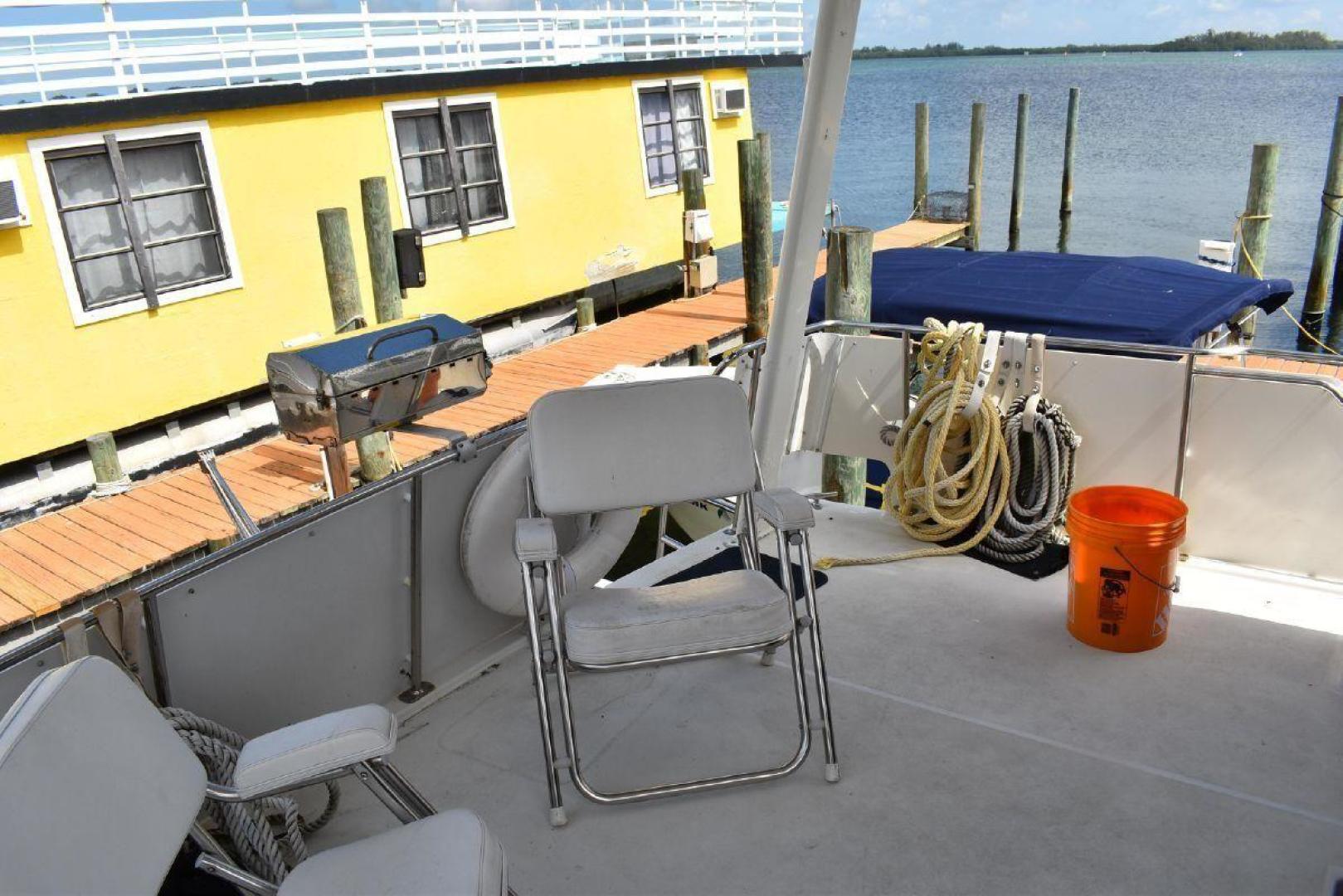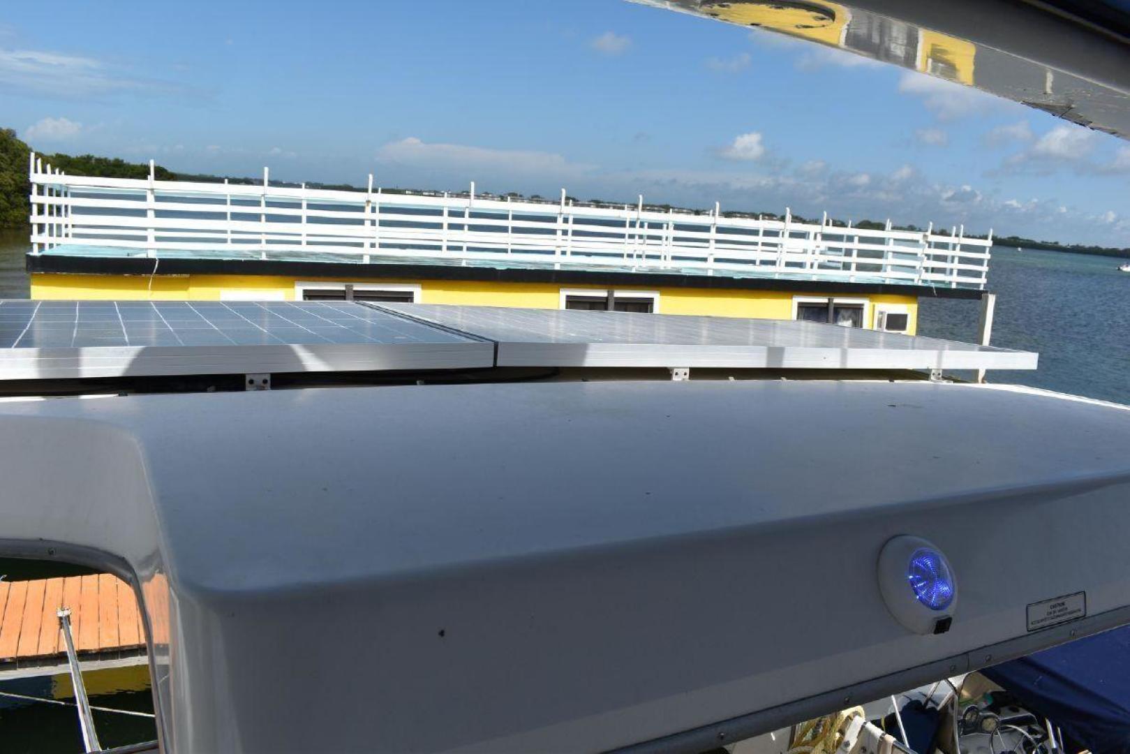 The aft cabin has its own access to the cockpit, which gives some privacy. If you have guest on board, they can make use of the forward Vee Berth with its own complete head. The galley is large for a boat this size with quick access to the Settee. The covered aft deck is plenty of room for several people to sit and enjoy the shade. The flybridge offers excellent visibility all around the boat, which helps with docking. Spirit is equipped with dinghy davits off the swim platform.