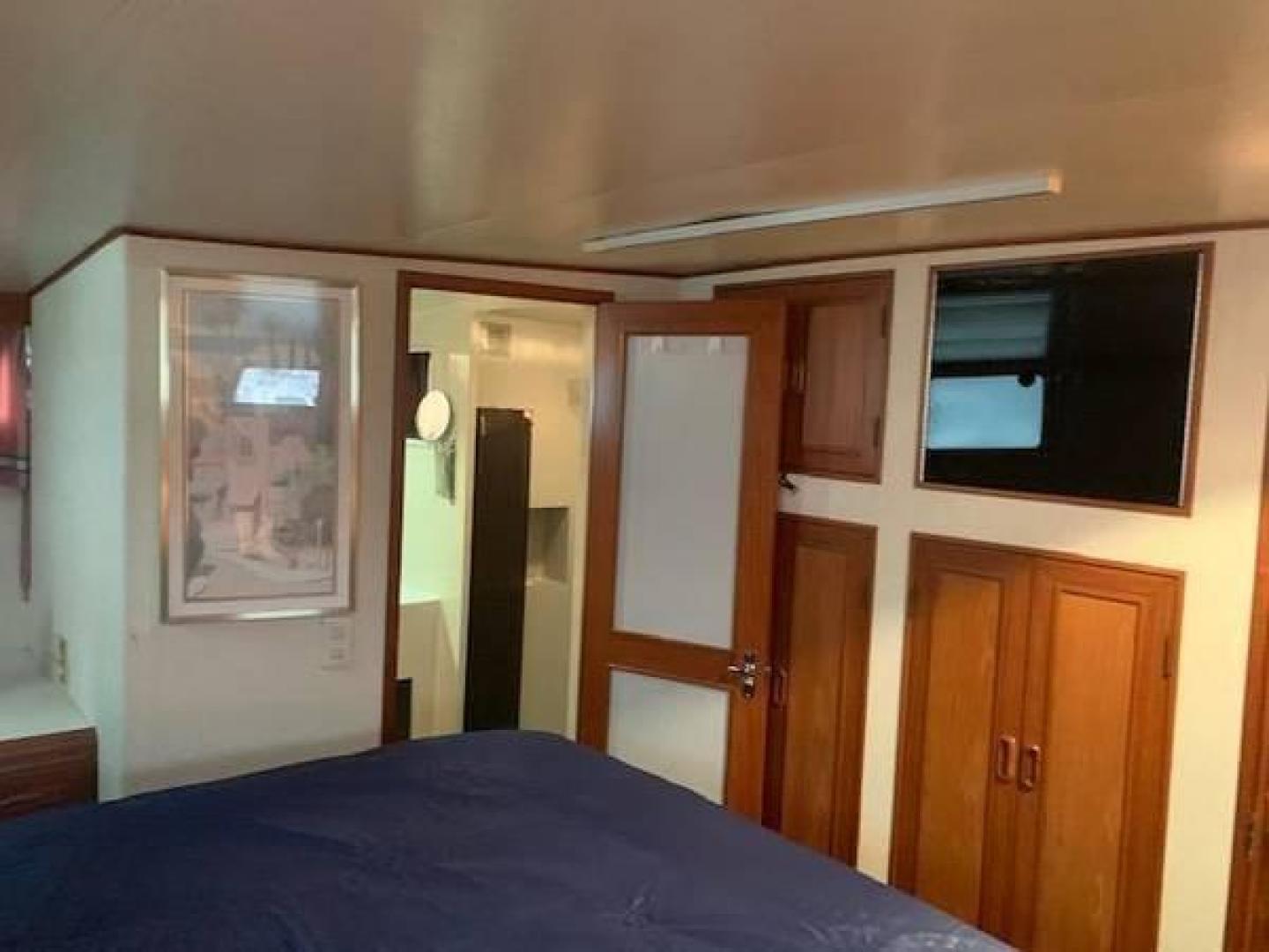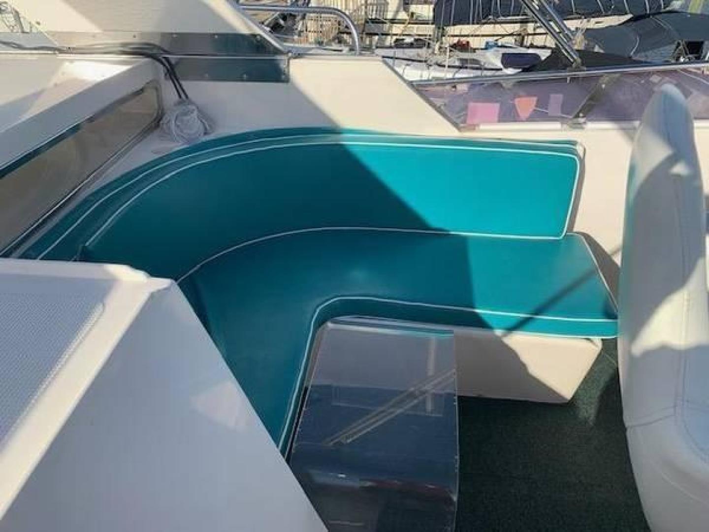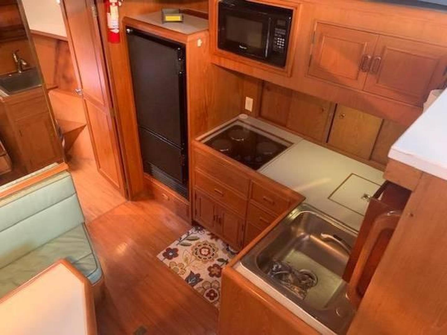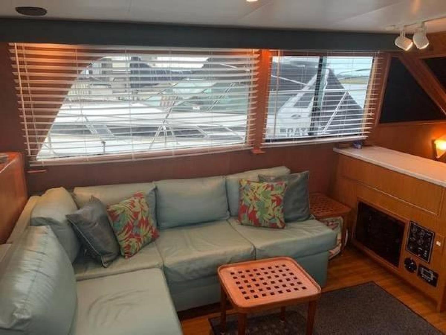 PLUSH WELL BUILT ALL GLASS-DOUBLE CABIN,GALLEY DOWN, 2 COMPLETE HEADS WITH SHOWERS-COMFORTABLE SALON-LARGE WINDOWS FOR THE OPEN AND AIRY FEELING-GALLEY WITH STOVE -FRIDGE MICROWAVE SS SINK-HARDWOOD FLOORS-WELL APPOINTED-MASTER STATEROOM HAS FULL WALK AROUND PEDESTAL BED WITH LARGE CLOSETS AND MAKE UP CENTER WITH BUILT IN MIRROR -SEPARATE ENCLOSED SHOWERS-2 CENTRAL AIR CONDITIONING AND HEAT-BLINDS AND CURTAINS-REAR DECK WITH BAR/STORAGE AND DECK FURNITURE-WITH FULL ENCLOSURE AND WING DOORS-FOR COMFORT-ALSO ENCLOSURE FOR BRIDGE WITH DUAL HELM SEATS AND CORNER SEATING-STAINLESS STEEL HANDRAILS-RADAR ARCH (FOLD DOWN) TRAC VISION FOR TV ROAMING-BUILT IN 1993 BY CAMARUGE SHE REEKS OF QUALITY-WIDE BOARDING LADDER ON TRANSOM FROM A WIDE SWIM PLATFORM-GREAT LINES