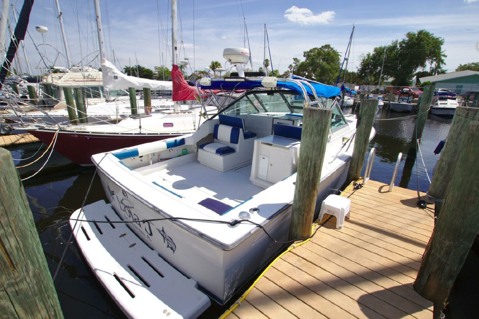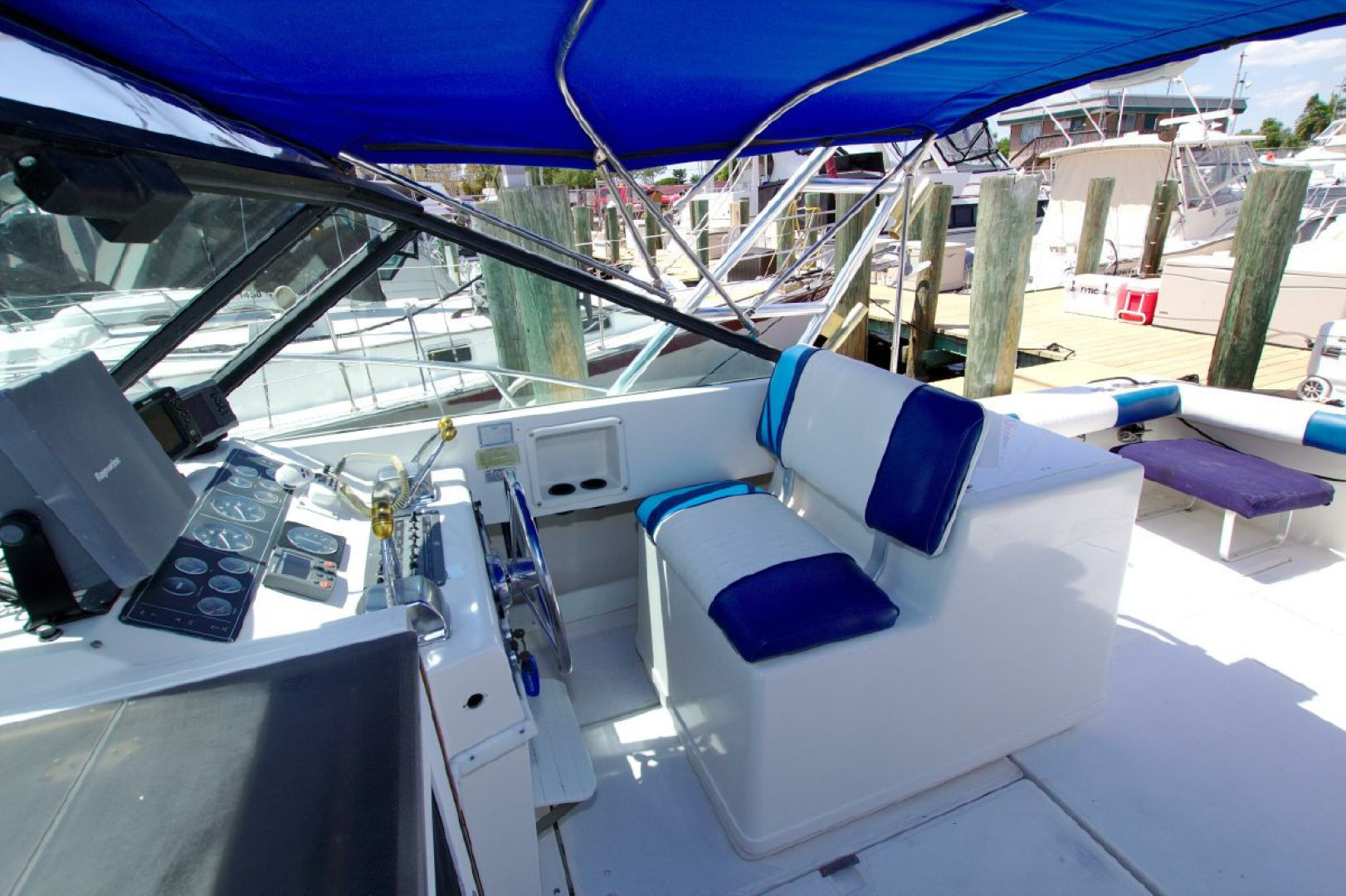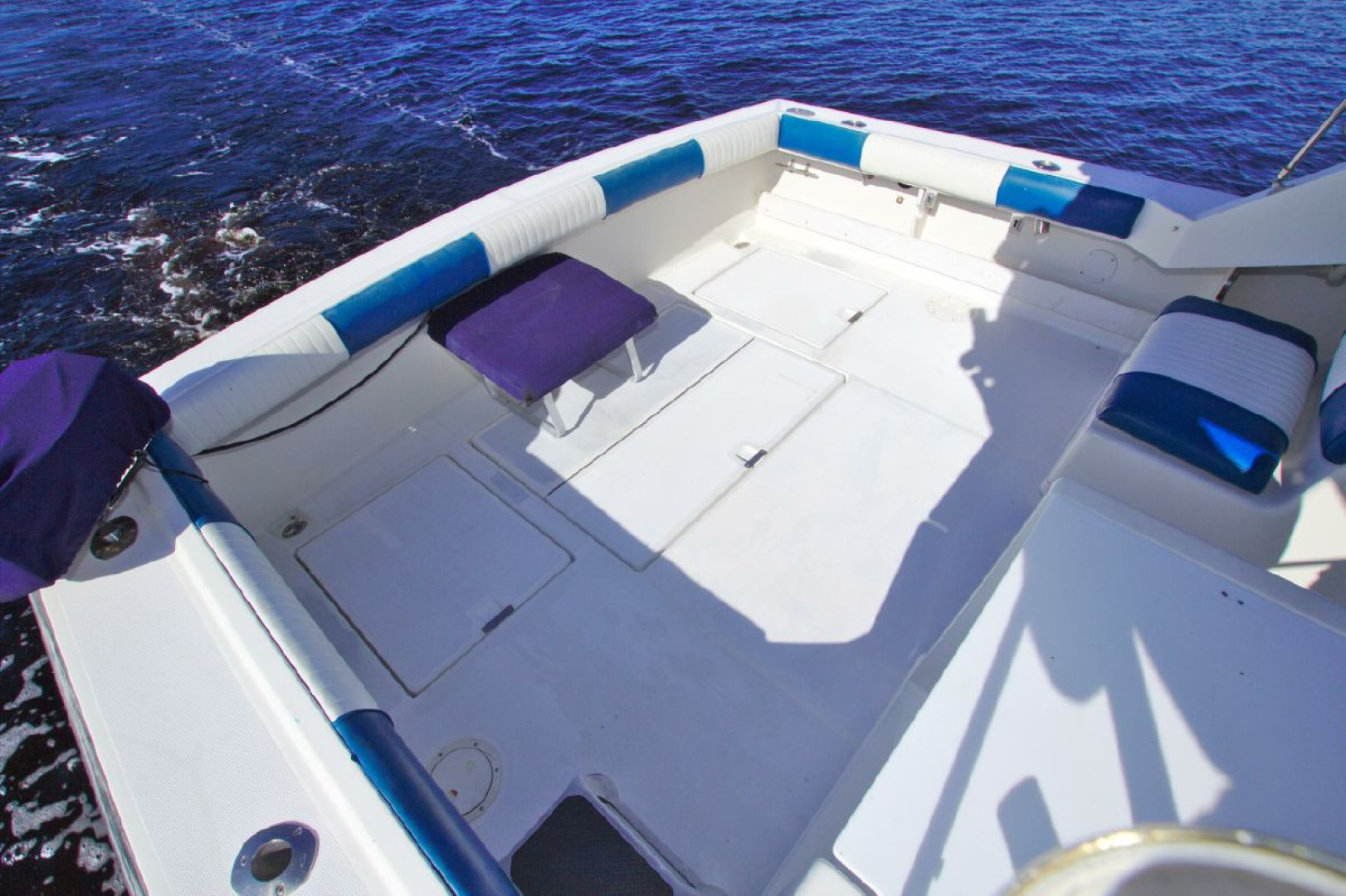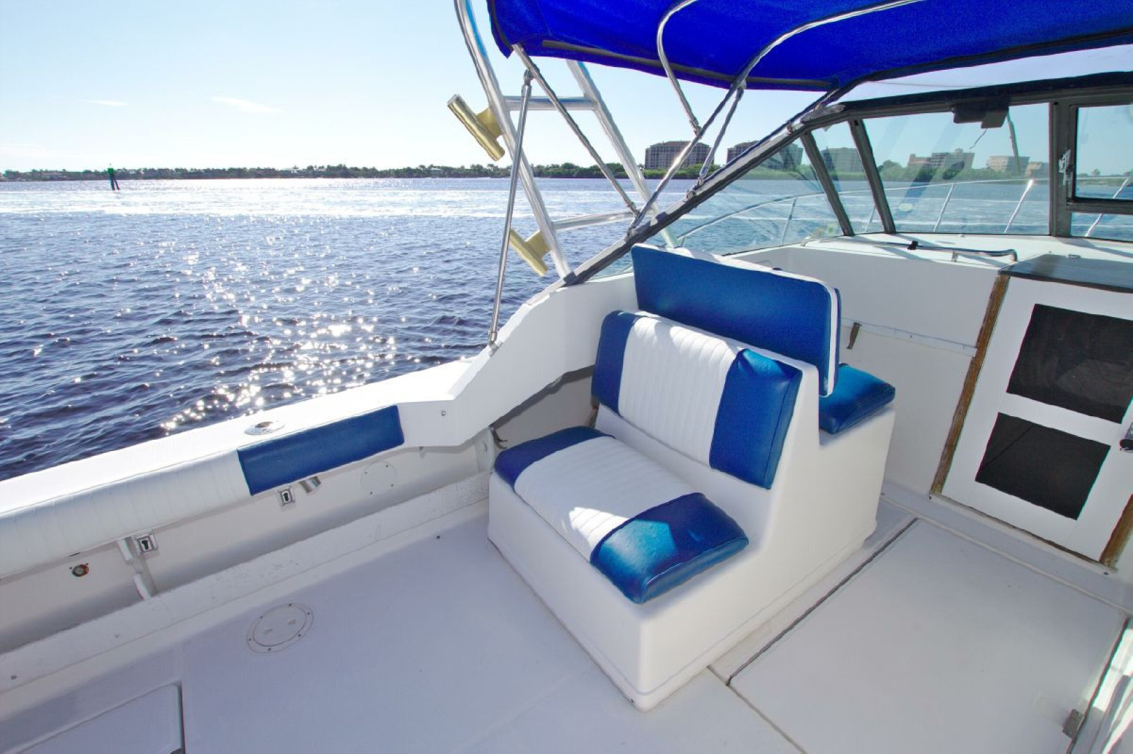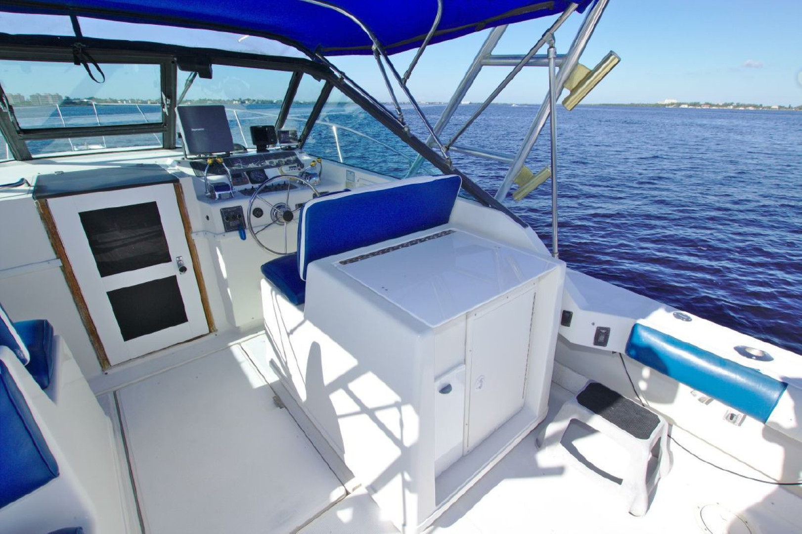 Single-level cockpit provides excellent fishing platform with room for mounted chair. Bait and tackle center fits behind helm seat; in-floor live well was popular option.