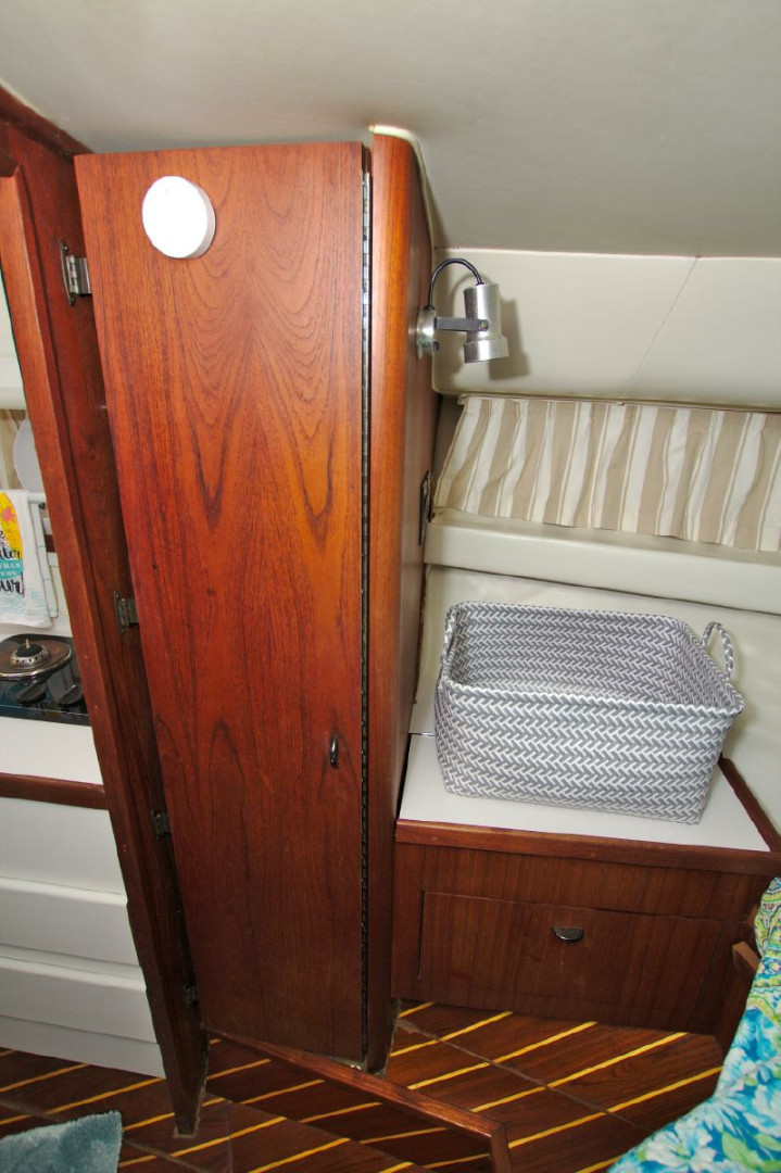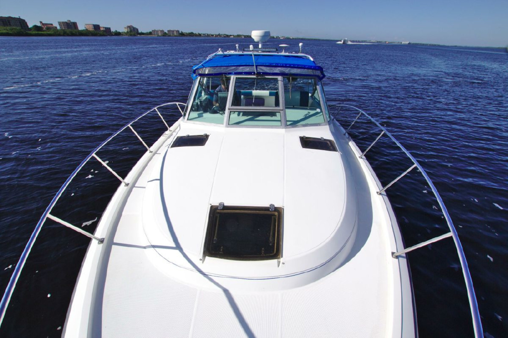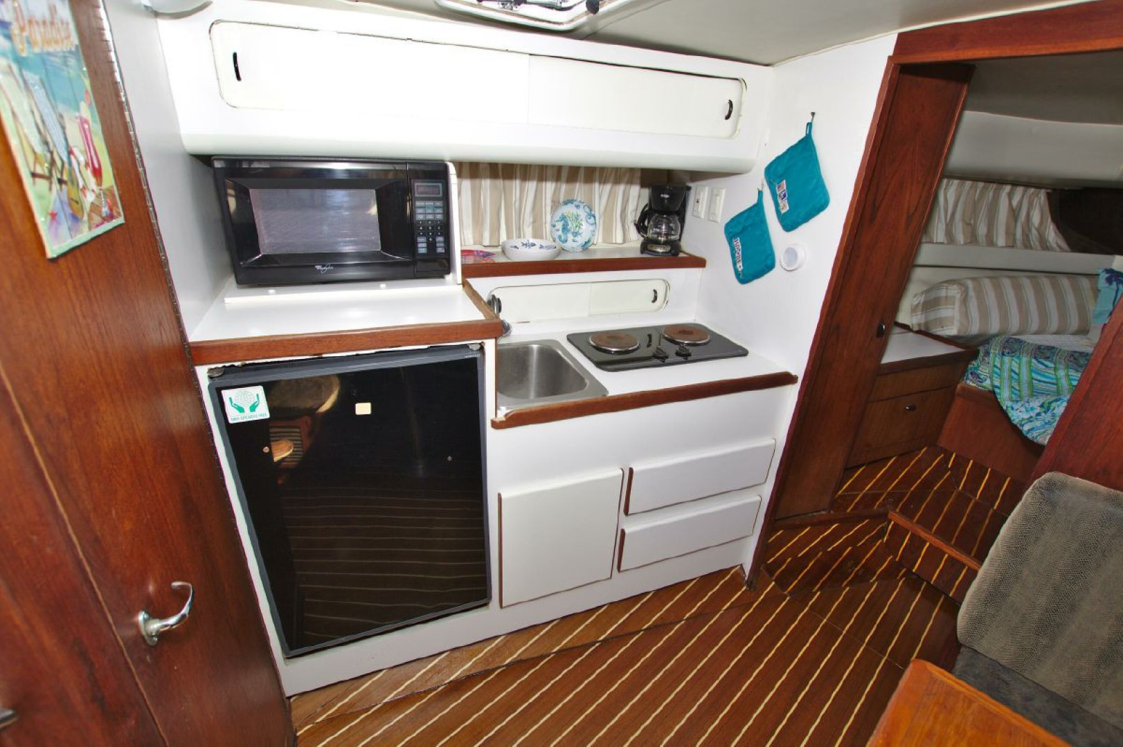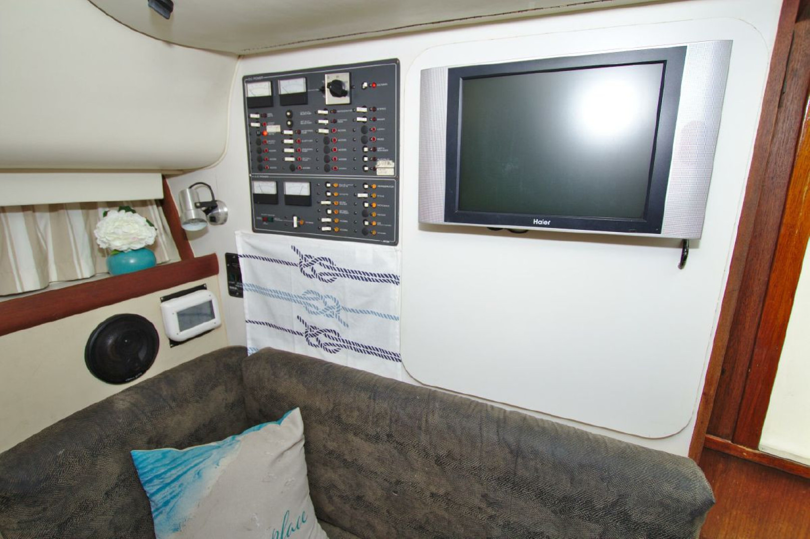 Roomy cabin, U-shaped dinette, private stateroom sleeps four.