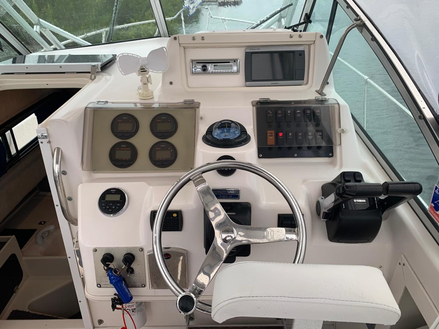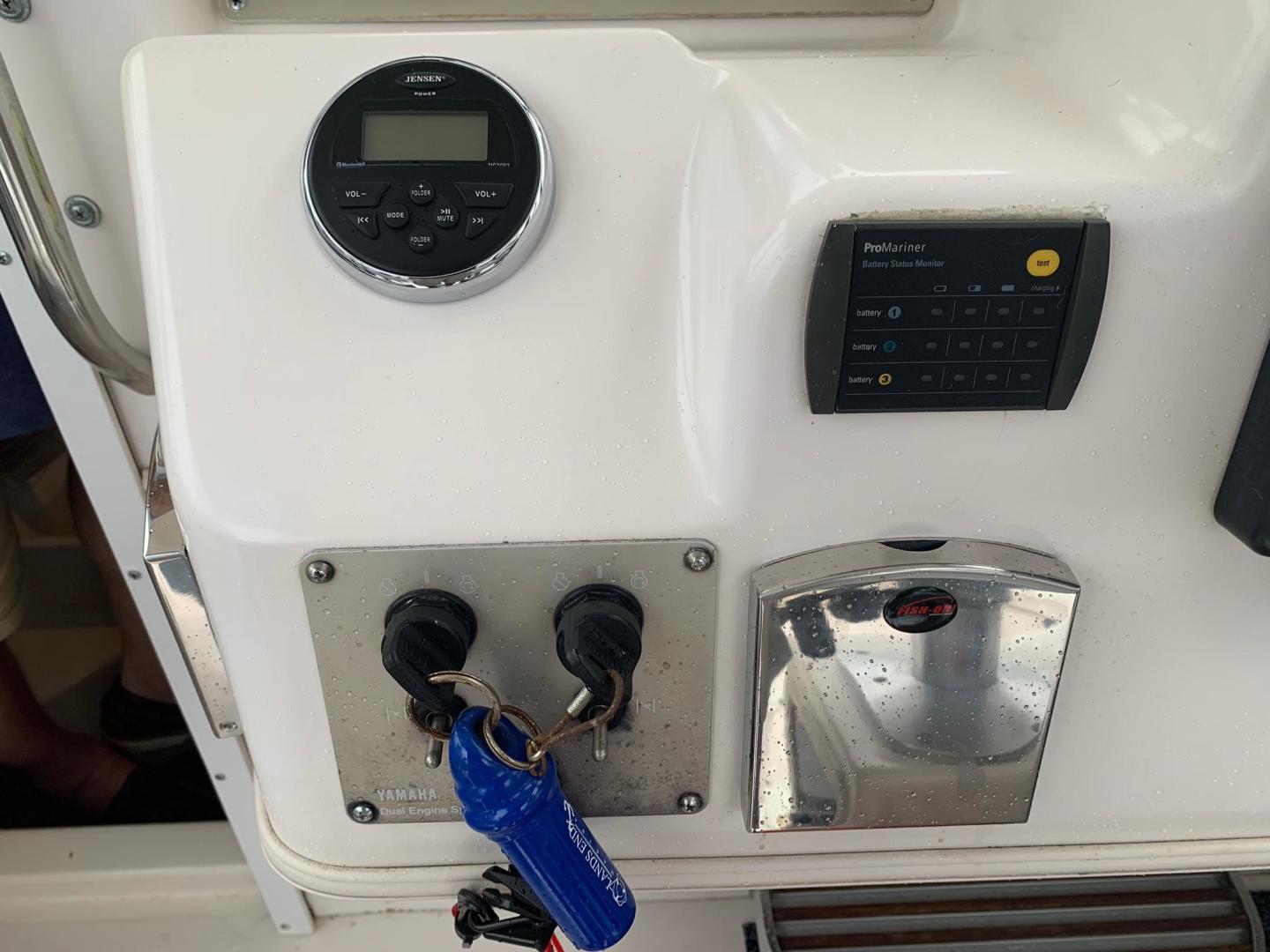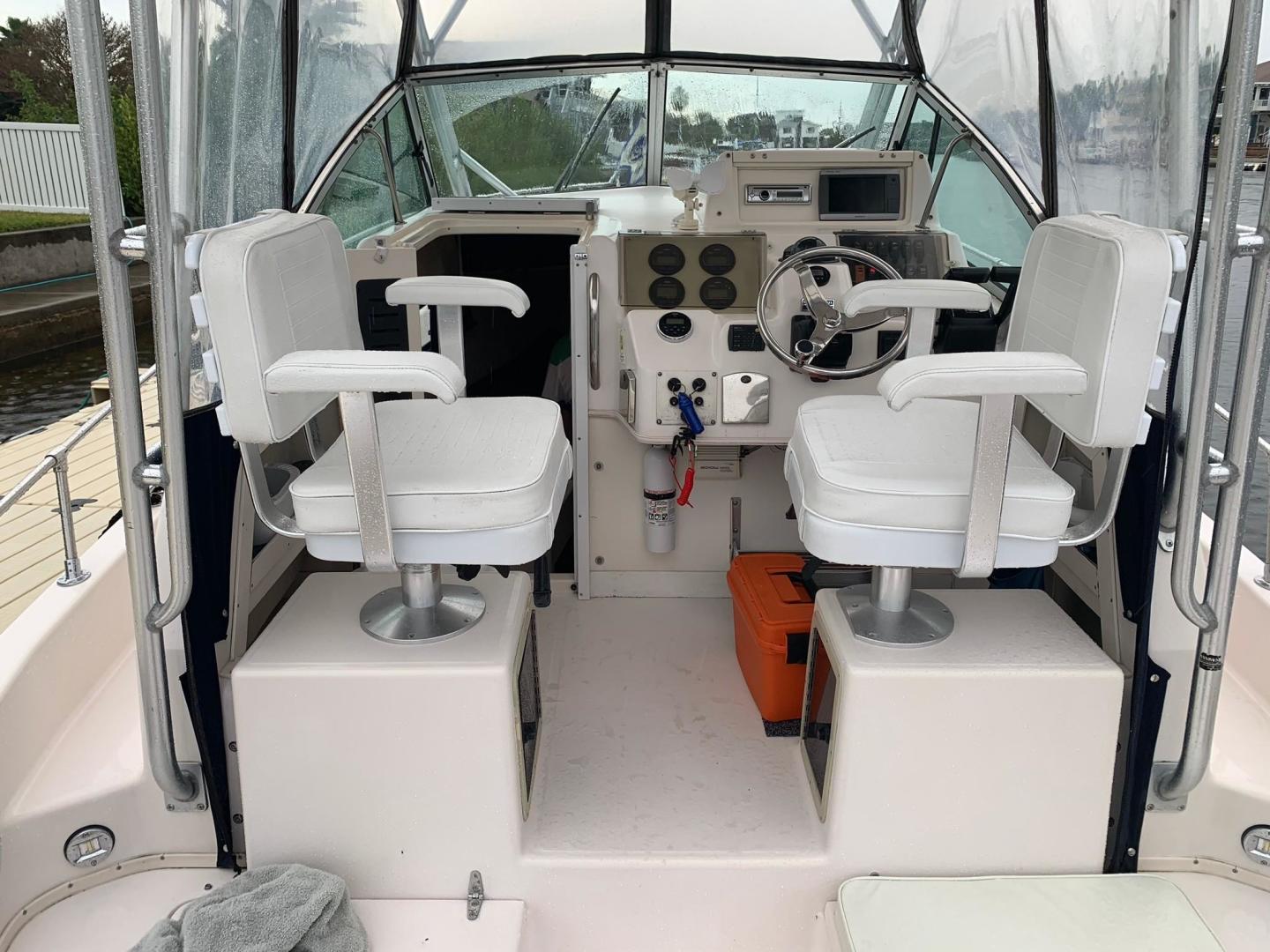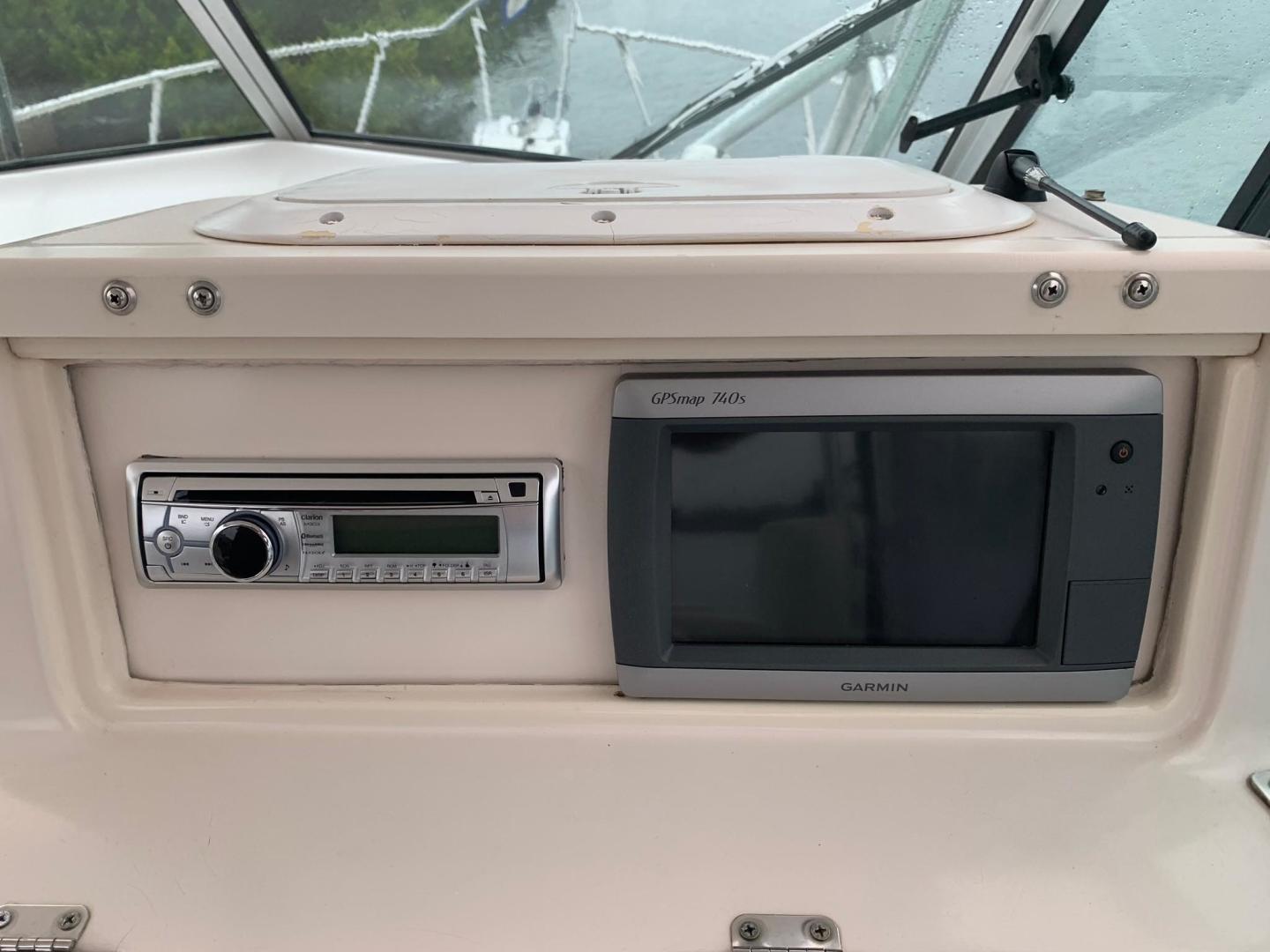 Garmin 740s GPS Chartplotter, Windlass, 2 AM/FM CD radio Players - Jensen and Clarion, Vhf Radio, Hydraulic Trim Tabs, Wide side decks, Large 20 gallon Livewell, TV w/DVD Player in Cabin