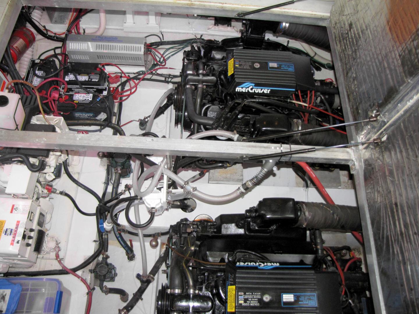 Twin 7.4L 454 Mercruiser Engines - 5 Hours on Major Overhaul, Kohler 8kW Generator and A/C Systems Recently Serviced, Freshwater Flush System on All Engines, Interior Flybridge Canvas Shades, Updated Garmin Touchscreen GPS/Chart.
