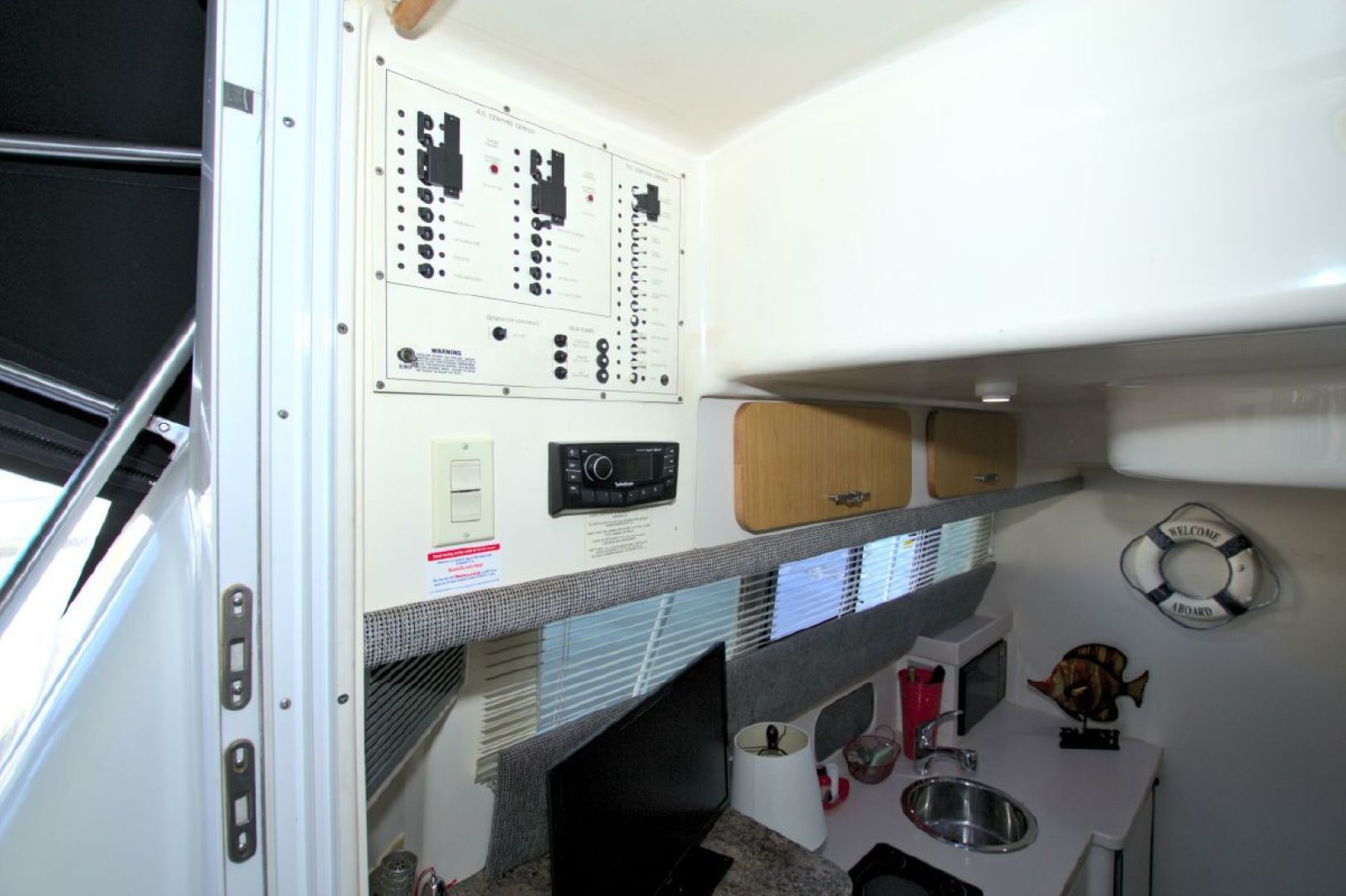 The Mainship 31 Sedan/Bridge has incredible room for its 31 foot length. The craftsmanship of this boat is noticeable as soon as you step aboard. Features include 2 separate staterooms, Queen in master cabin, Double bunk berth in second stateroom,6'4" headroom, fully equipped galley and enclosed Flybridge and Aft Deck!