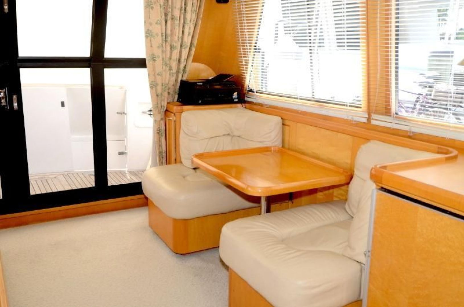 - L-Shaped settee, starboard, with adjustable table, foot stools/seats