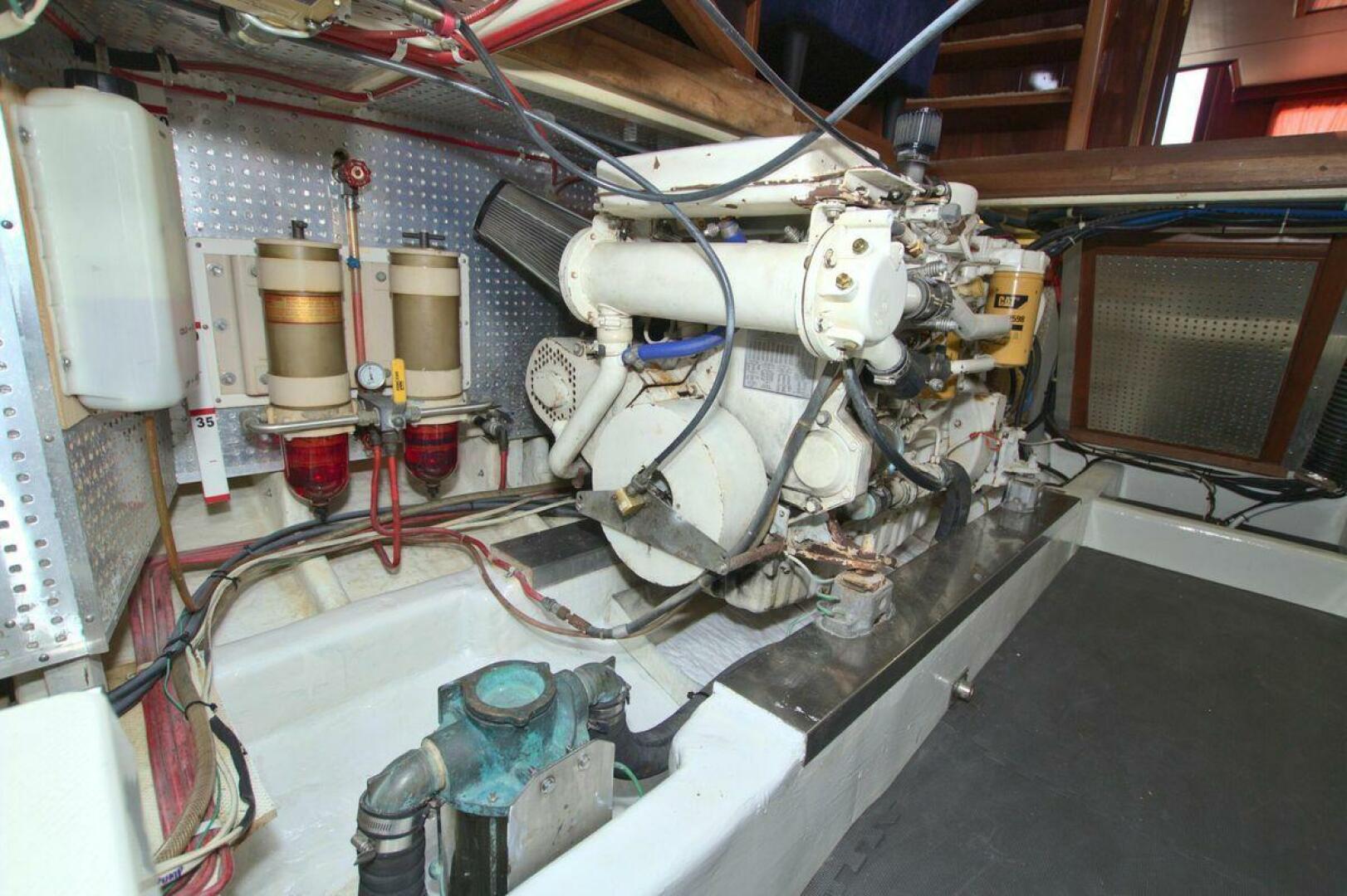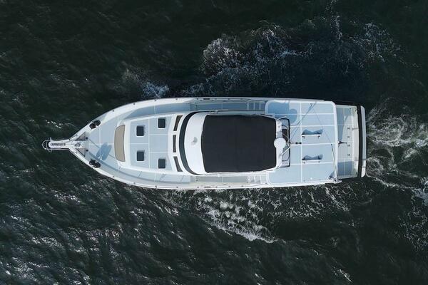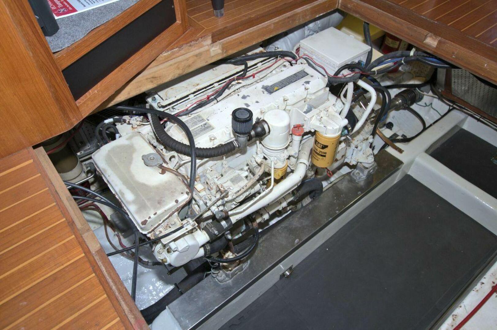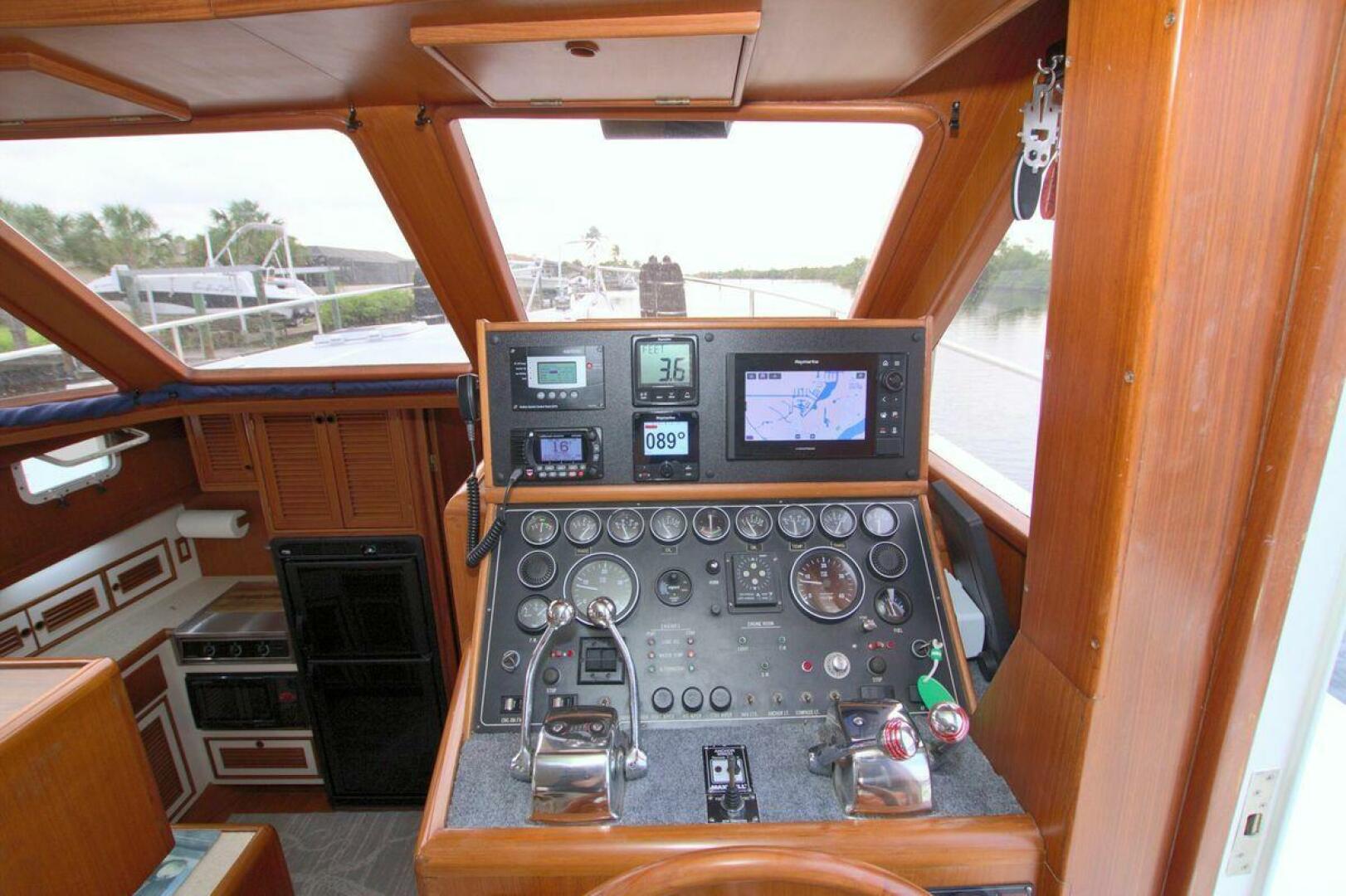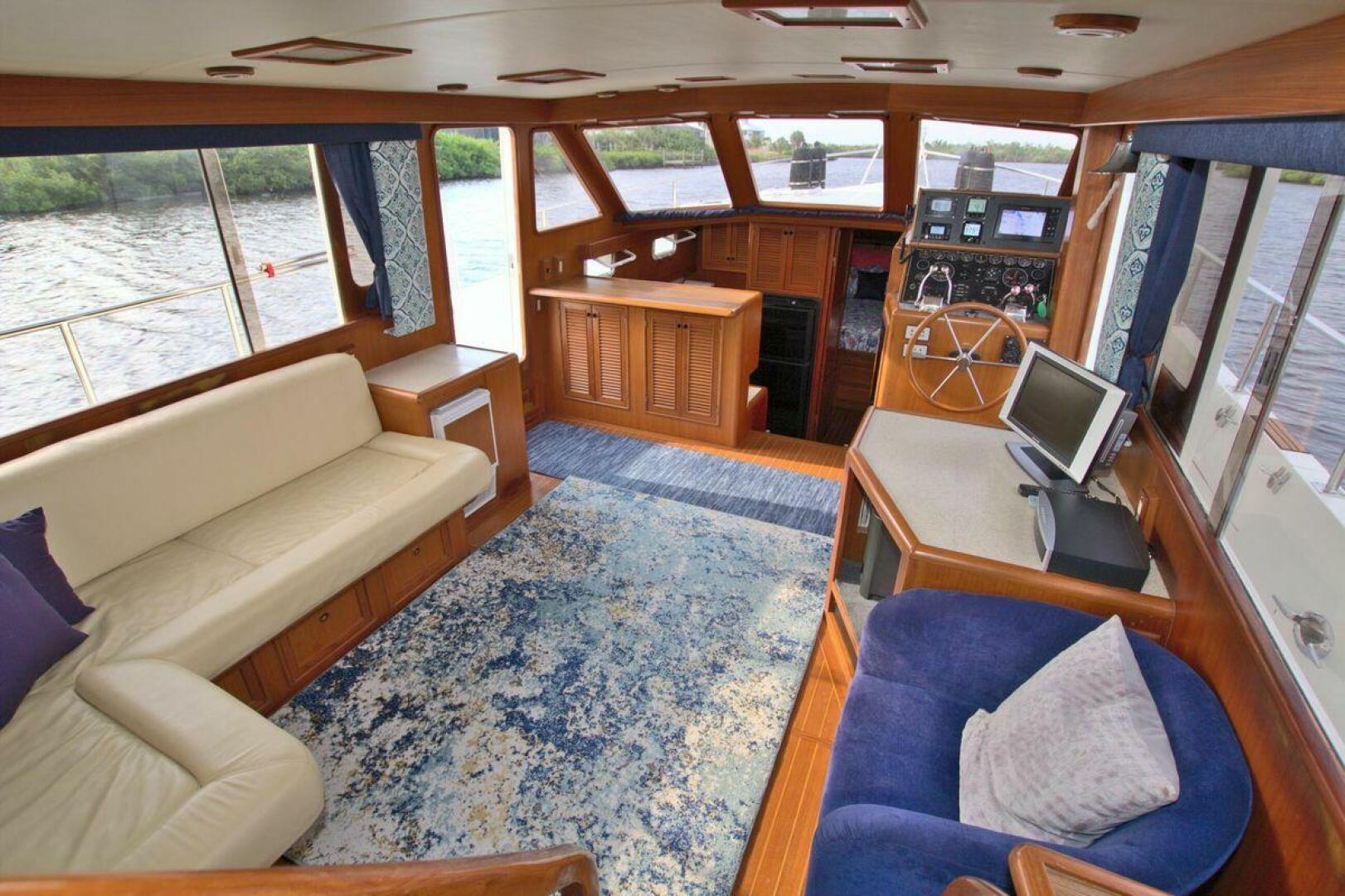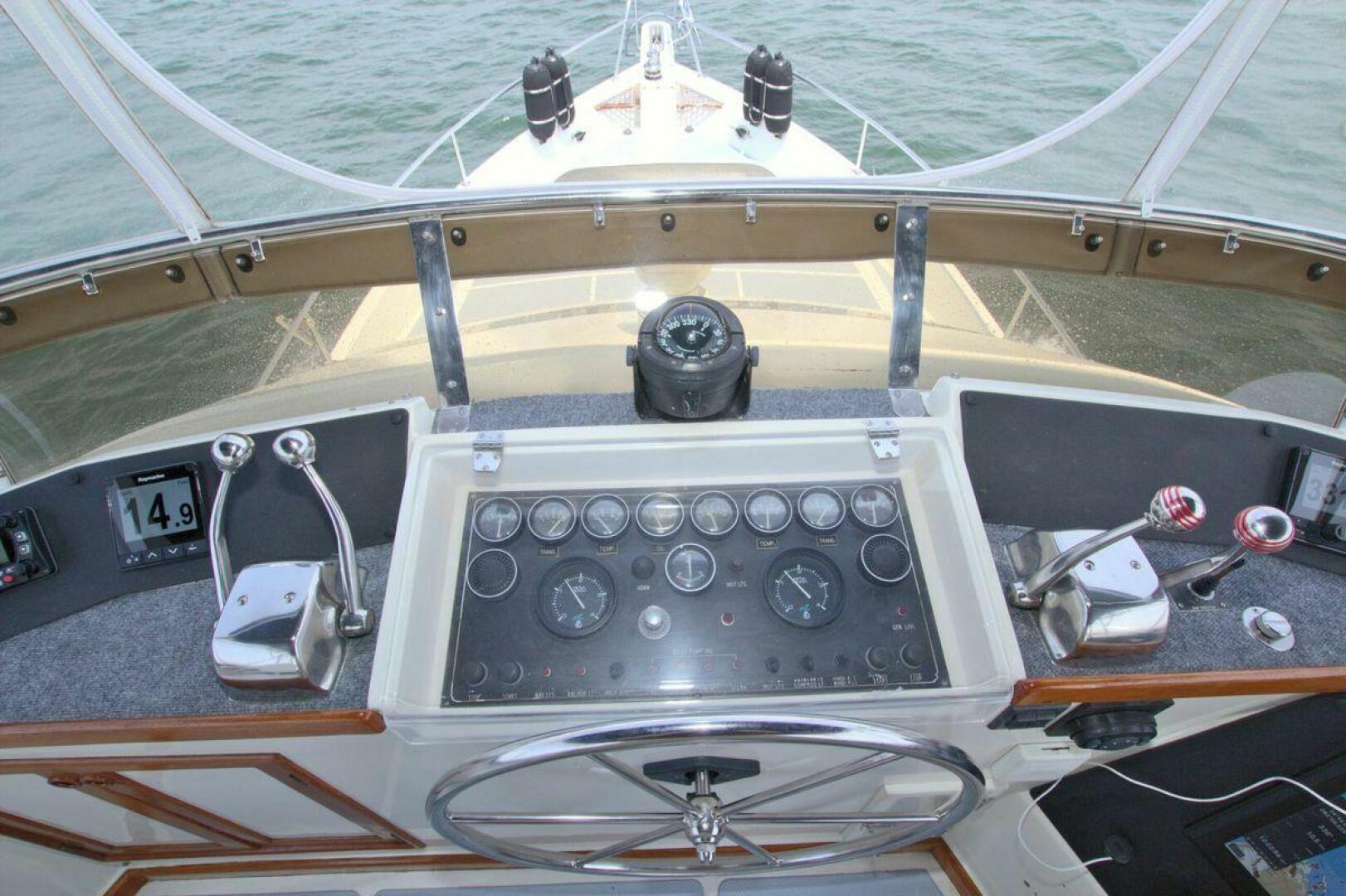 The Offshore 48 CPMY, produced from 1985-1999, has long been popular with boaters who have experienced the reality of life at sea. Thanks to the boat's substantial displacement, long shallow keel, low profile, and low center of gravity, the 48 offers a rock-solid ride and a high degree of directional stability. Repowered in 2002 with twin 420 horsepower Caterpillar 3126 diesels. She cruises at 17 knots and can reach a top speed of around 21 knots.