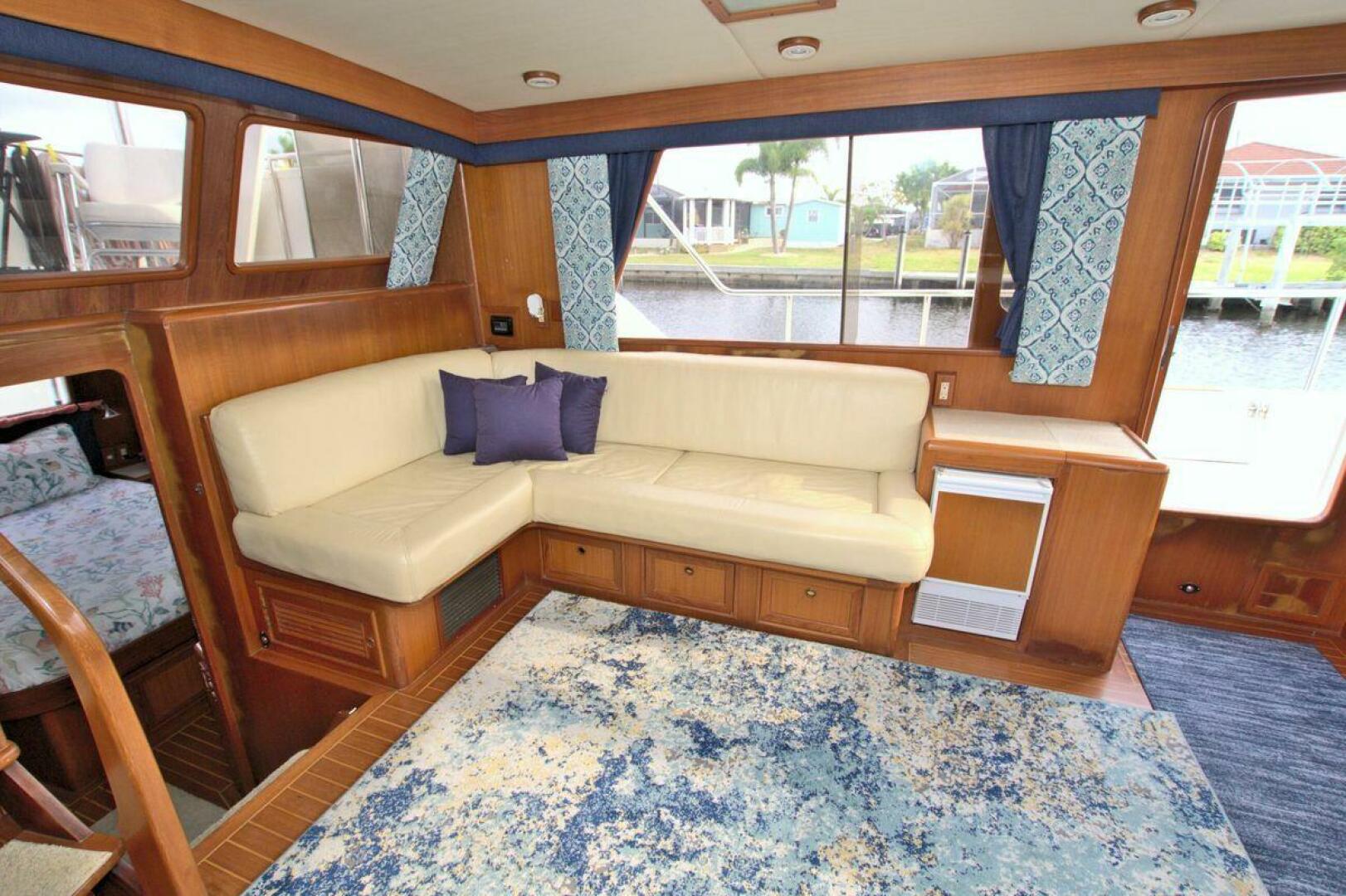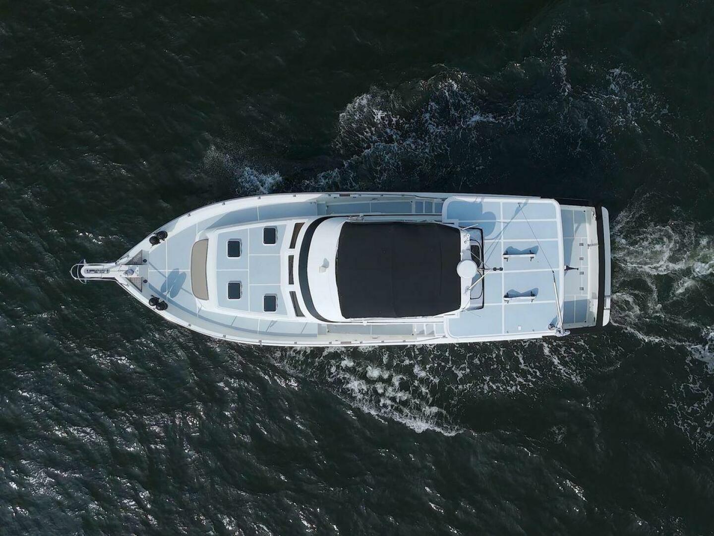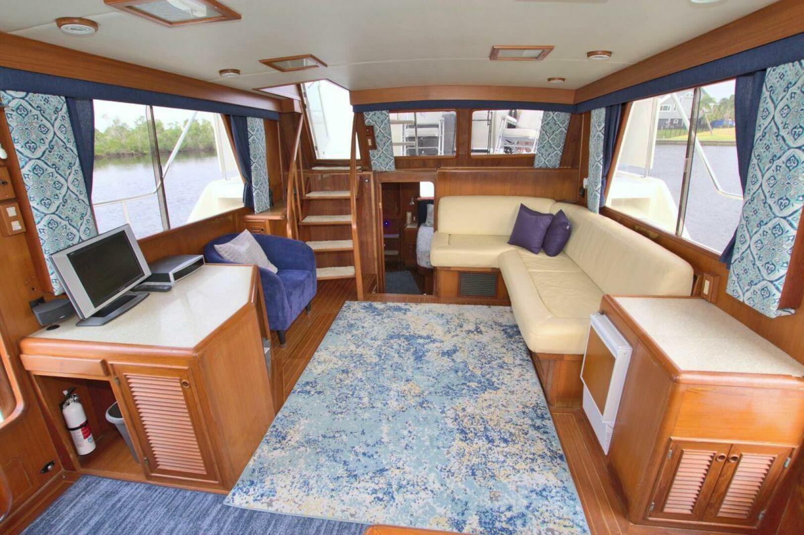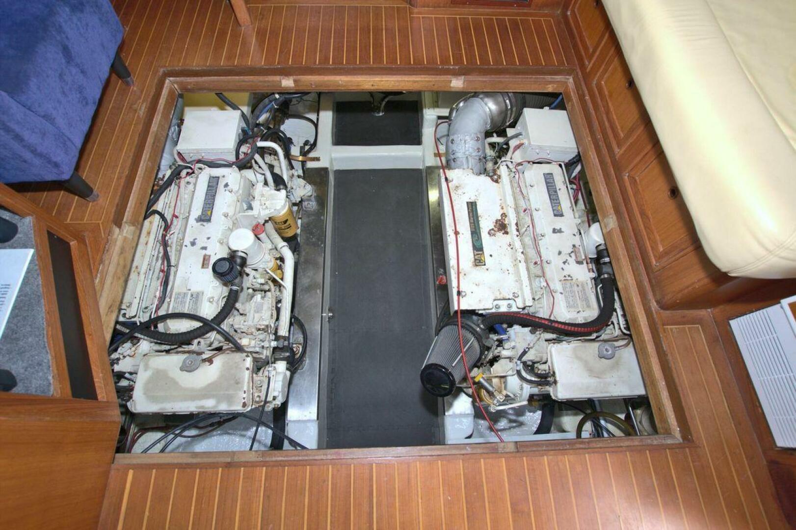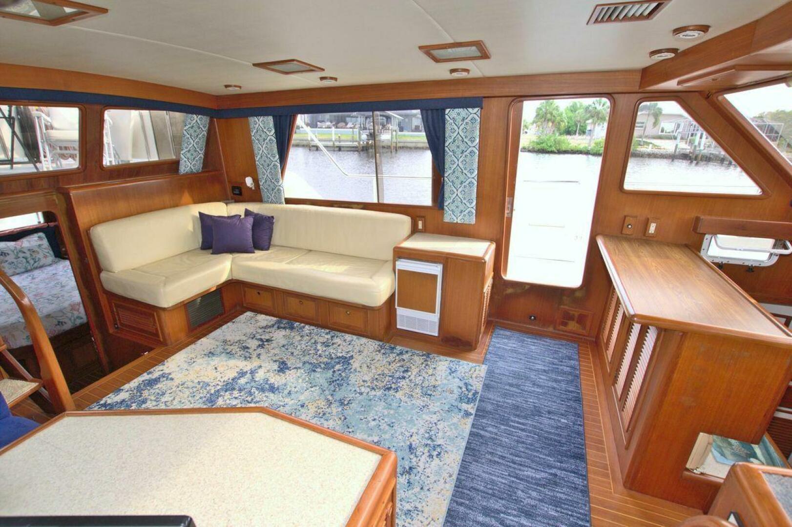 The Offshore 48 CPMY, produced from 1985-1999, has long been popular with boaters who have experienced the reality of life at sea. Thanks to the boat's substantial displacement, long shallow keel, low profile, and low center of gravity, the 48 offers a rock-solid ride and a high degree of directional stability. Repowered in 2002 with twin 420 horsepower Caterpillar 3126 diesels. She cruises at 17 knots and can reach a top speed of around 21 knots.